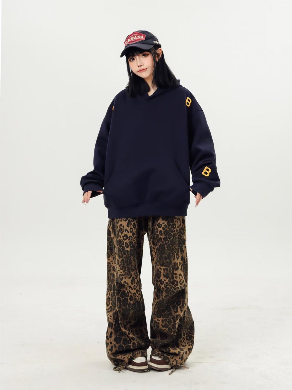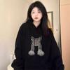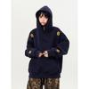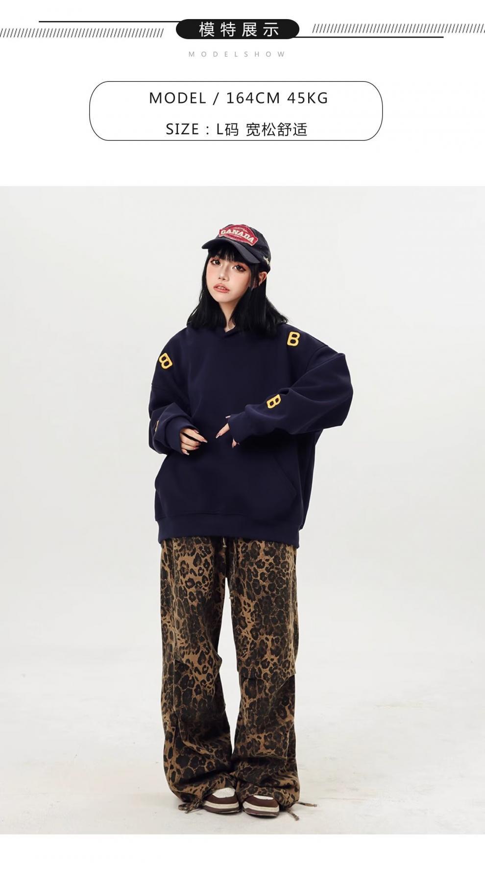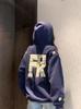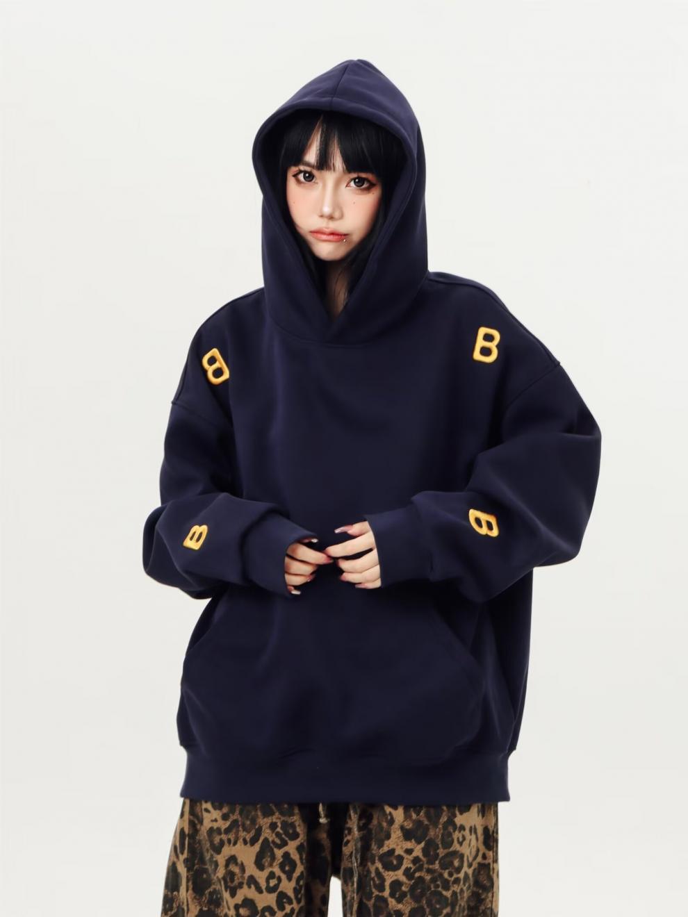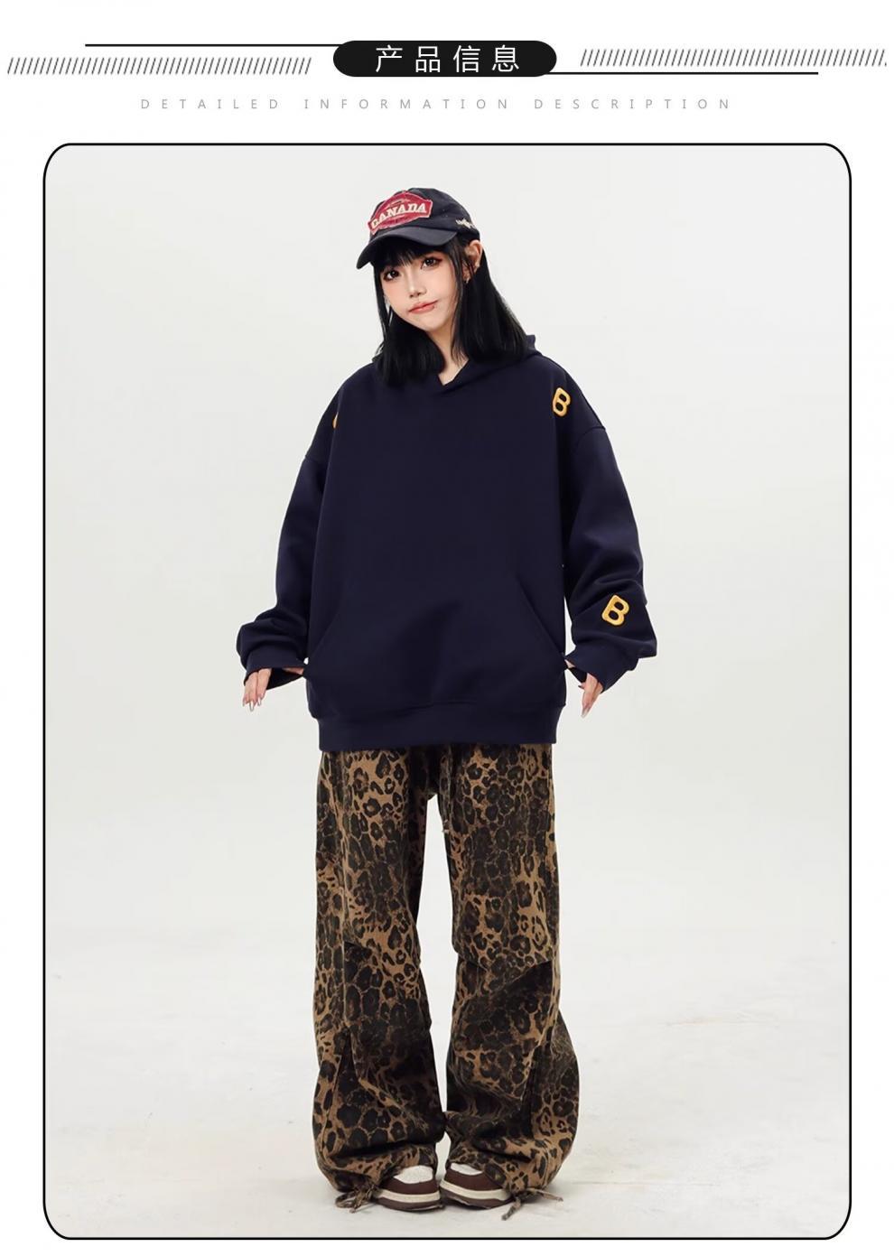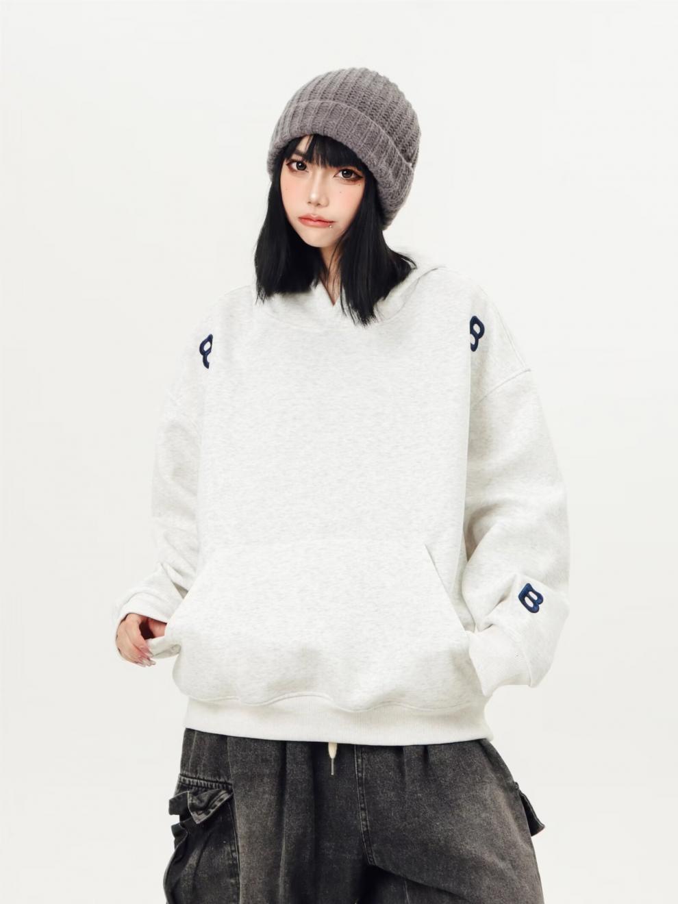 Suéter con capucha de estilo americano vintage con letras bordadas para mujer, otoño e invierno, holgado, forrado de polar, sudadera con capucha para pareja