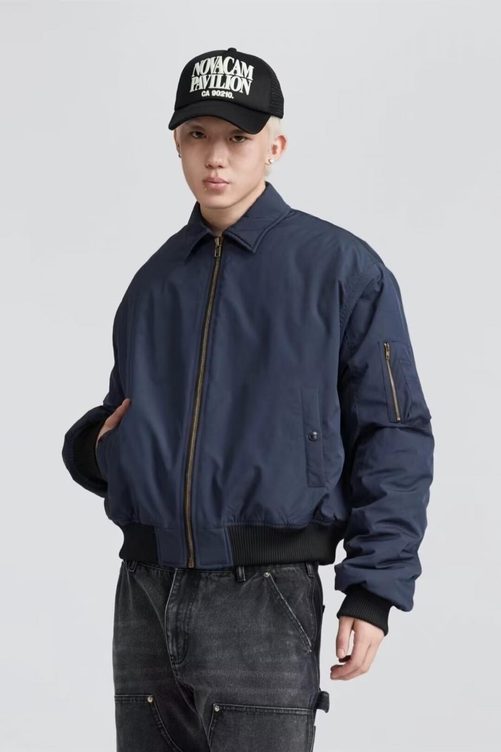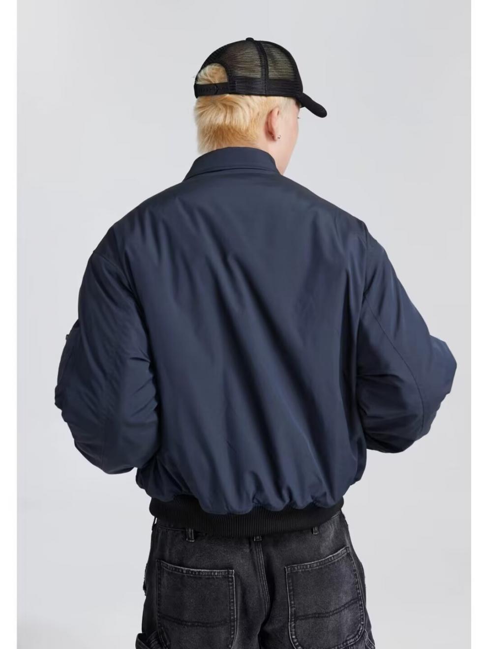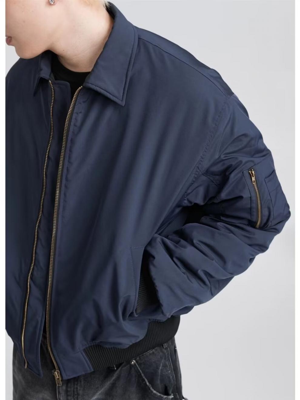 Compra Nueva chaqueta bomber azul marino retro americana, abrigo de marca de moda europea y americana, traje de béisbol corto para hombre al por mayor en Joom.pro