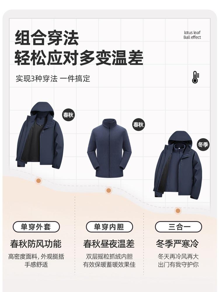 Chaqueta de otoño e invierno para hombre, con forro polar desmontable, chaqueta con capucha, forro polar de tres capas, cálida, para jóvenes y de mediana edad.