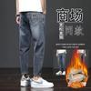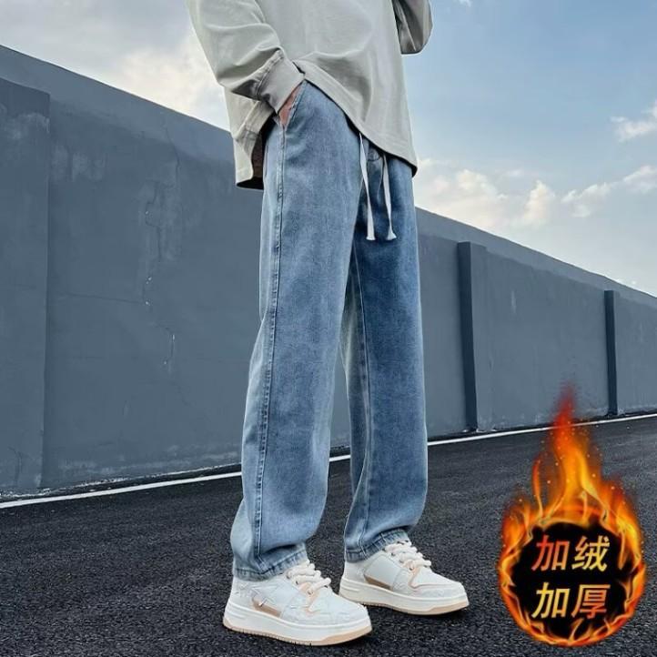 Otoño e invierno, nuevos pantalones vaqueros gruesos con forro polar, vaqueros rectos explosivos para hombre, pantalones holgados de estilo americano retro para hombre.