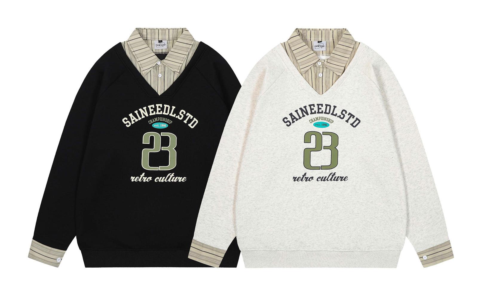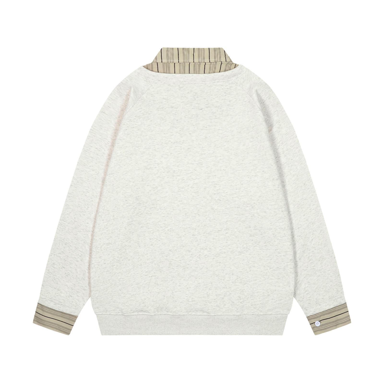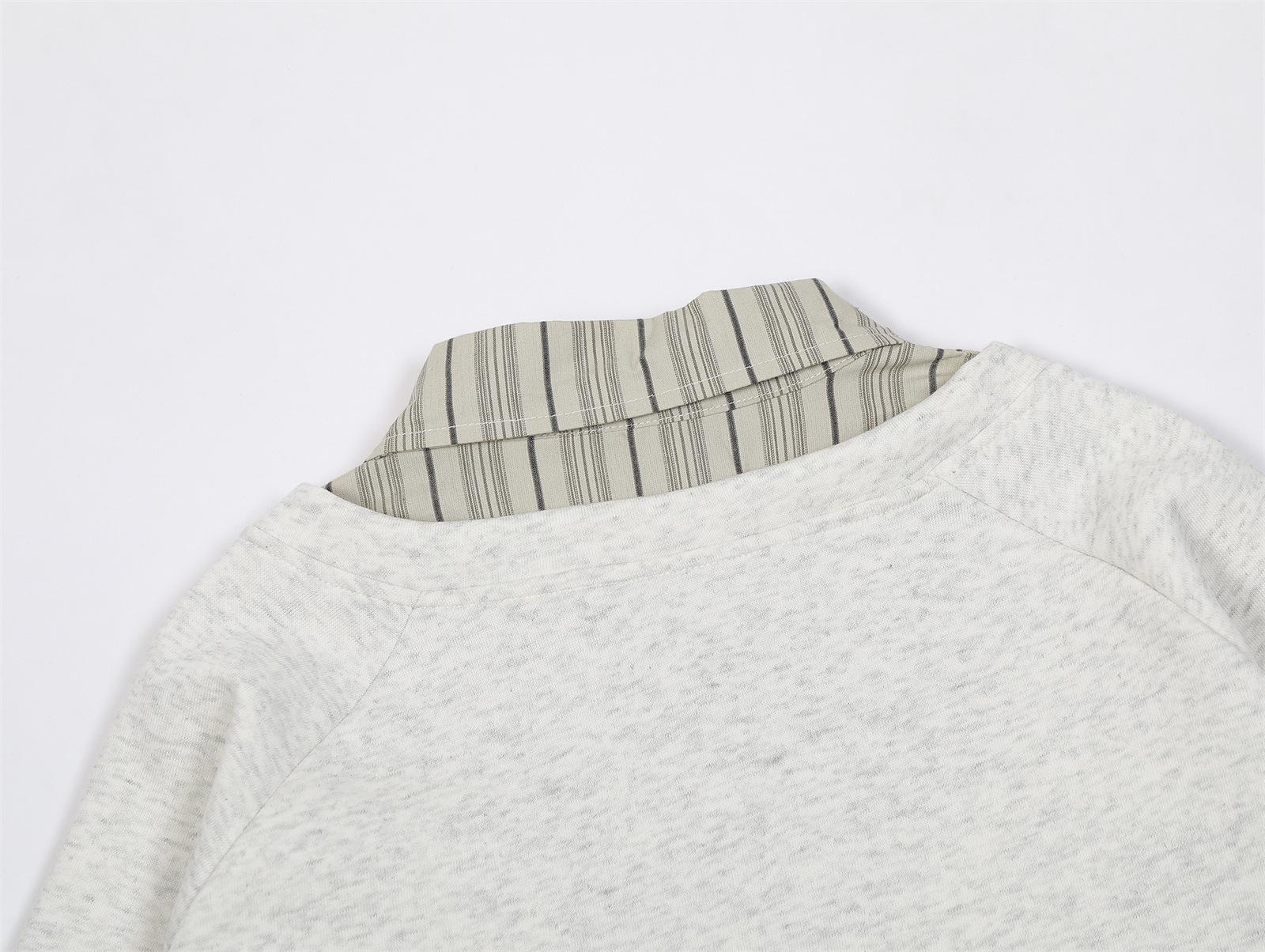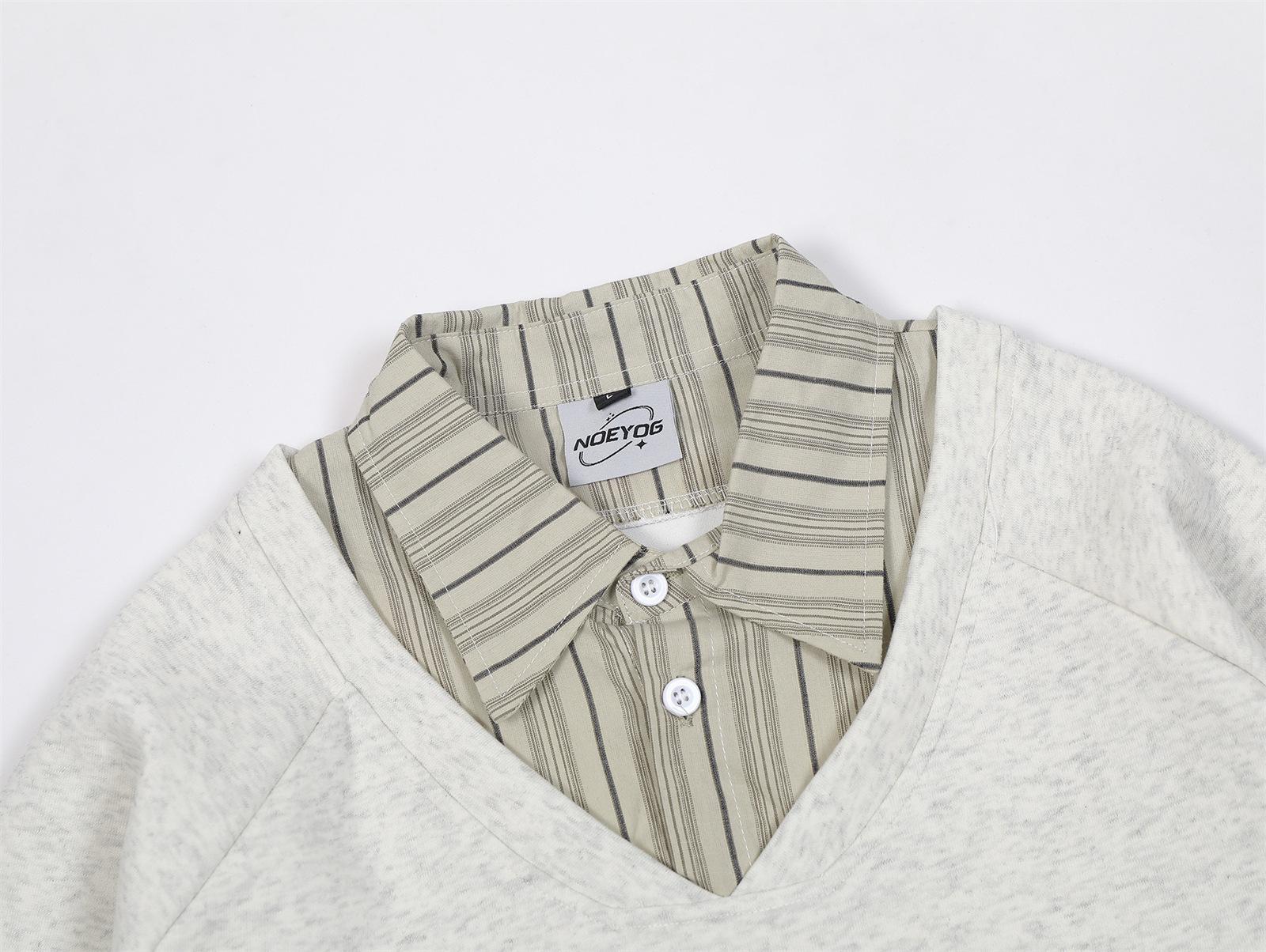 Suéteres de dos piezas con cuello camisero falso a rayas retro estilo americano para hombres y mujeres, top informal de otoño con solapa y moda nacional para parejas