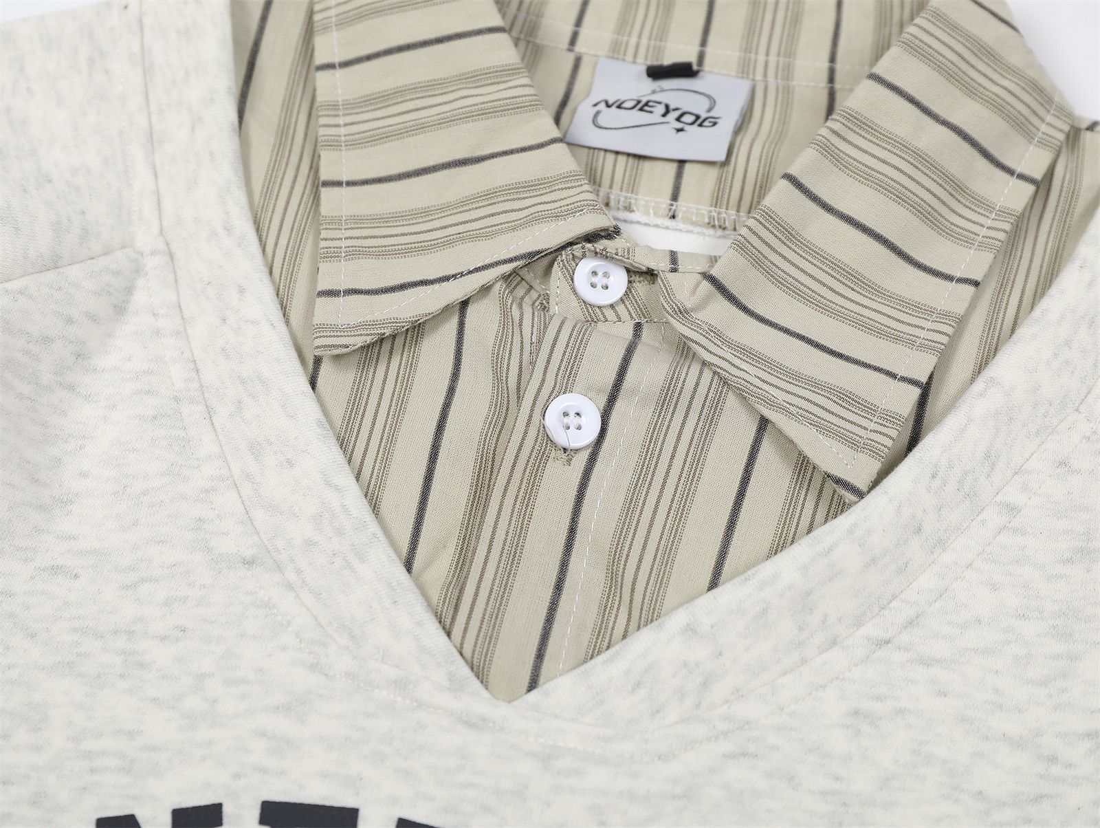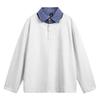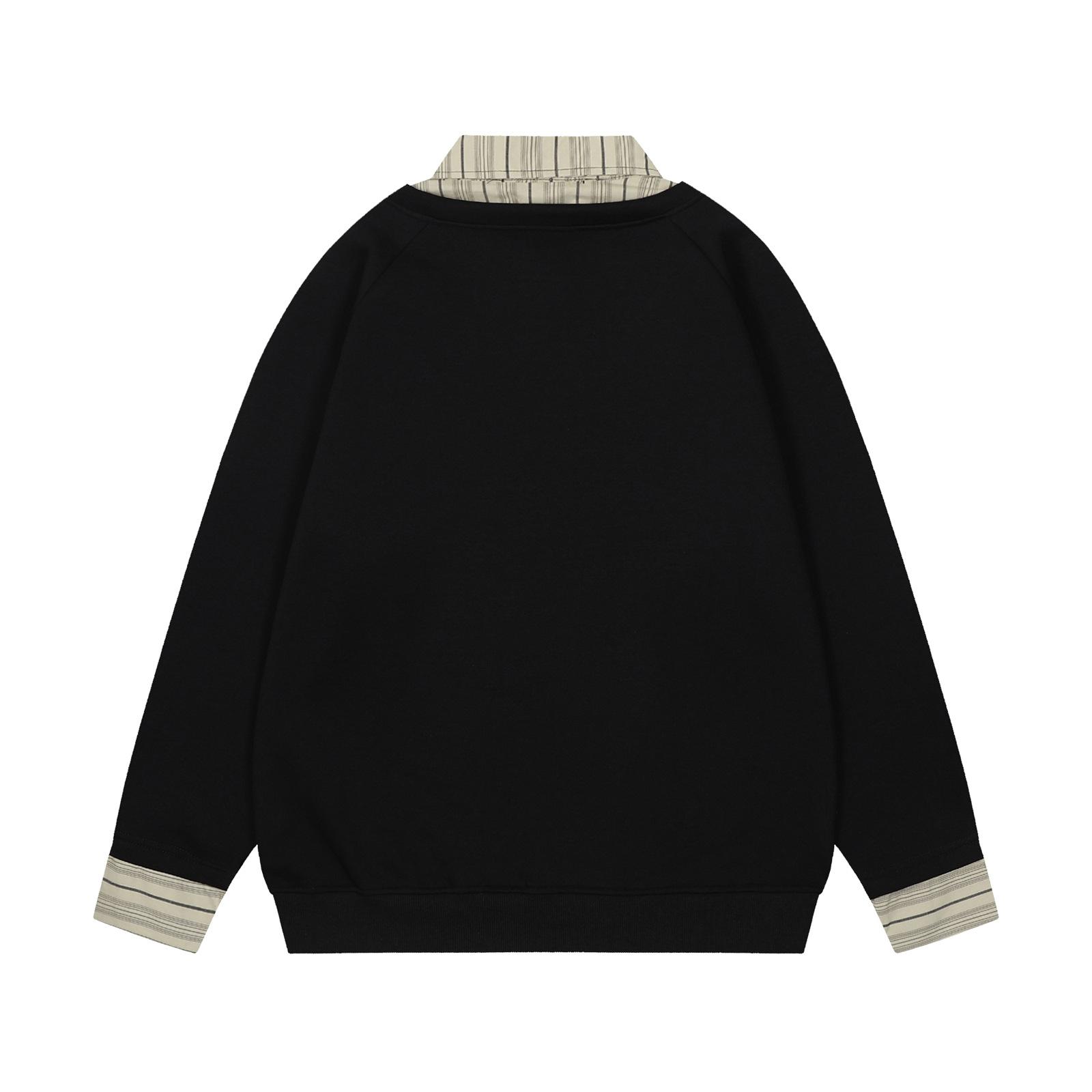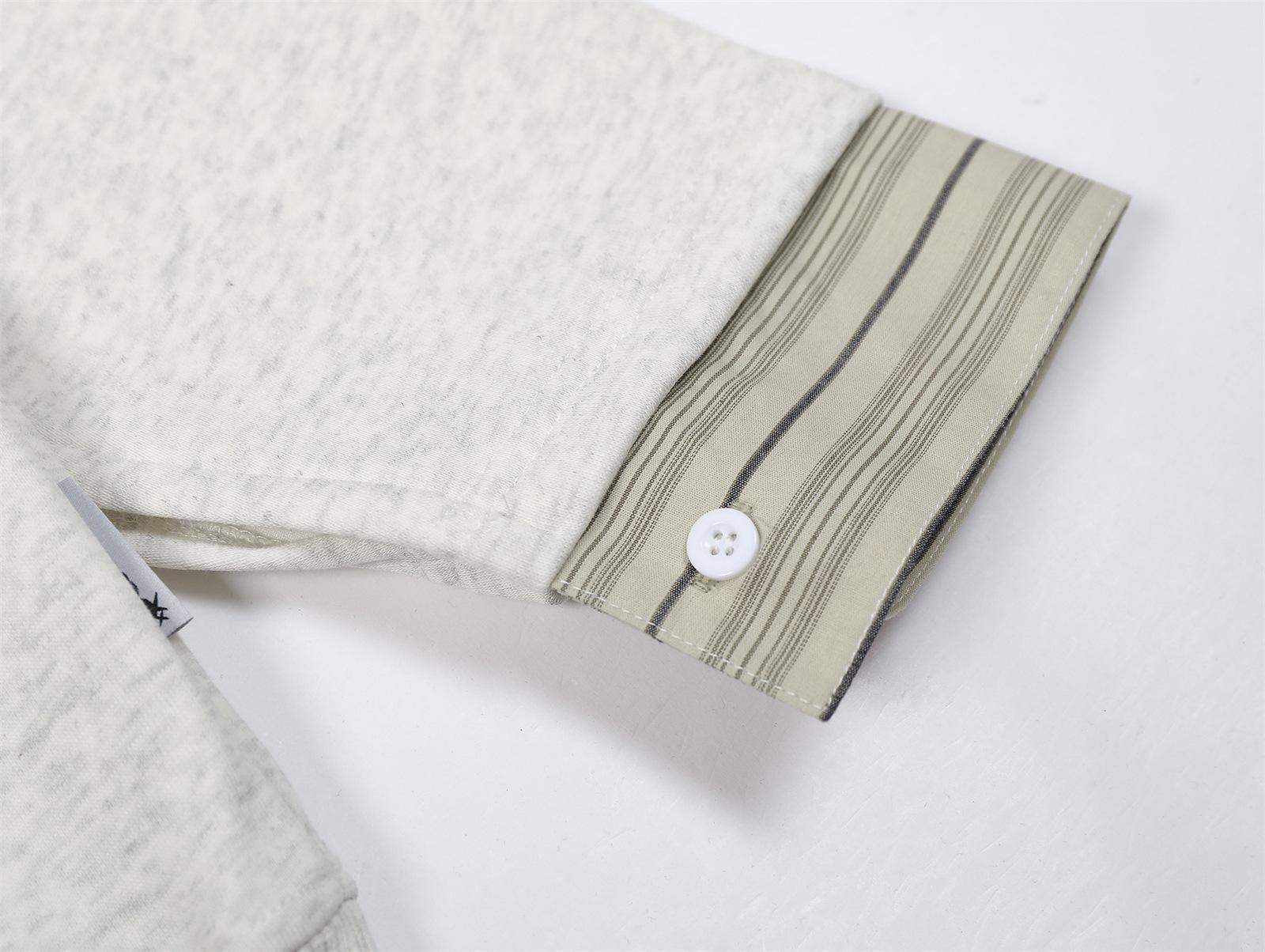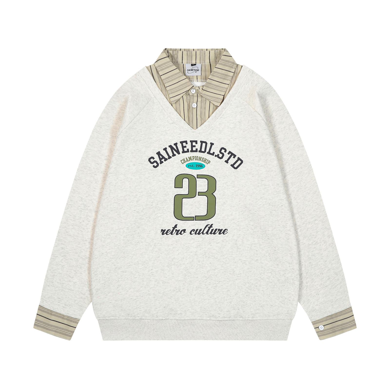 Suéteres de dos piezas con cuello camisero falso a rayas retro estilo americano para hombres y mujeres, top informal de otoño con solapa y moda nacional para parejas