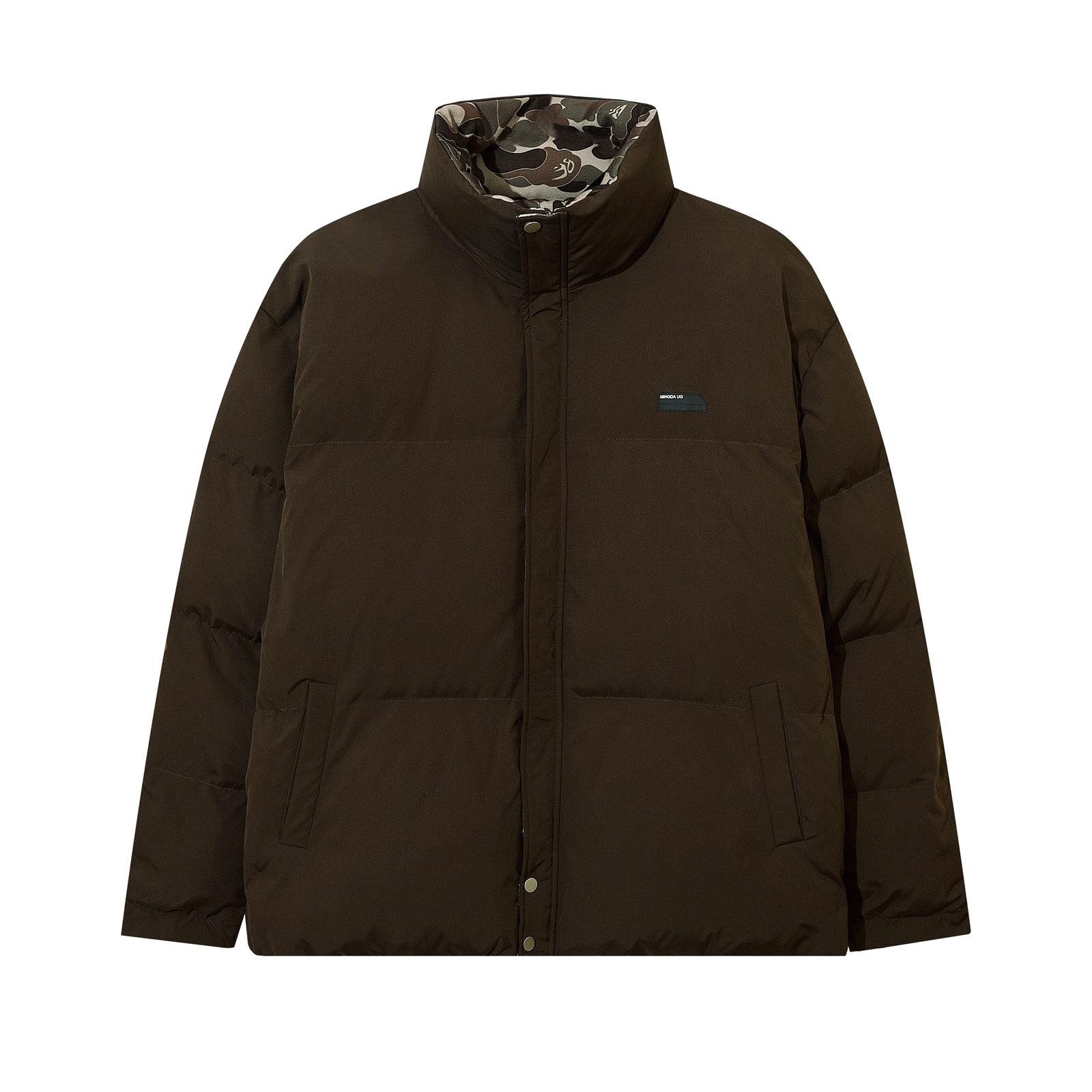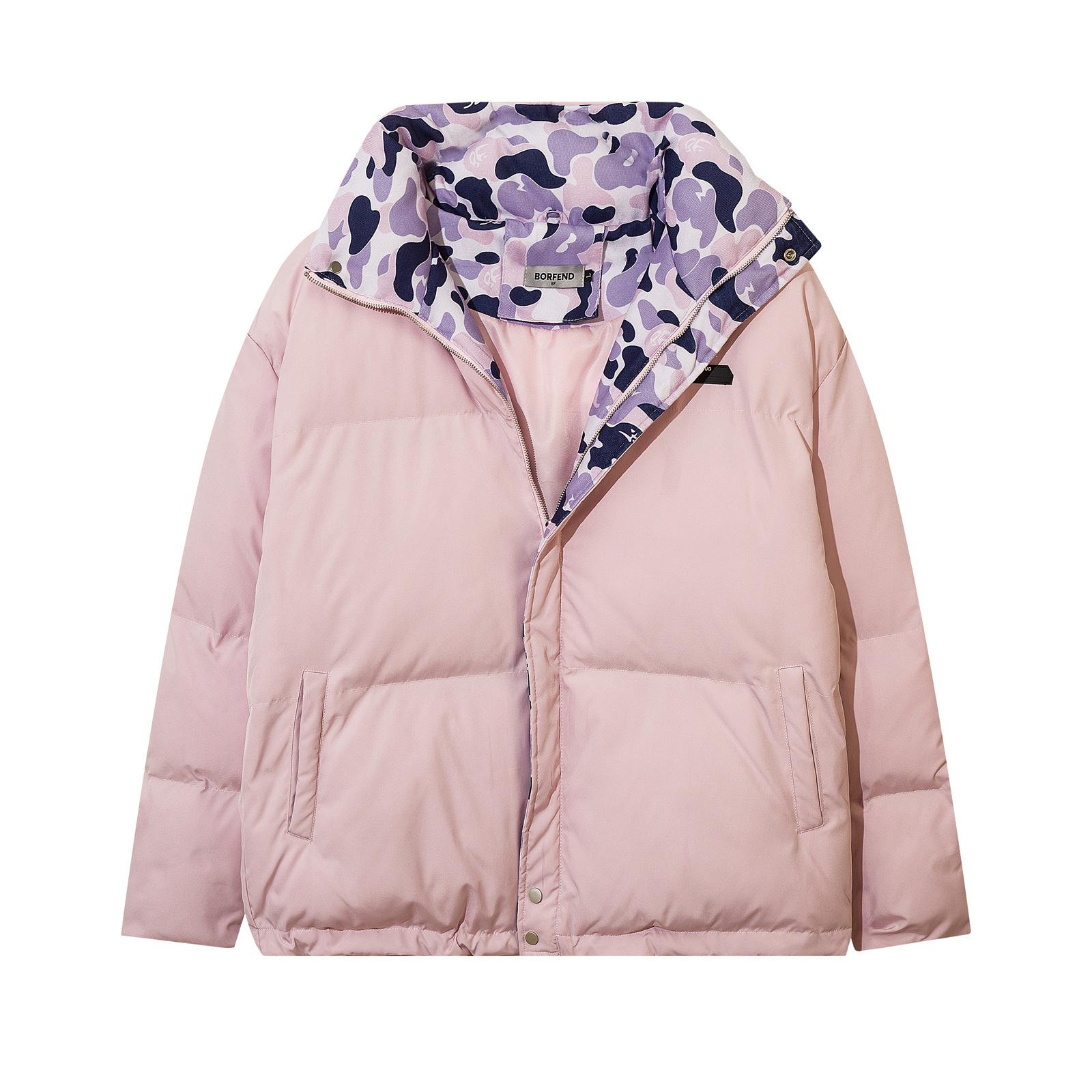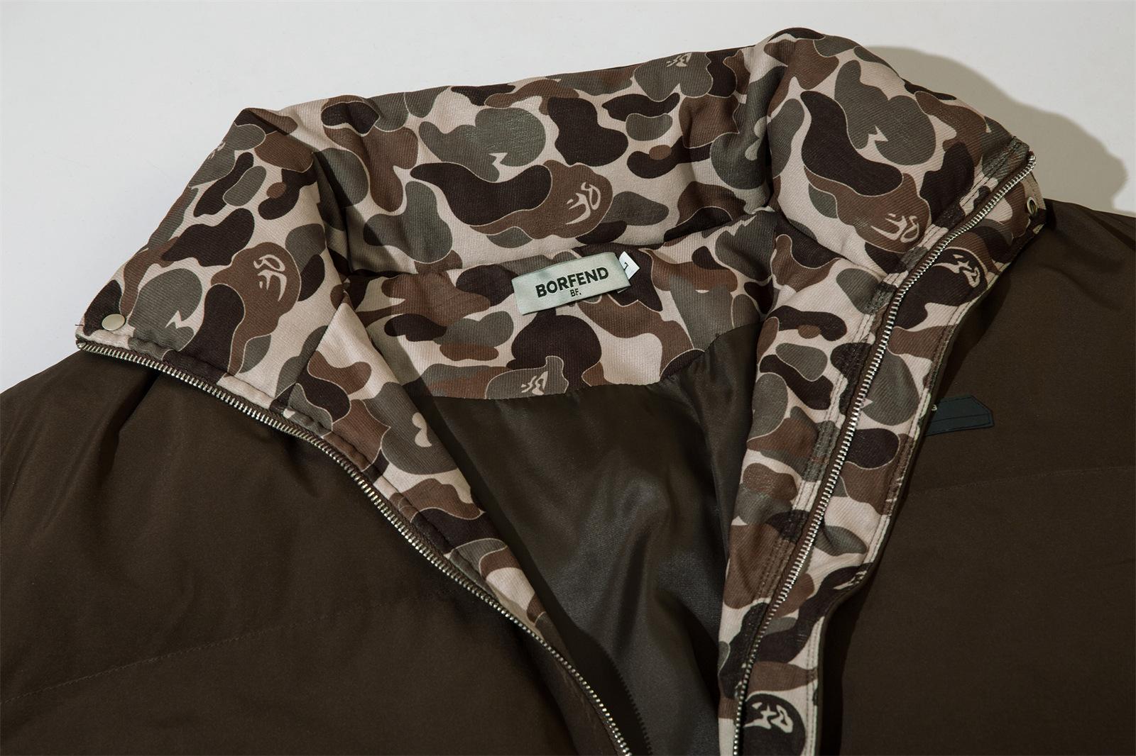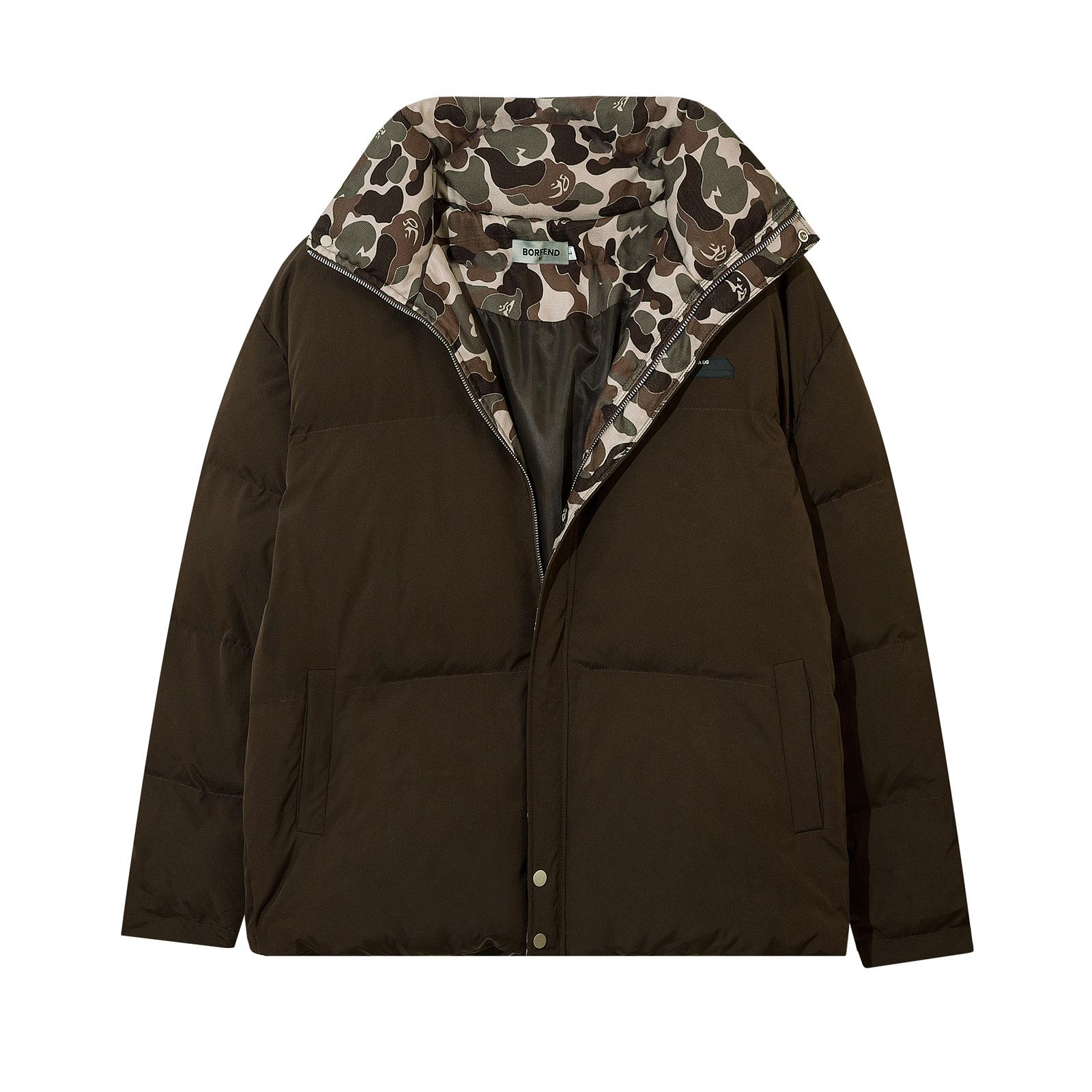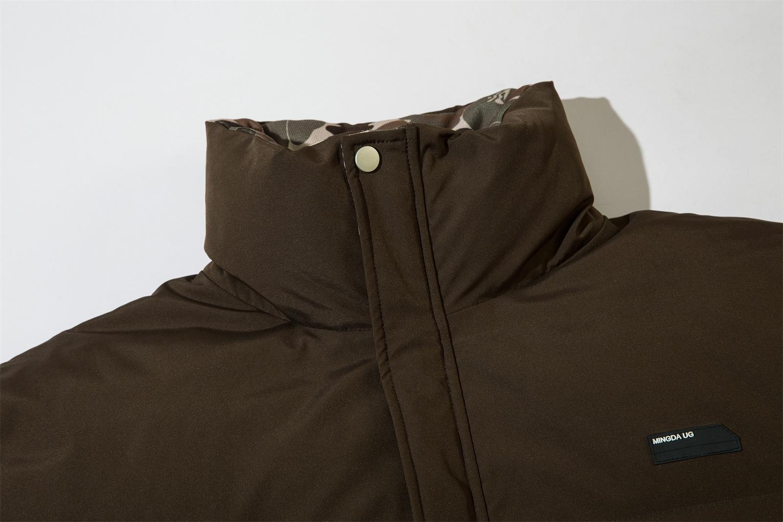 Chaqueta acolchada de algodón con cuello vertical, diseño de camuflaje con costuras vintage americanas para hombre y mujer, chaqueta holgada, gruesa y cálida de invierno.