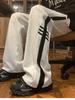 Pantalones casuales a rayas gris claro nuevos para niños Otoño Nuevo Pantalón de sudor Holgado Recto Adelgazante Combinable Pantalón deportivo