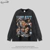 Suéter con capucha lavable y pesado con estampado de estrella de hip hop callejero americano para hombre, sudadera vintage de manga larga