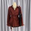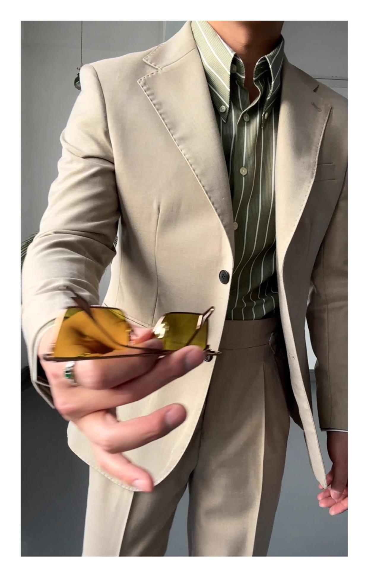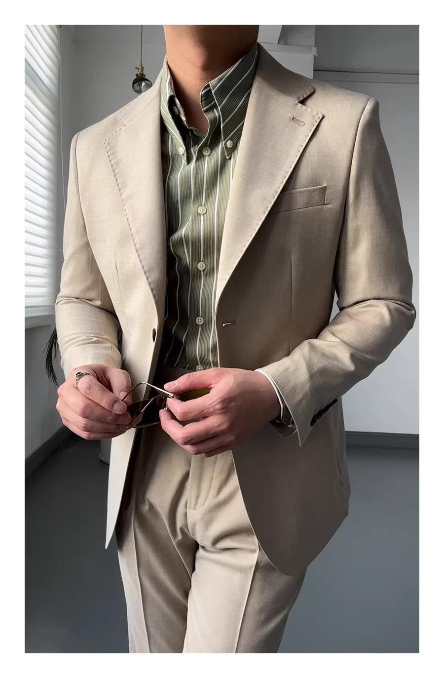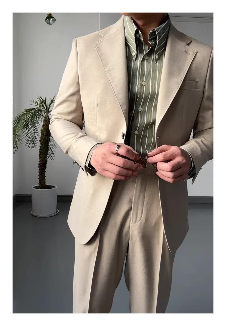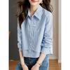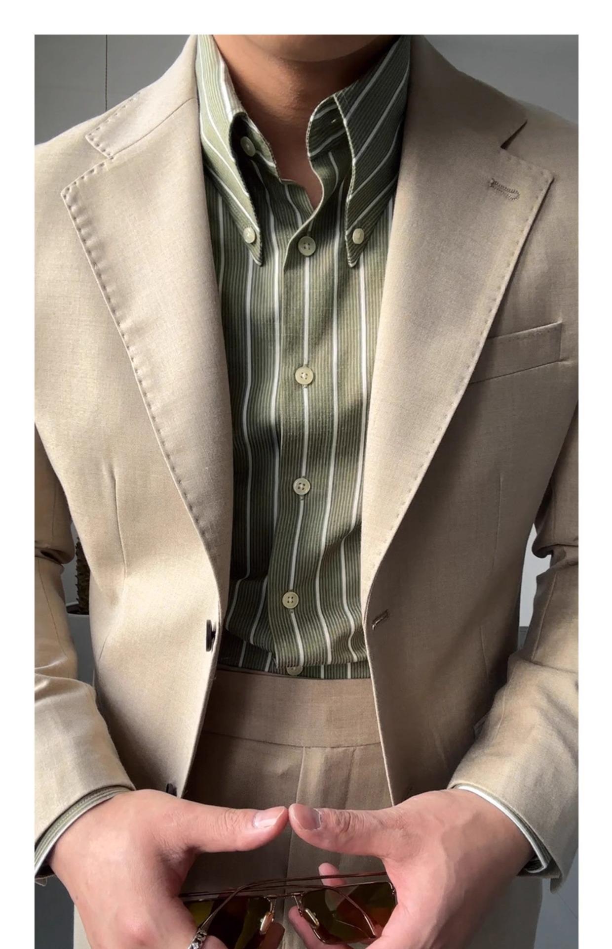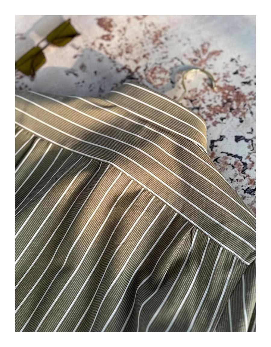 Camisa informal de negocios de otoño a rayas de manga larga con botones verdes retro italianos, camisa de cuello largo de punta, elegante y distintiva, de corte entallado.