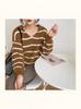 Otoño 2026 Nuevo Estilo Coreano Dongdaemun Estilo Perezoso Cuello Marino Elegante Rayas Manga Larga Holgada Top para Mujer
