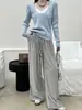 Pantalones rectos de cintura alta plisados informales para mujer, estilo sencillo, primavera y verano 2024, nuevos, de estilo europeo y americano, para mujer.