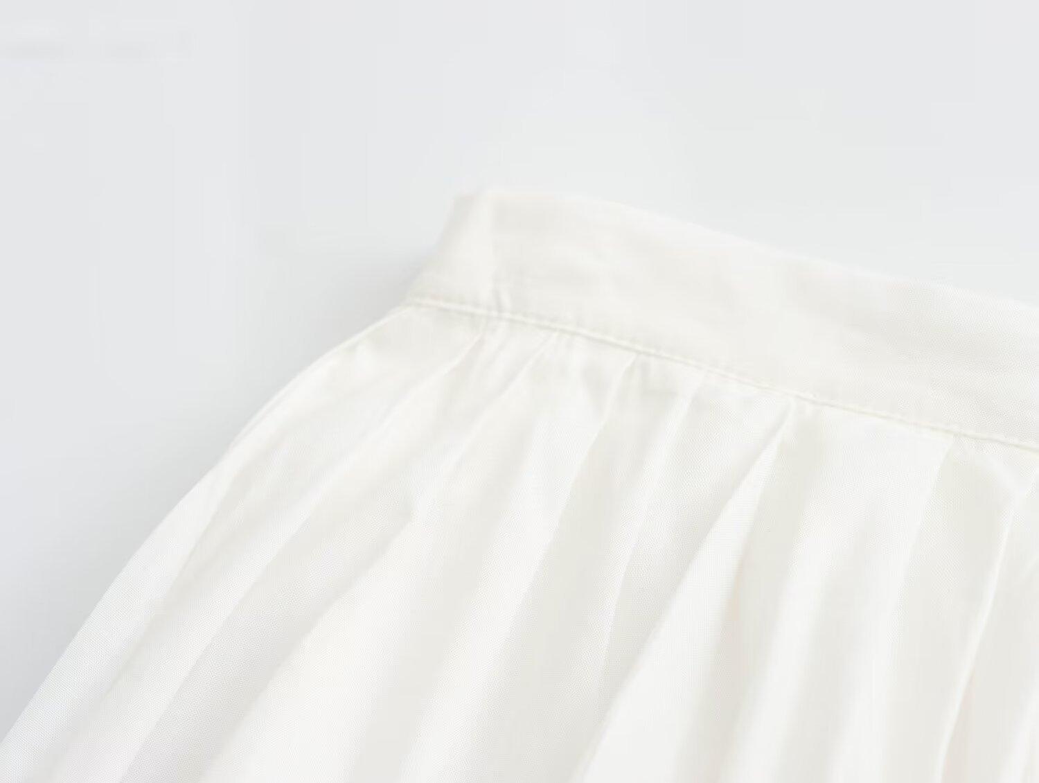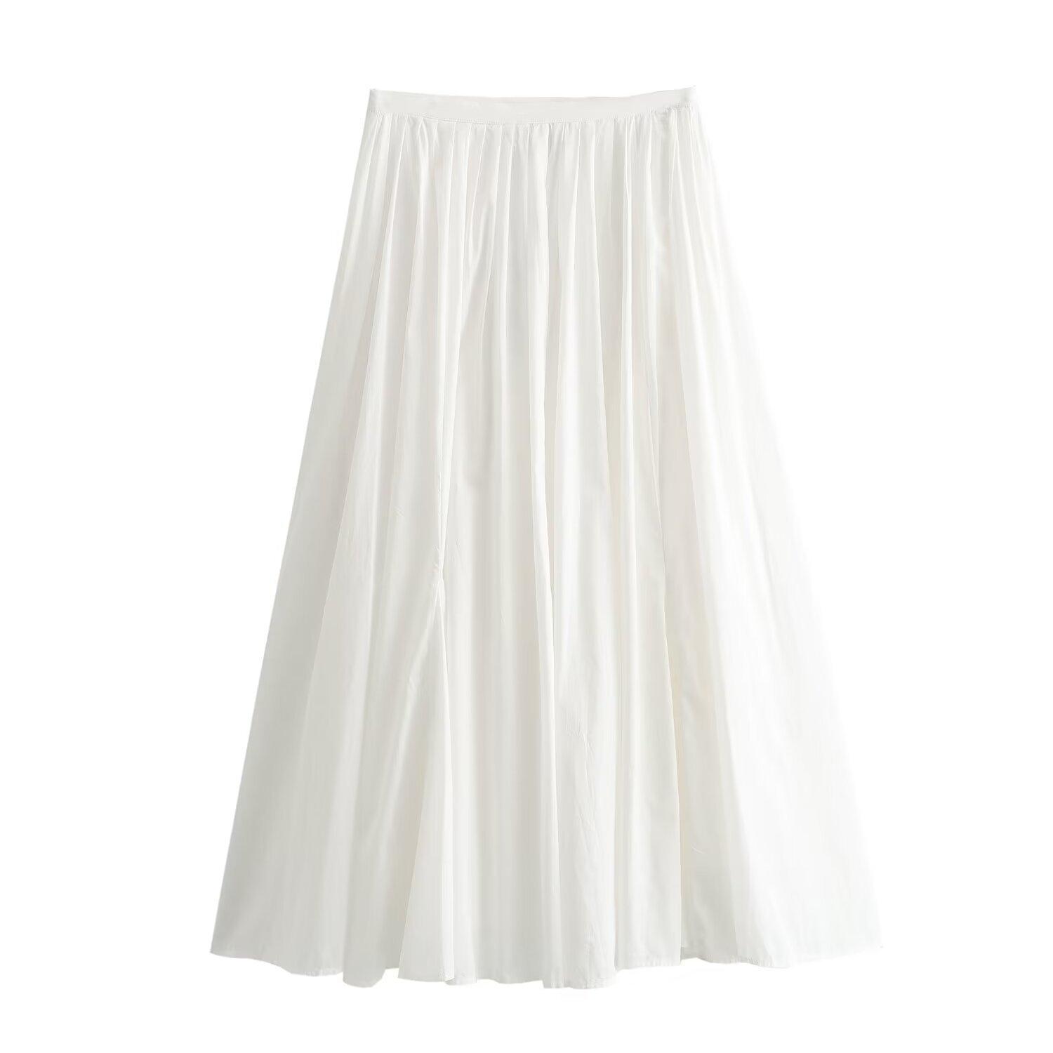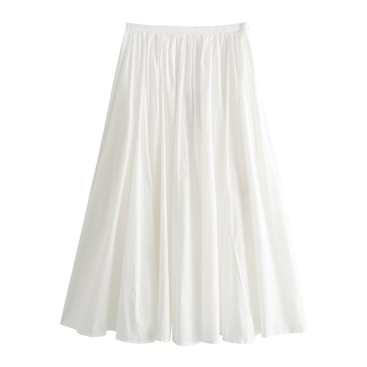 Falda midi plisada blanca ancha de color liso para mujer, estilo informal, de moda sencilla, estilo transfronterizo europeo y americano, para verano de 2024