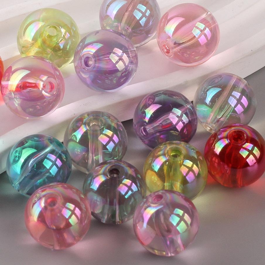 Compra Cuentas redondas acrílicas de alta transparencia, con agujeros rectos mágicos, chapadas en AB, sueltas, para hacer pulseras de cuentas hechas a mano, joyería. al por mayor en Joom.pro