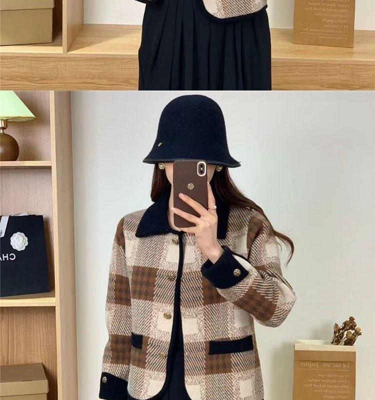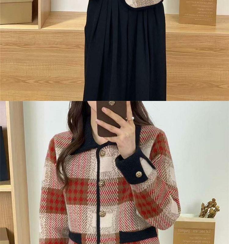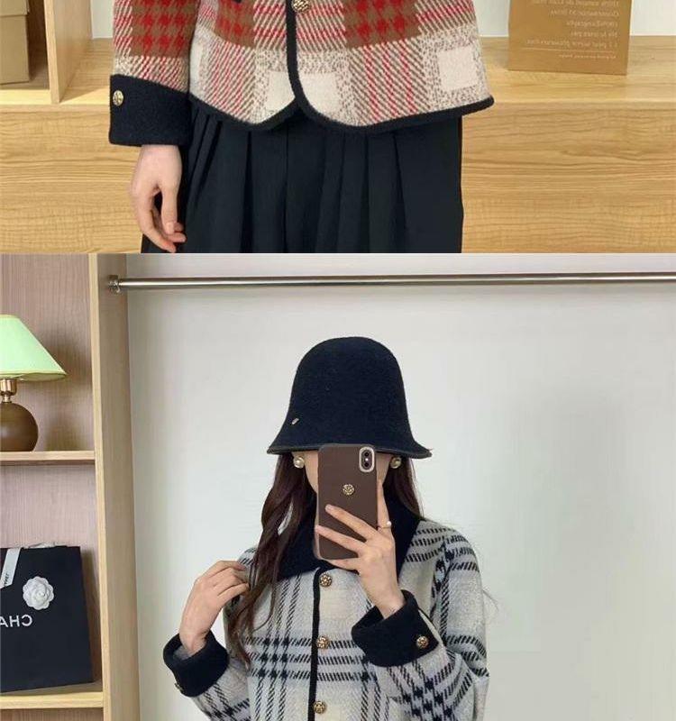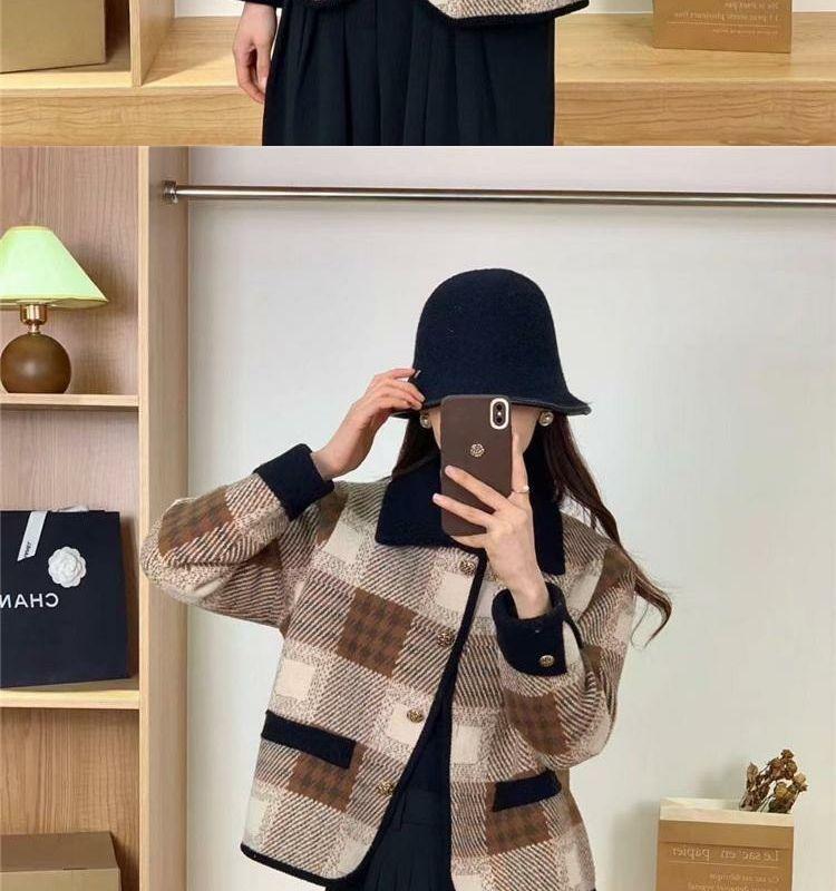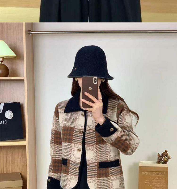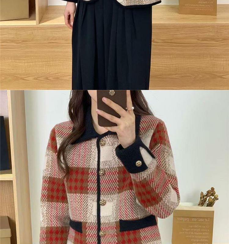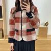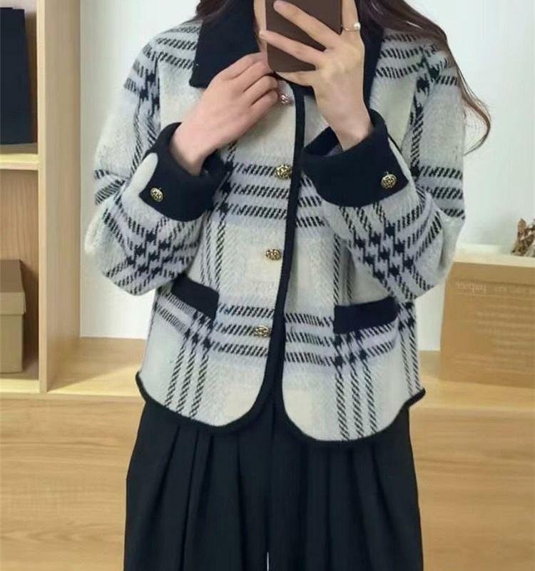 Abrigo estilo Chanel para mujer, corto, primavera y otoño, nuevo estilo, prenda exterior, a cuadros, de moda, con solapa, cárdigan de punto, top de moda