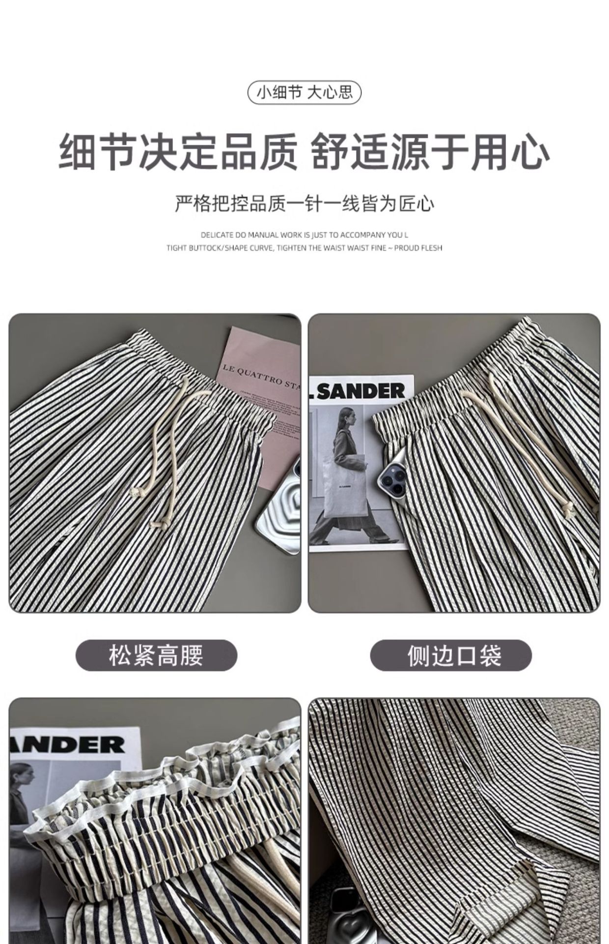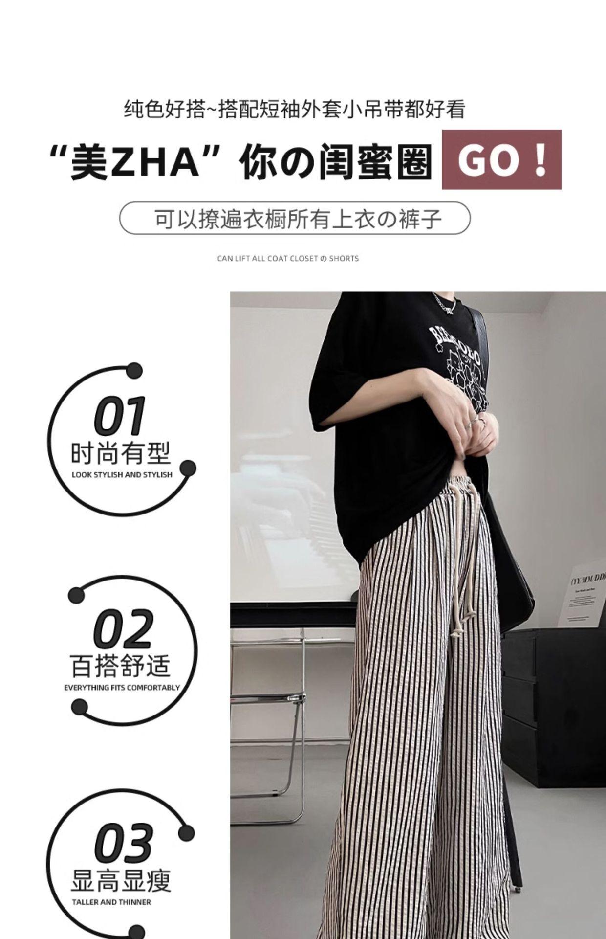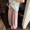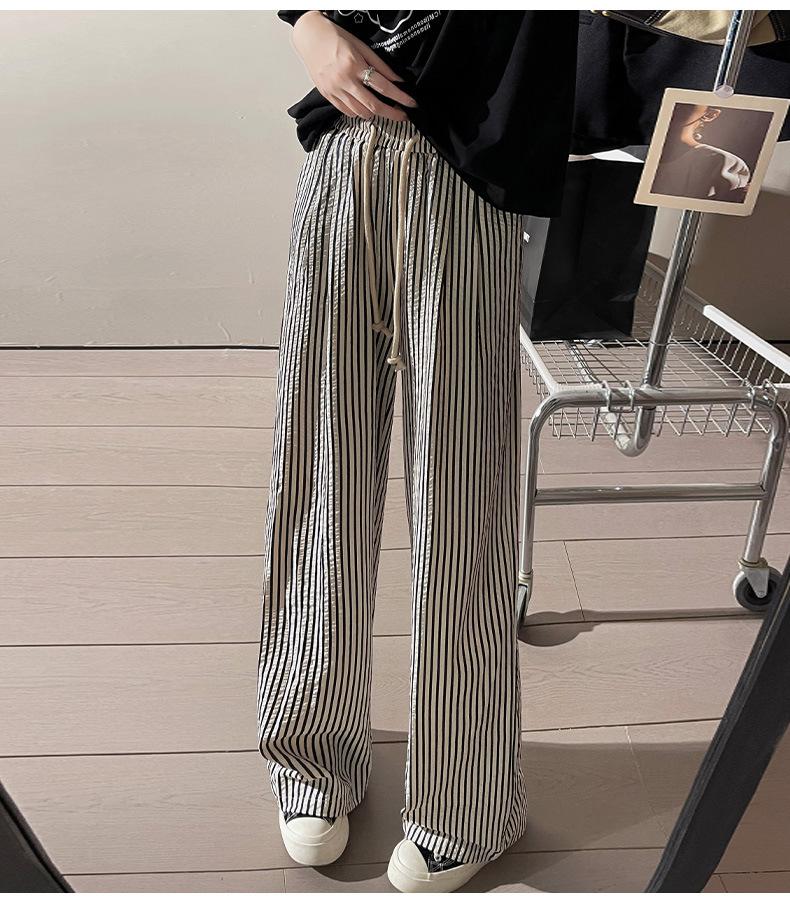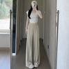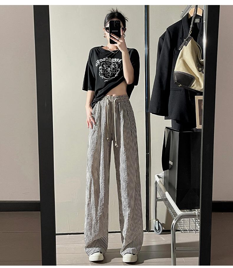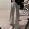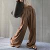 Pantalones anchos estilo preppy coreano para mujer, delgados de verano, cintura alta, drapeado holgado casual, seda helada, cintura elástica, pantalones de protección solar