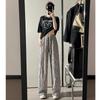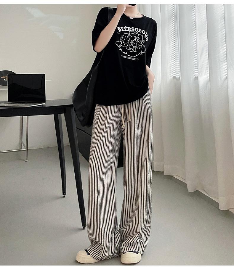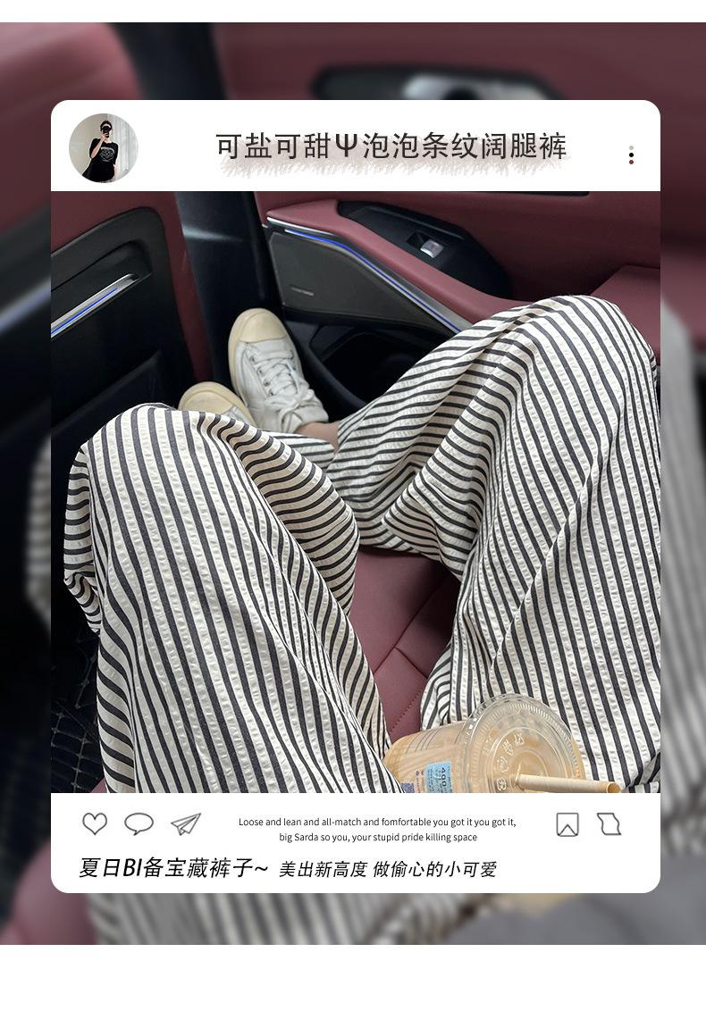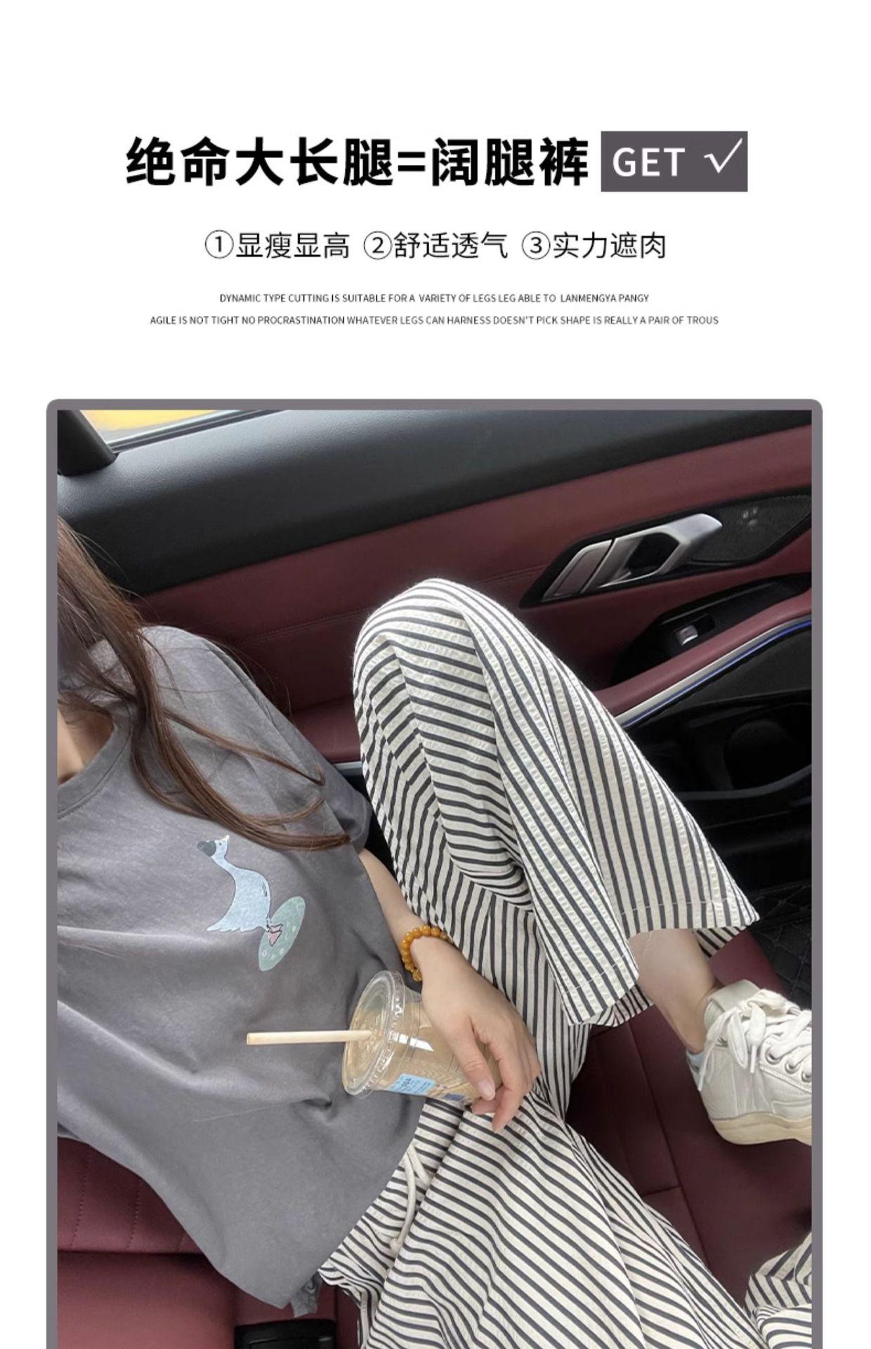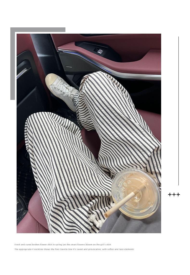 Pantalones anchos estilo preppy coreano para mujer, delgados de verano, cintura alta, drapeado holgado casual, seda helada, cintura elástica, pantalones de protección solar