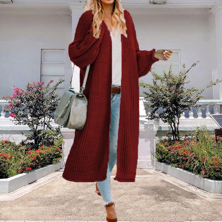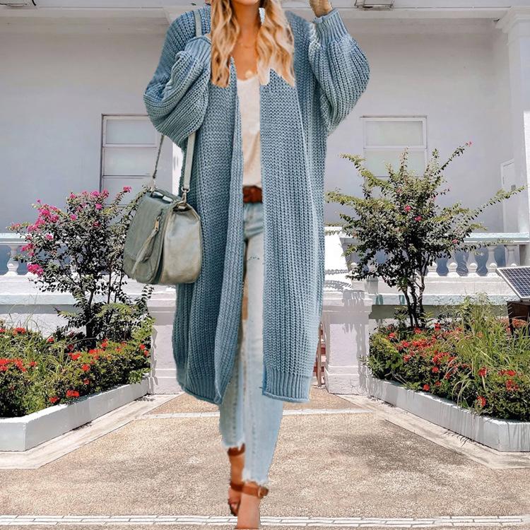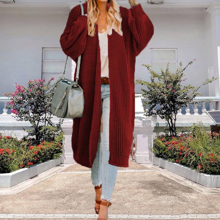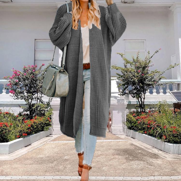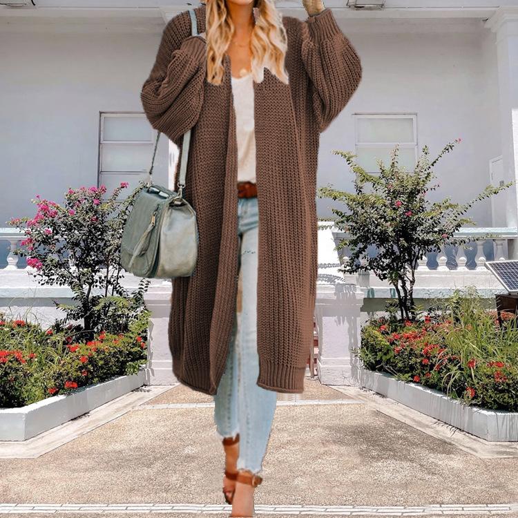 2025 Aliexpress Amazon Otoño Nuevo Suéter de Mujer Suéter Cárdigan Largo Rizado Chaqueta Abrigo para Mujer
