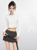 Camiseta de manga larga con hombros descubiertos para mujer, de primavera y otoño, ajustada, de cintura alta, con el ombligo al descubierto, corta, top sexy y dulce para principios de otoño.