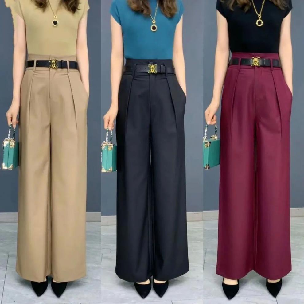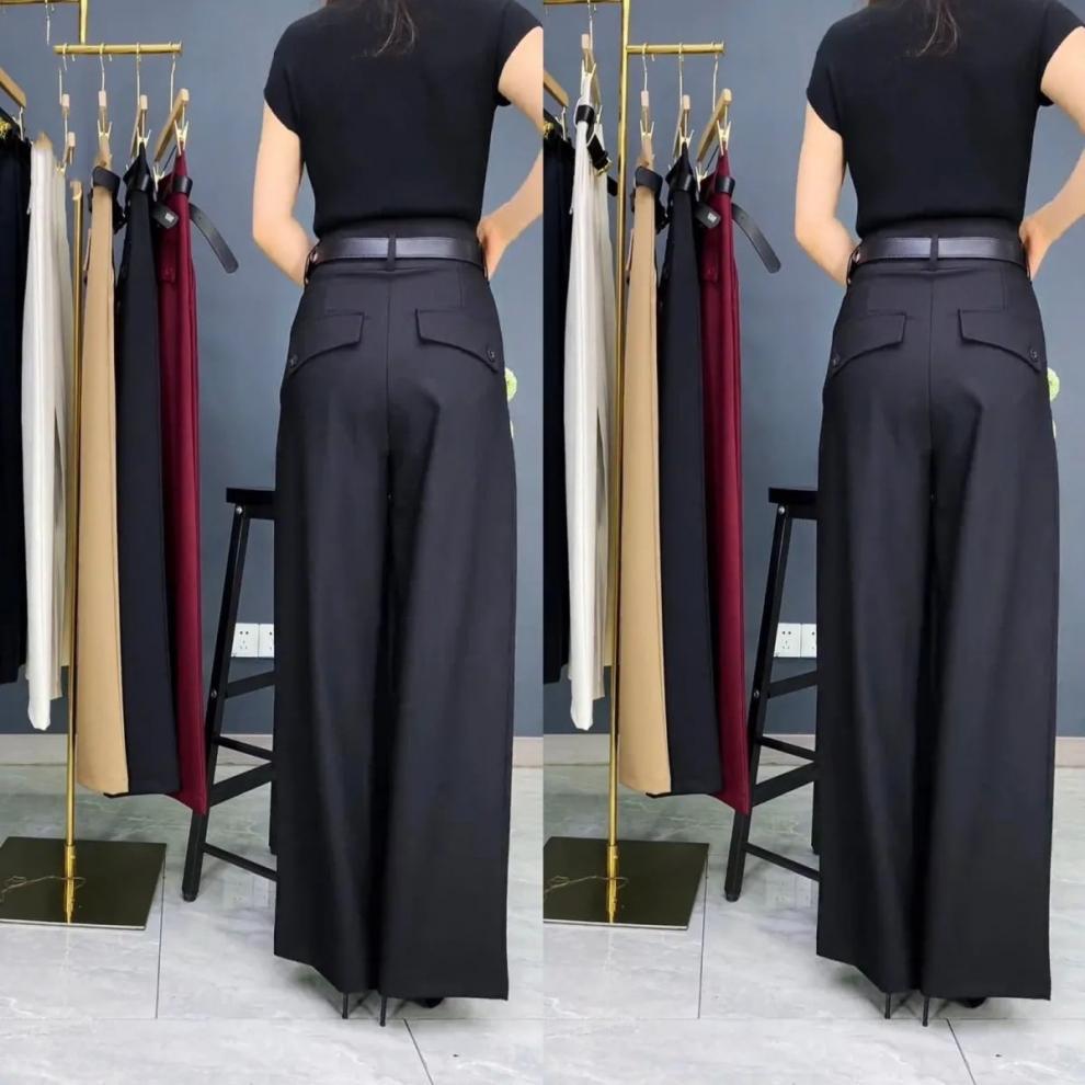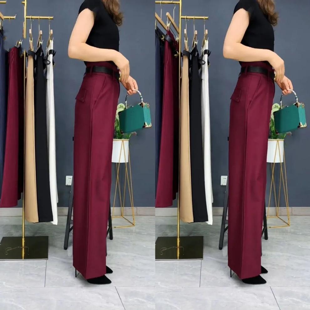 [Enviar cinturón] Pantalones anchos de estilo occidental, recién llegados en primavera y otoño, pantalones con colgante para mujer, pantalones casuales elegantes para mujer.