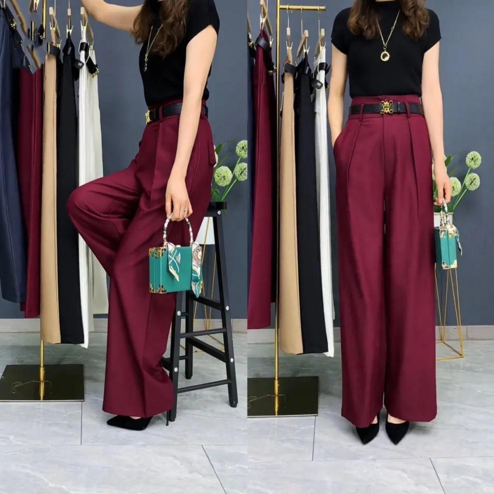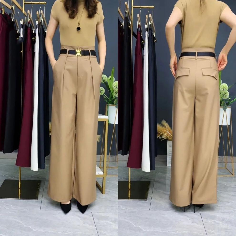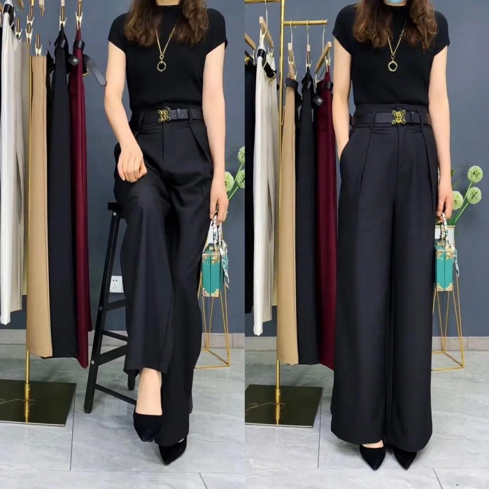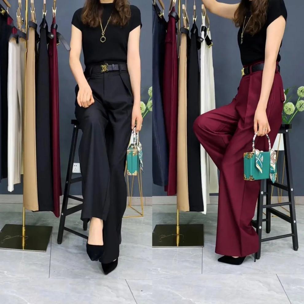 [Enviar cinturón] Pantalones anchos de estilo occidental, recién llegados en primavera y otoño, pantalones con colgante para mujer, pantalones casuales elegantes para mujer.