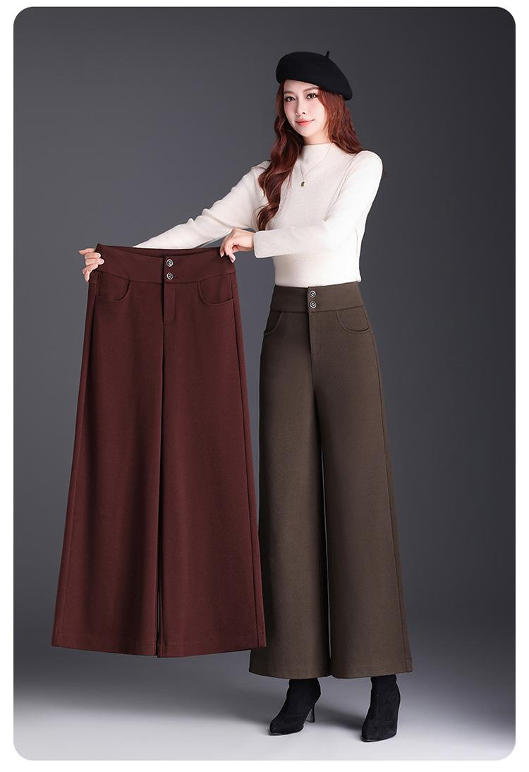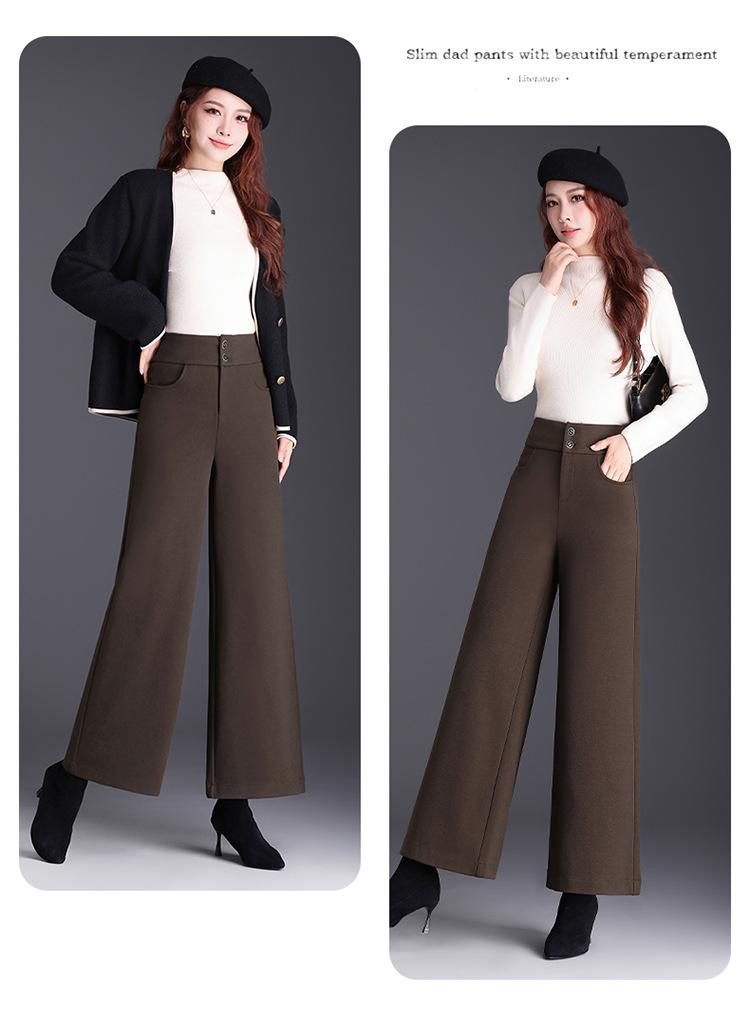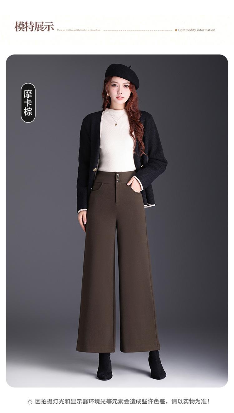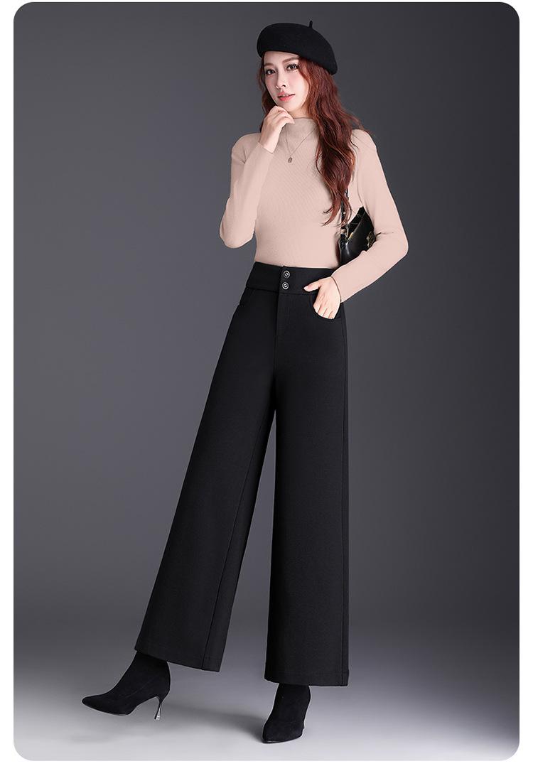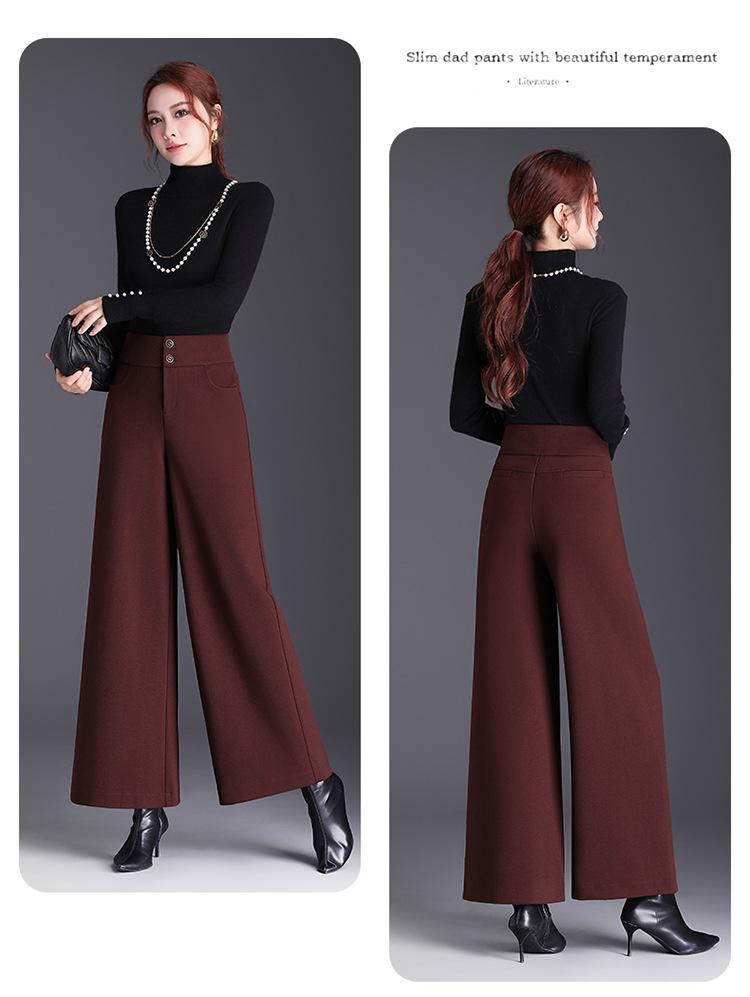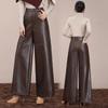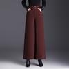 Pantalones anchos de lana gruesa y suelta para mujer, moda de otoño e invierno, cintura alta, aspecto ajustado, pantalones casuales