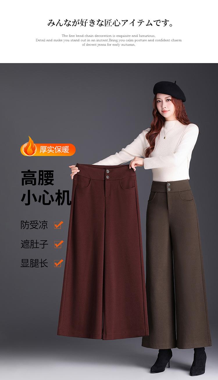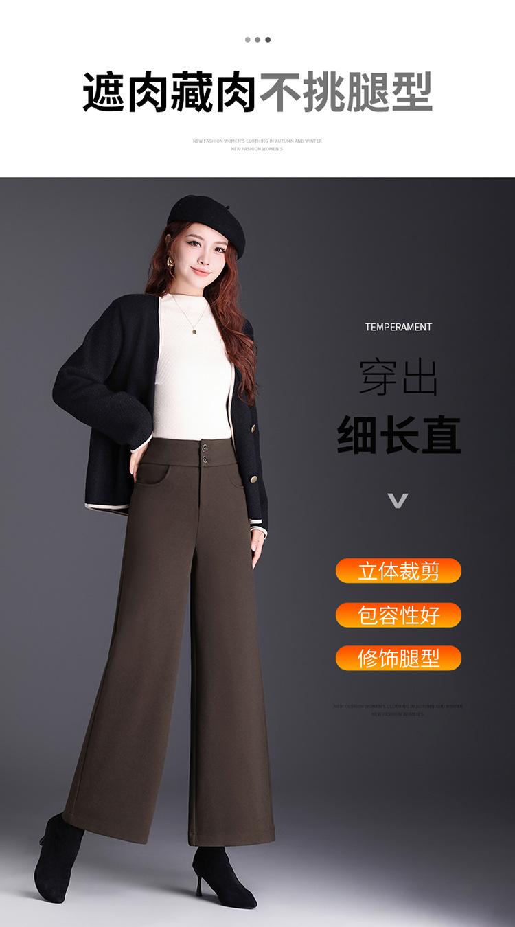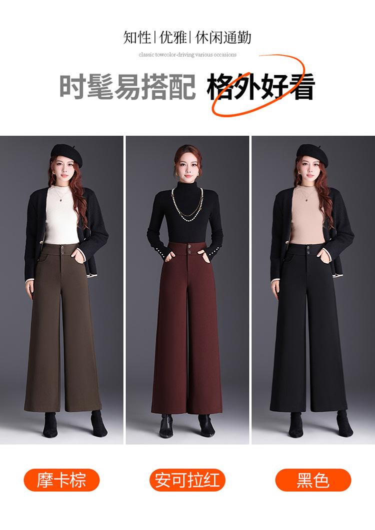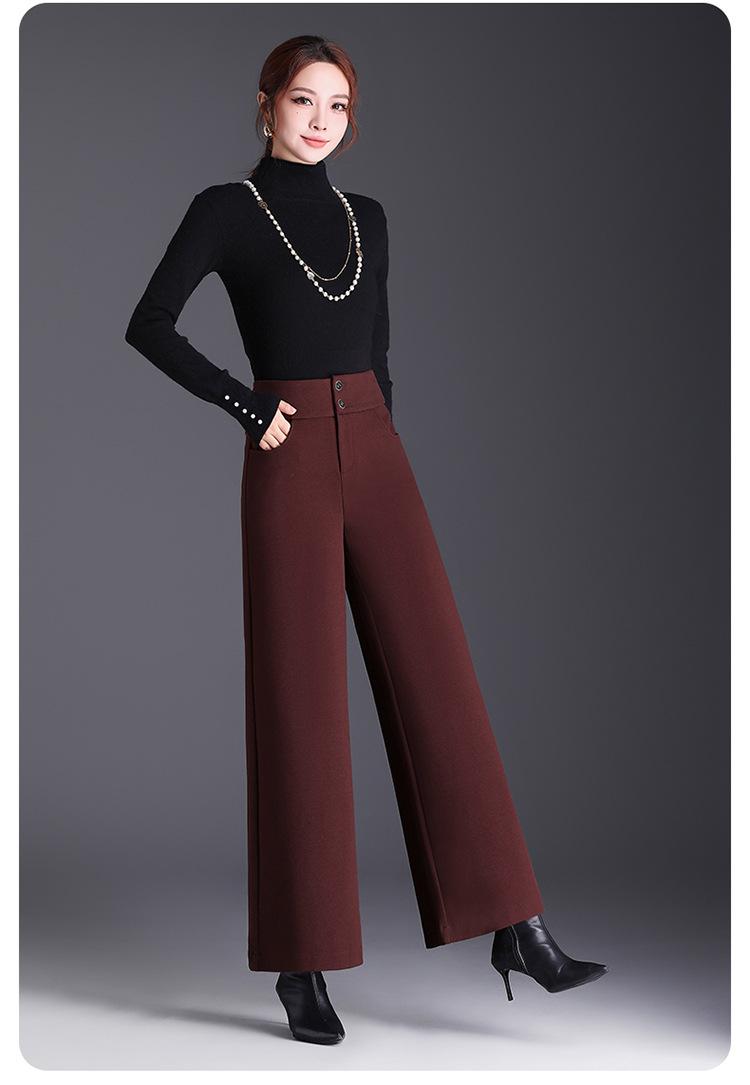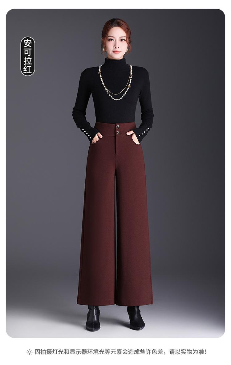 Pantalones anchos de lana gruesa y suelta para mujer, moda de otoño e invierno, cintura alta, aspecto ajustado, pantalones casuales