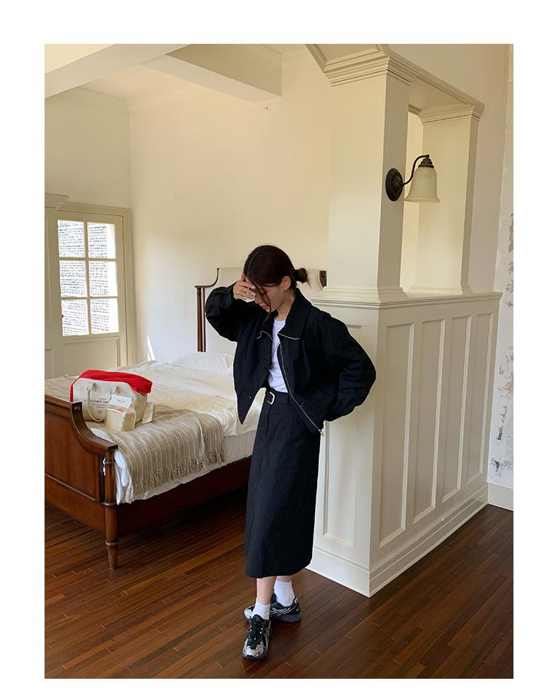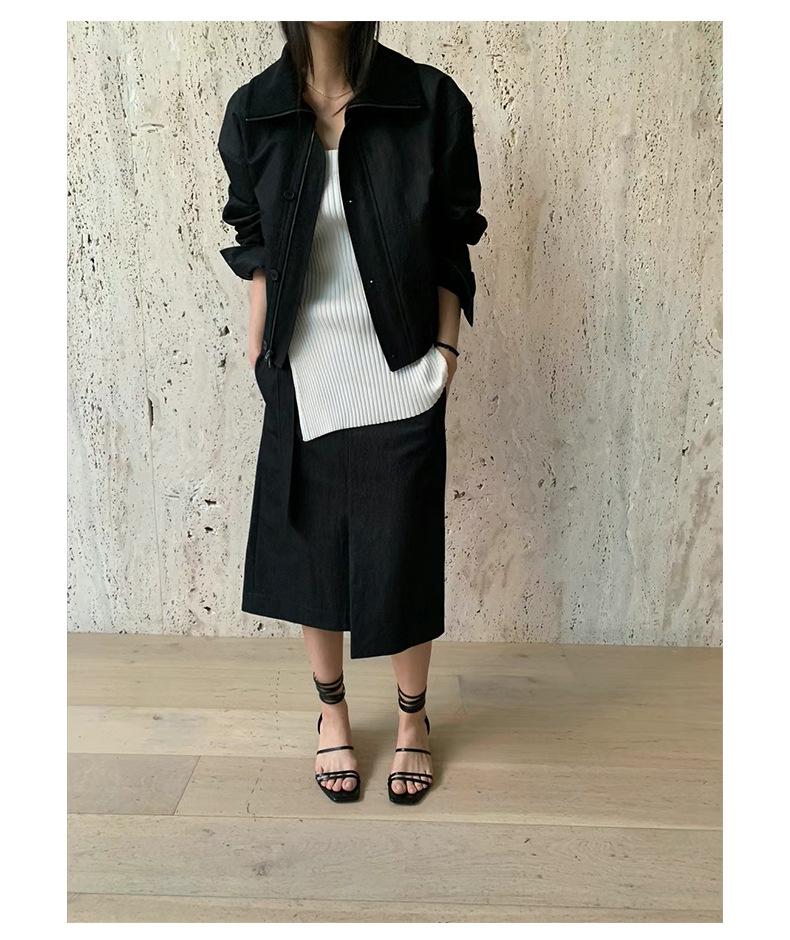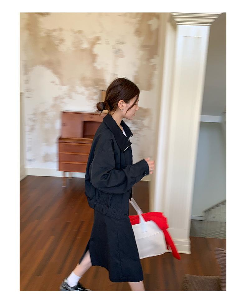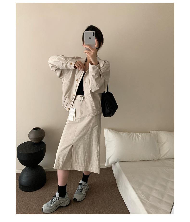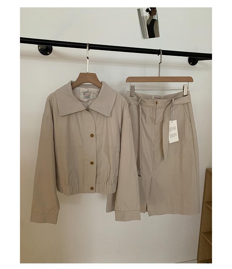 Otoño 2025 Nuevo Diseño Coreano Chaqueta Corta con Solapa + Traje de Falda Midi con Abertura