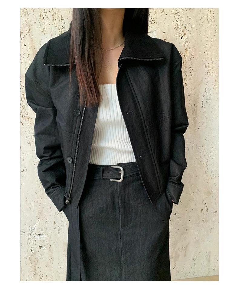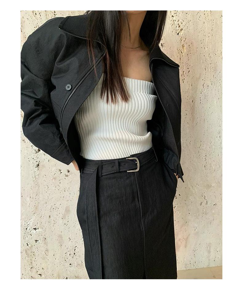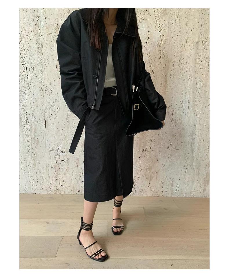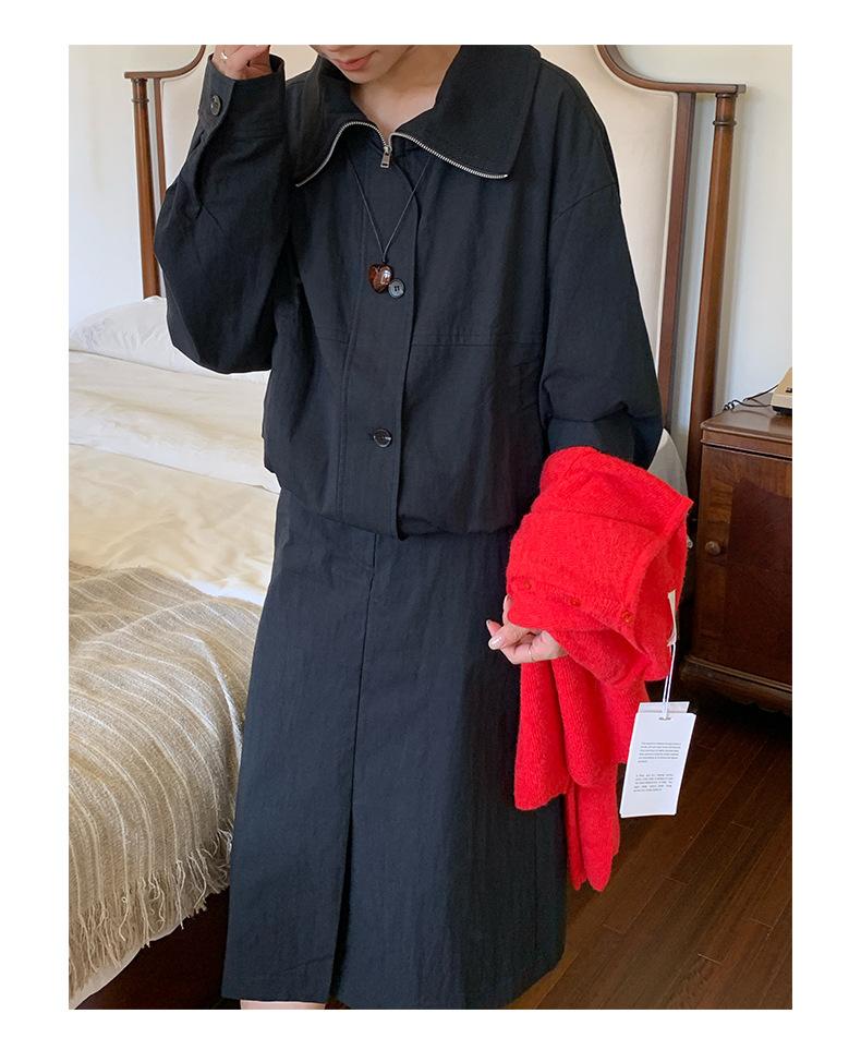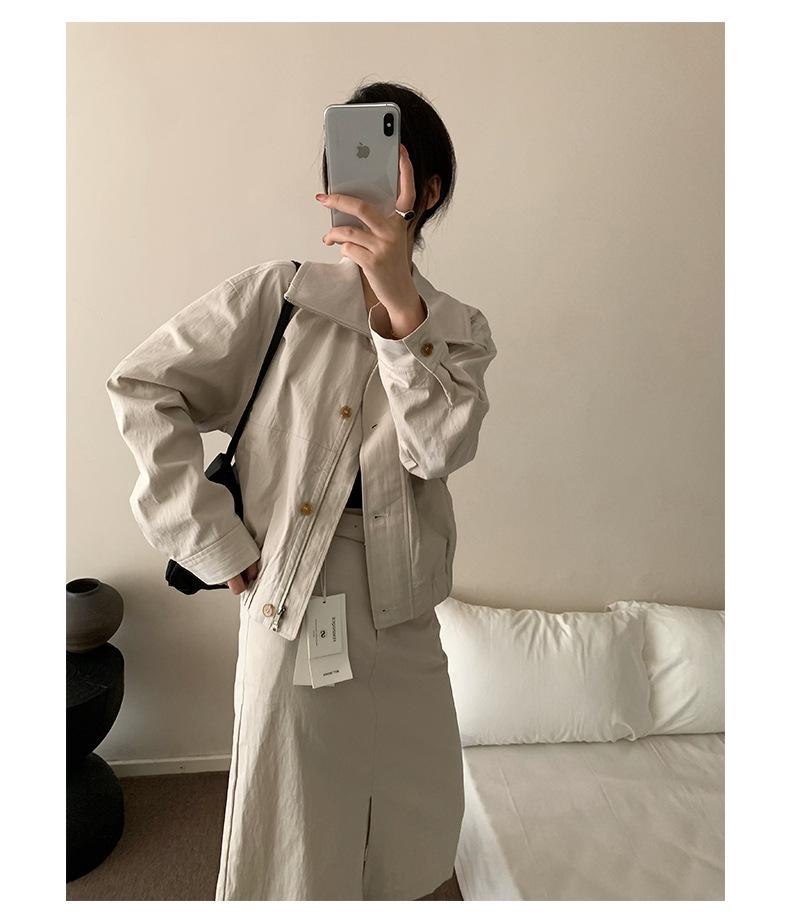 Otoño 2025 Nuevo Diseño Coreano Chaqueta Corta con Solapa + Traje de Falda Midi con Abertura