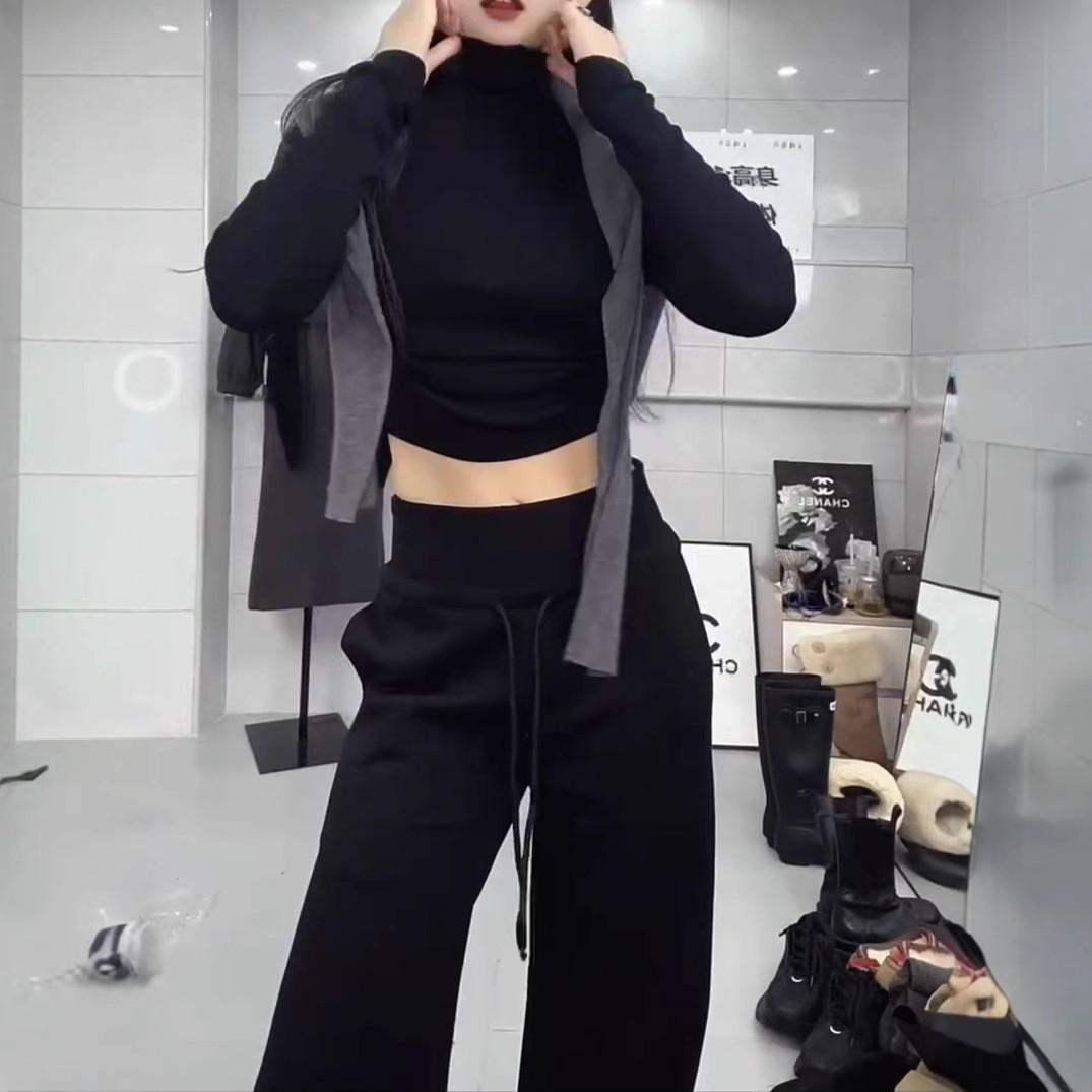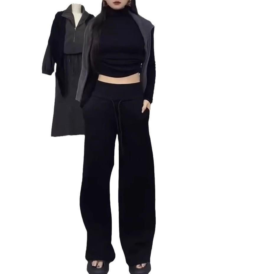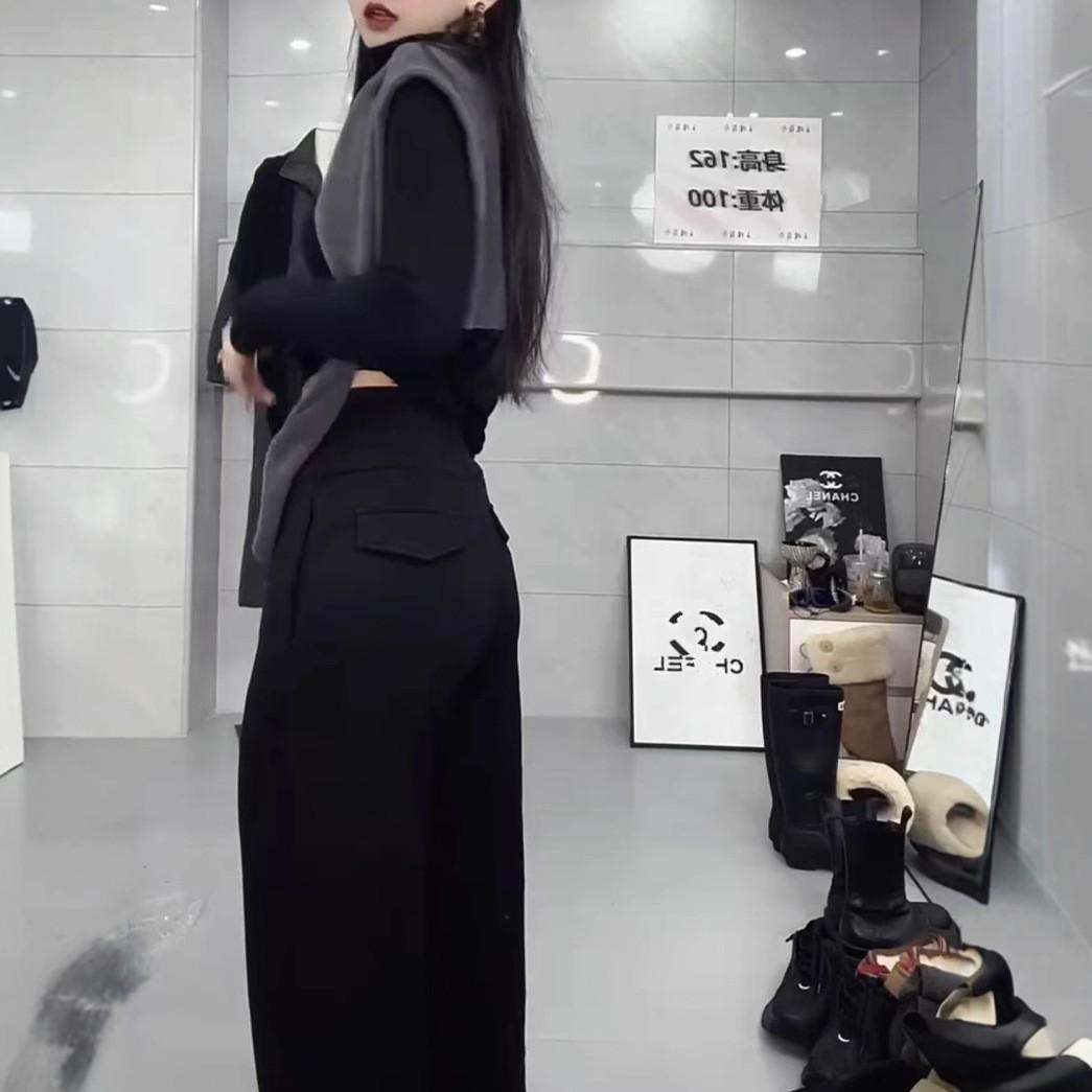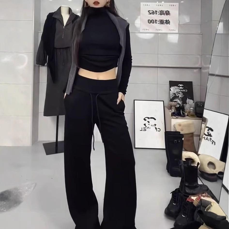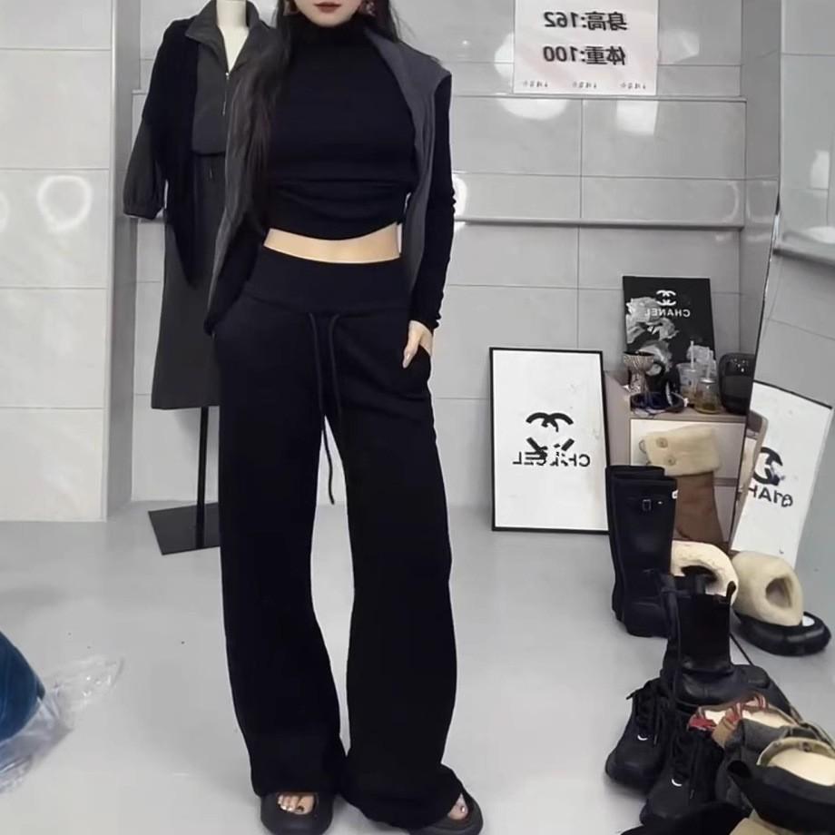 241172 Big Love Meiyuan 2025 Nueva Moda Camiseta Slim Fit Pantalones Rectos de Cintura Alta Color Sólido Estilo Occidental Mujer
