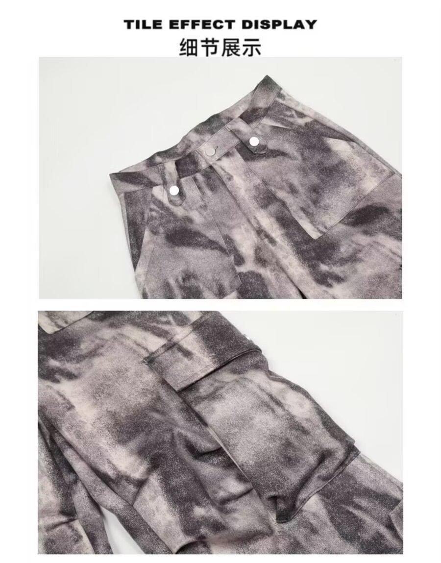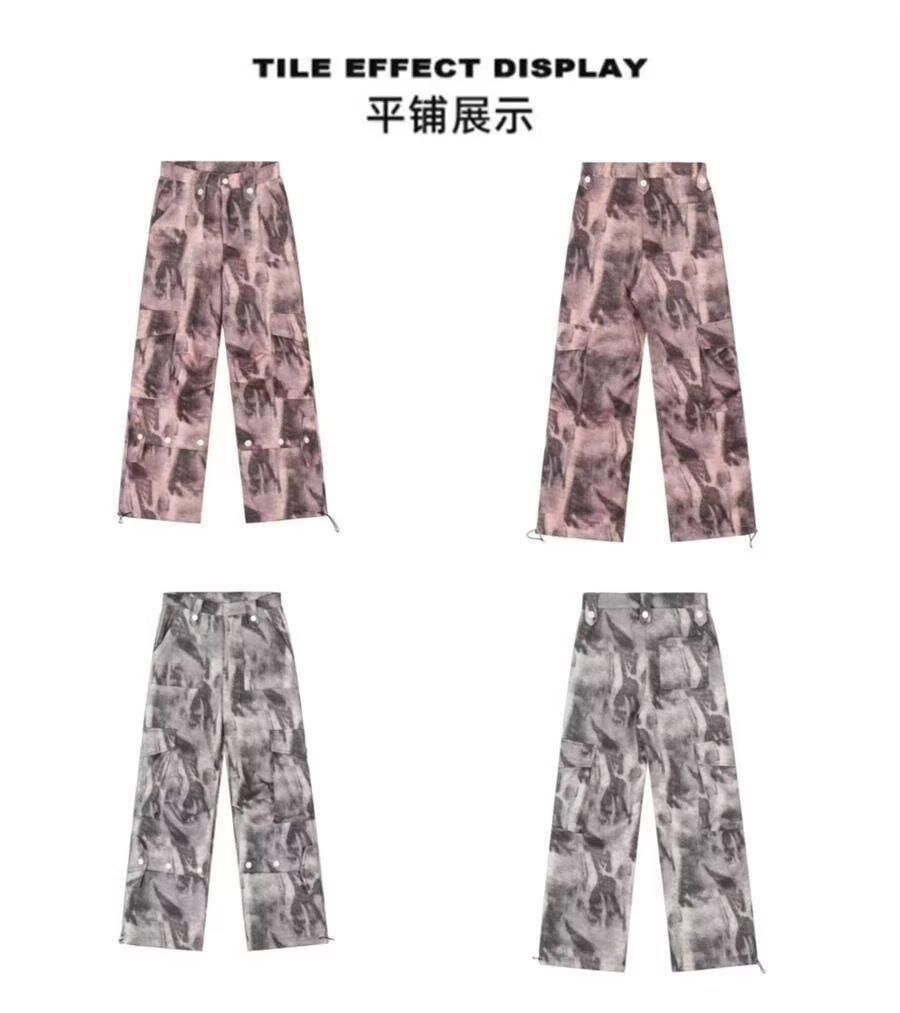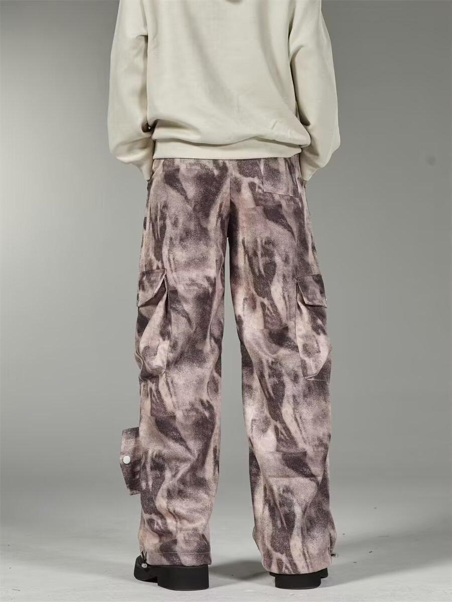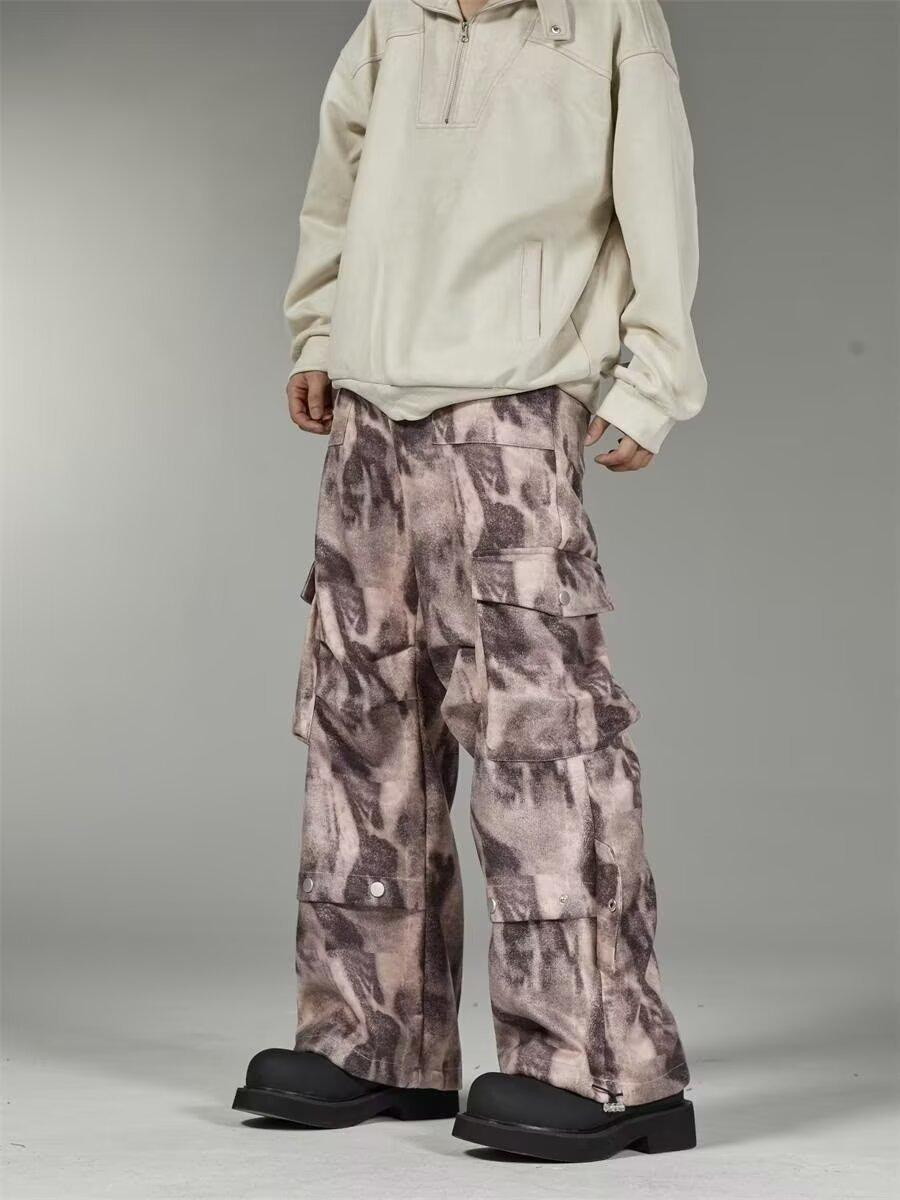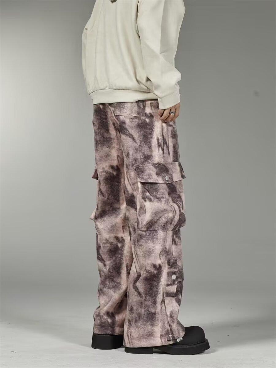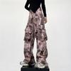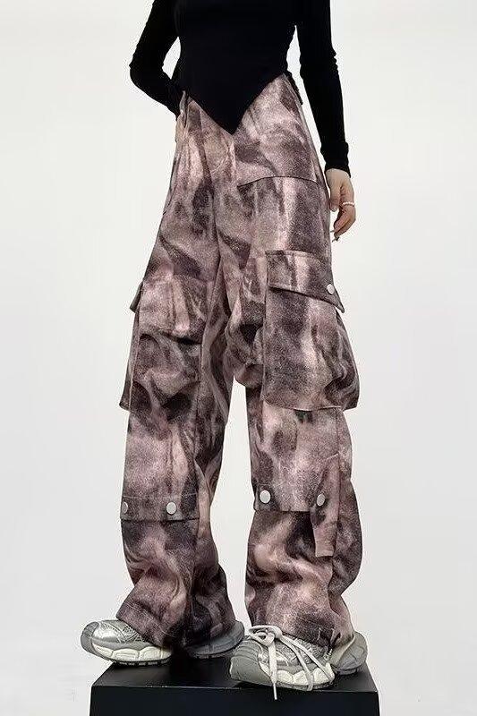 2024 Americano Retro High Street Tie-Dye Otoño Nuevo Pantalón de Bobina Diseño para Mujer Camuflaje Recto Pierna Ancha Primavera y Otoño Largo