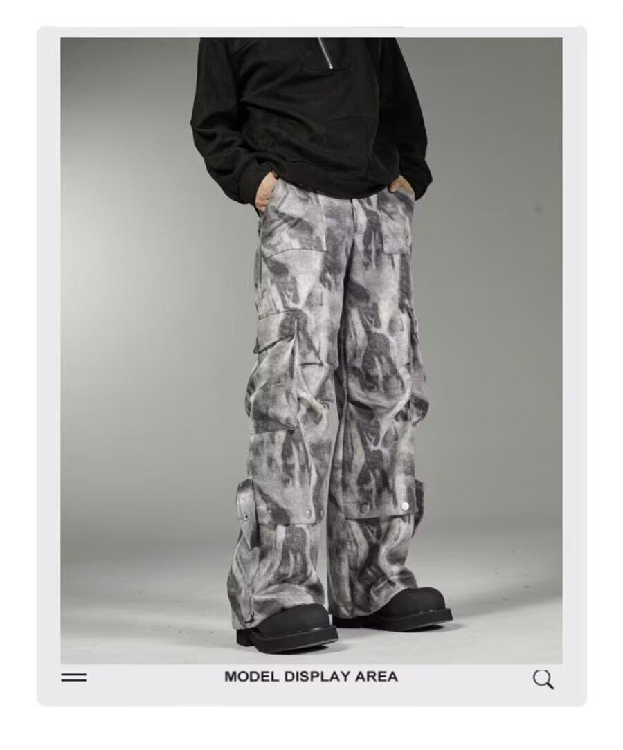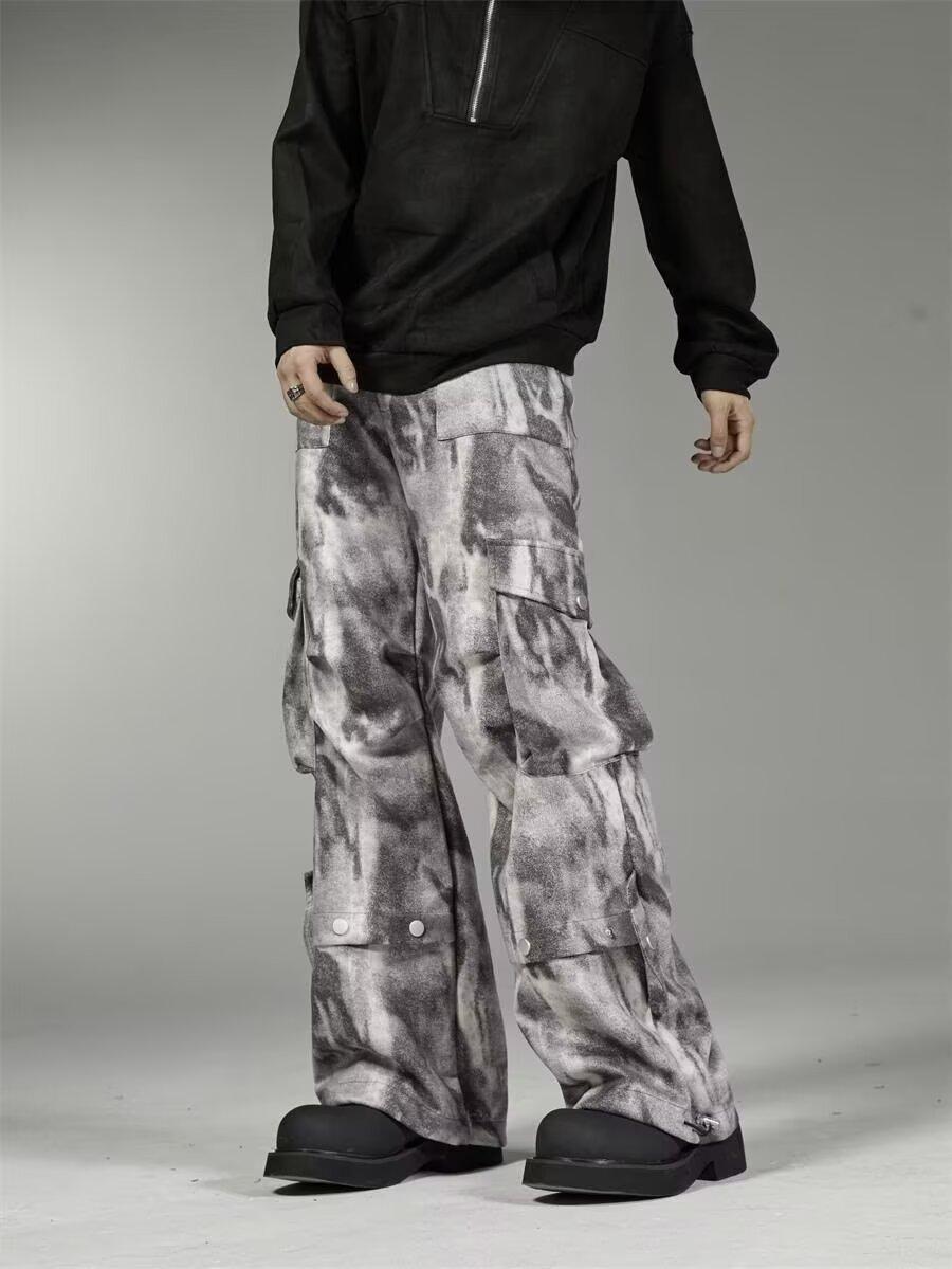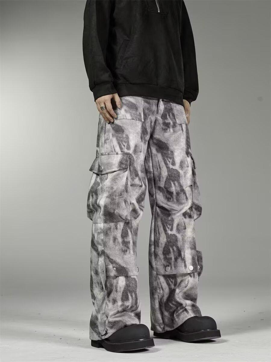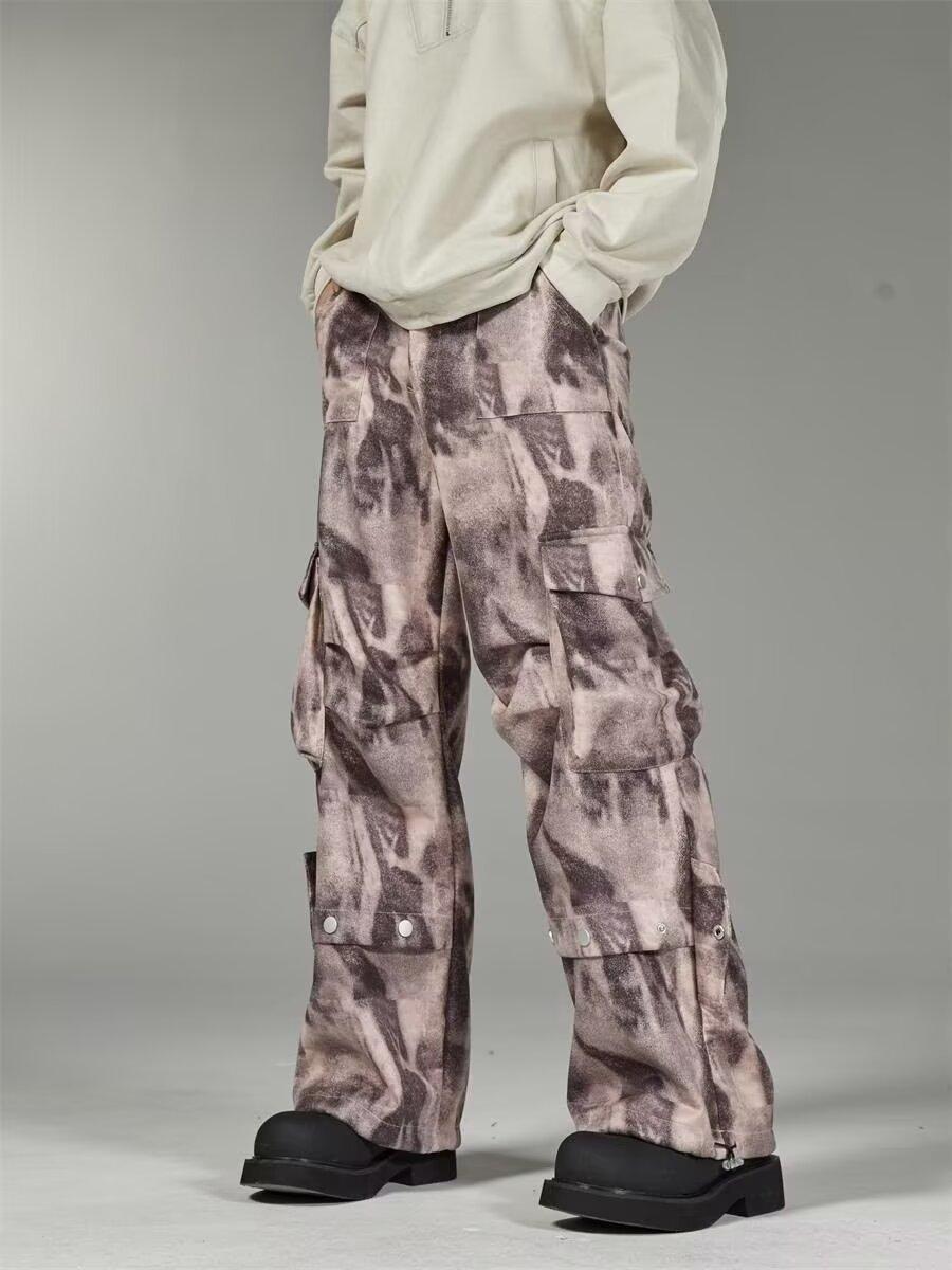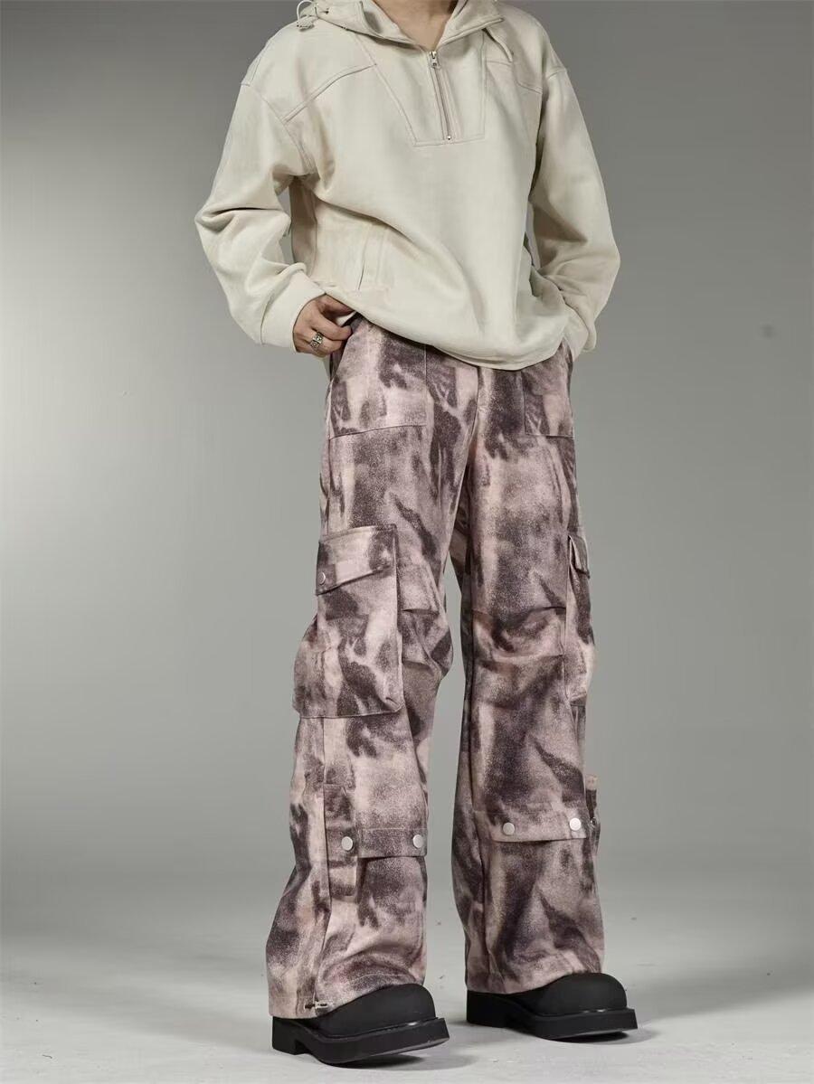 2024 Americano Retro High Street Tie-Dye Otoño Nuevo Pantalón de Bobina Diseño para Mujer Camuflaje Recto Pierna Ancha Primavera y Otoño Largo