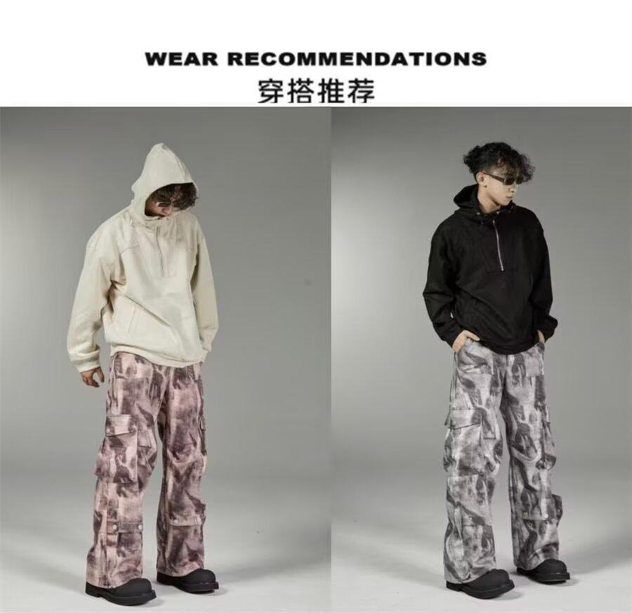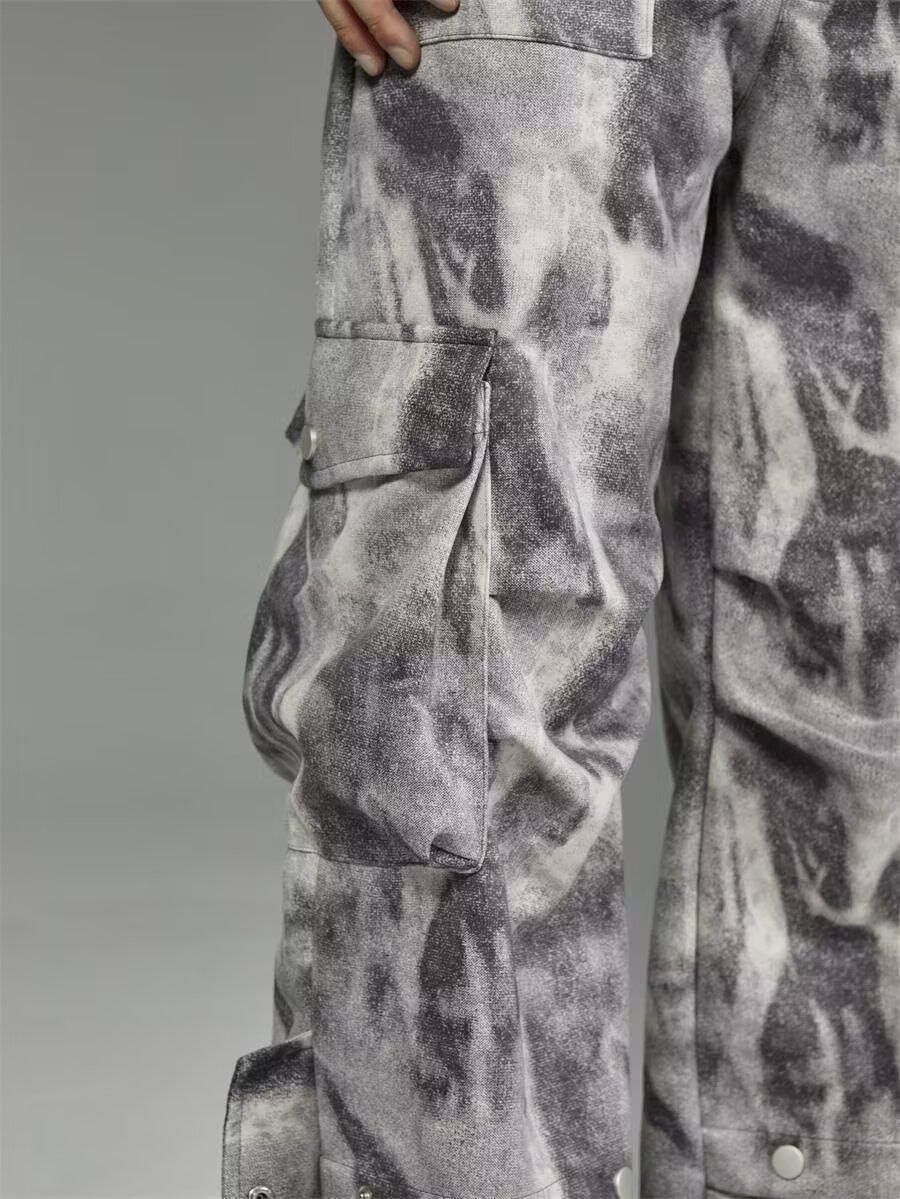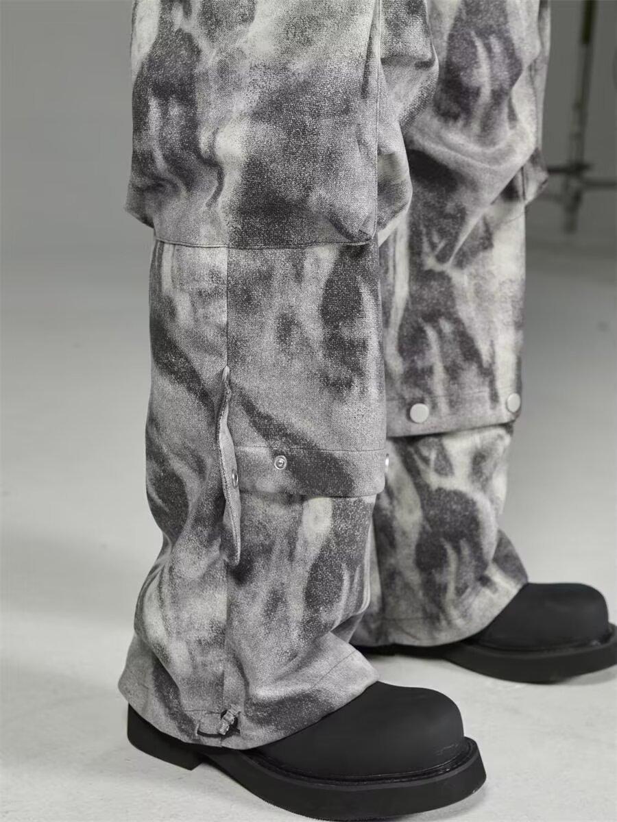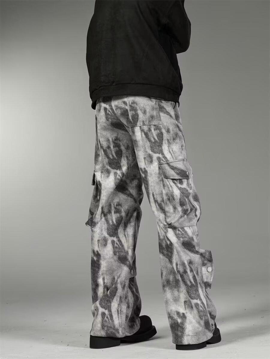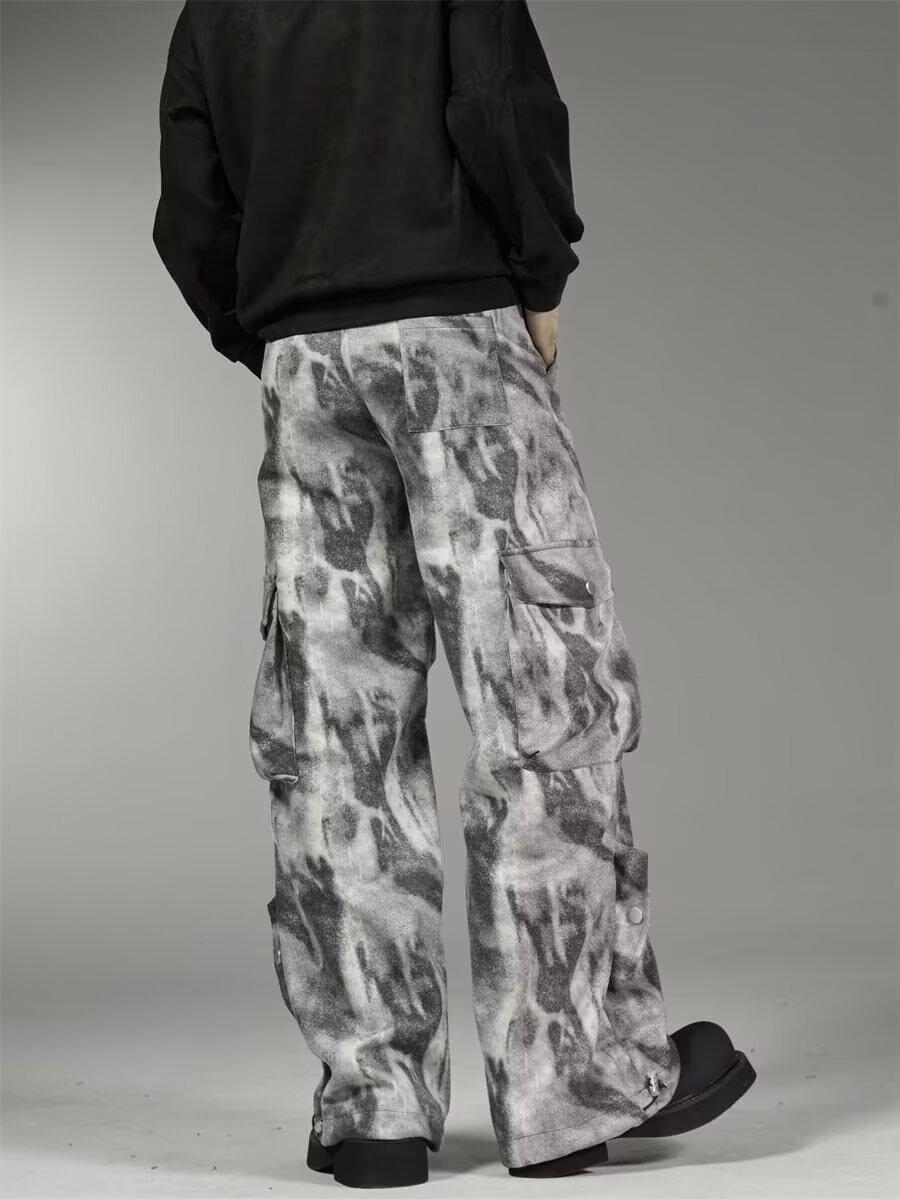 2024 Americano Retro High Street Tie-Dye Otoño Nuevo Pantalón de Bobina Diseño para Mujer Camuflaje Recto Pierna Ancha Primavera y Otoño Largo