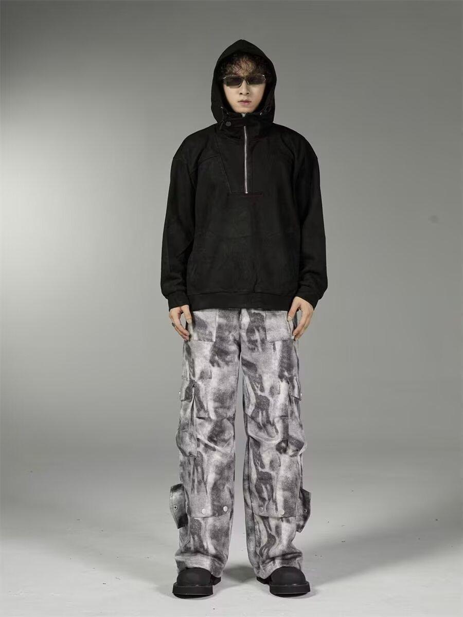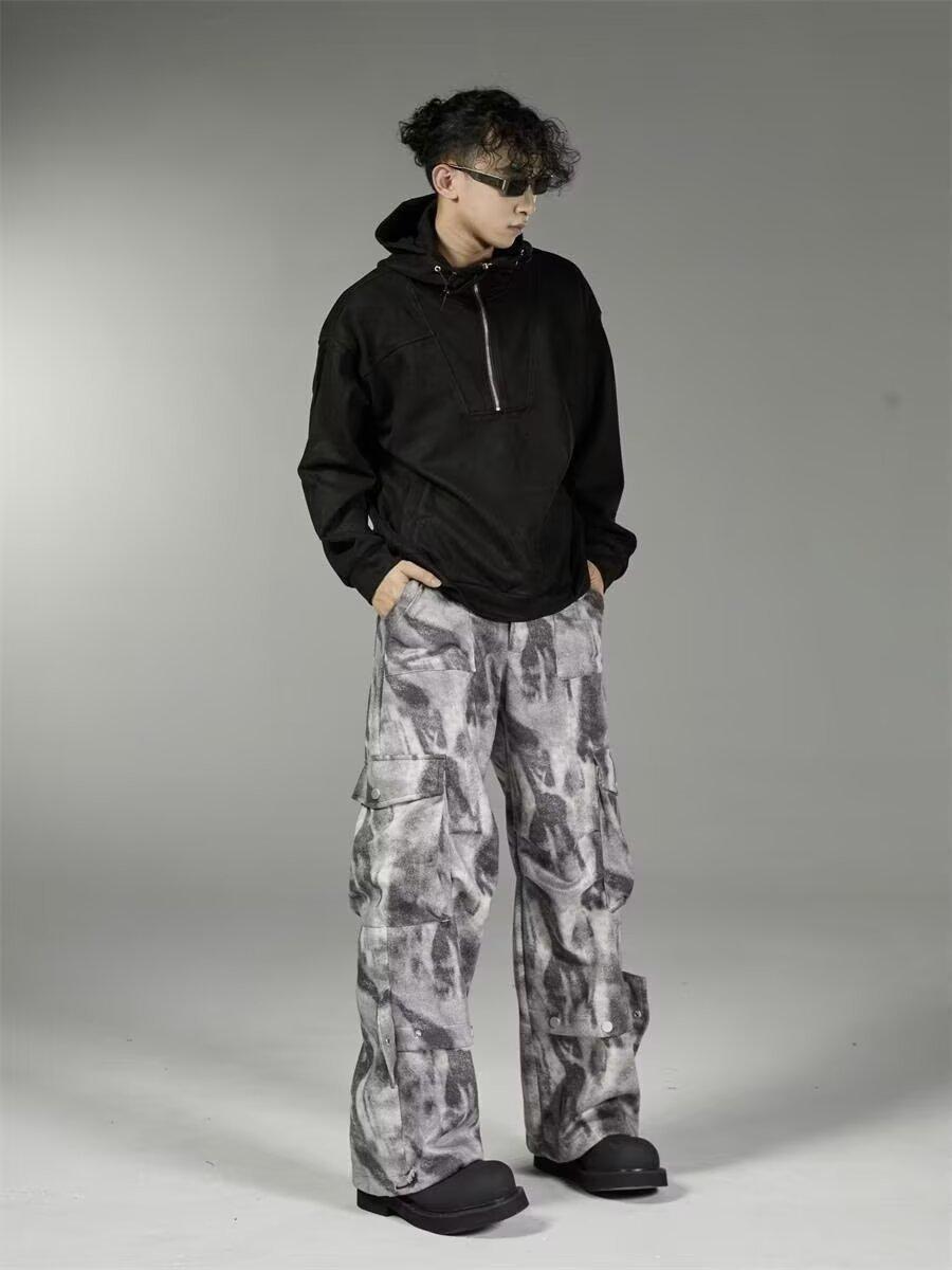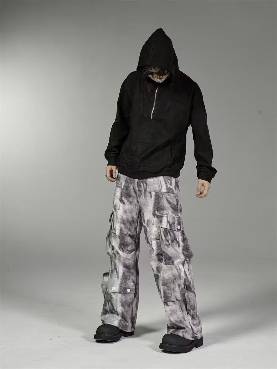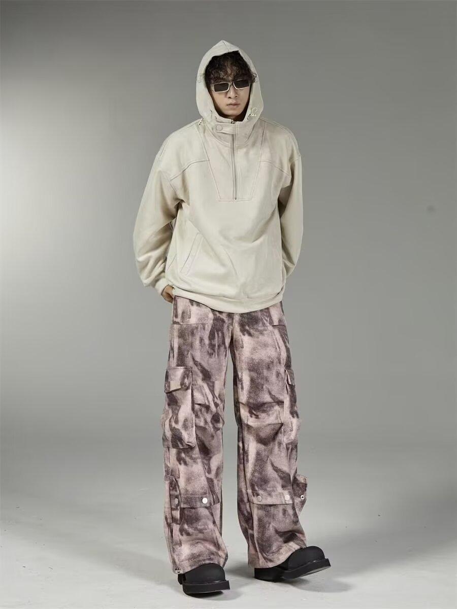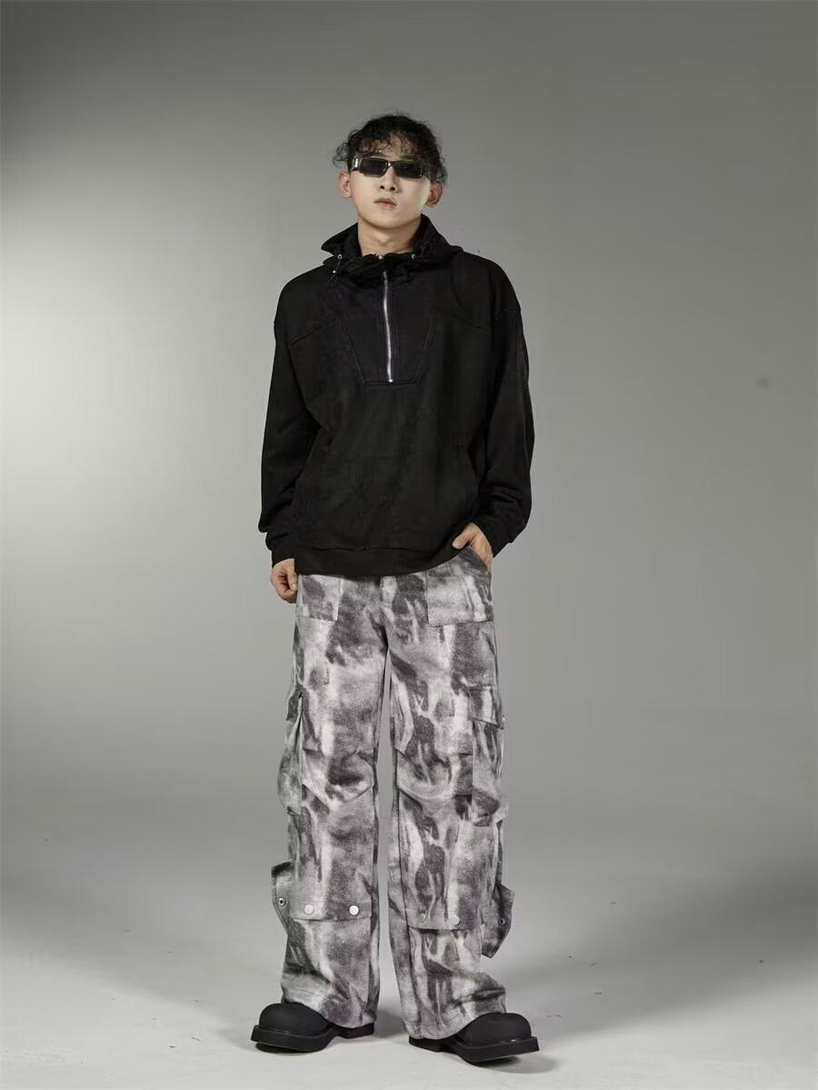 2024 Americano Retro High Street Tie-Dye Otoño Nuevo Pantalón de Bobina Diseño para Mujer Camuflaje Recto Pierna Ancha Primavera y Otoño Largo