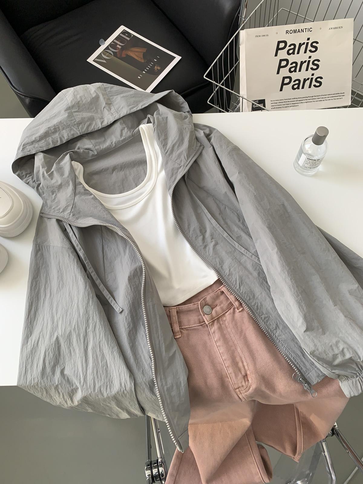 Ropa Casual con Capucha Casual para Exterior Protección Solar Primavera y Verano Estilo Deportivo Cortavientos Ligero Chaqueta con Cremallera Ropa de Protección Solar Pequeña