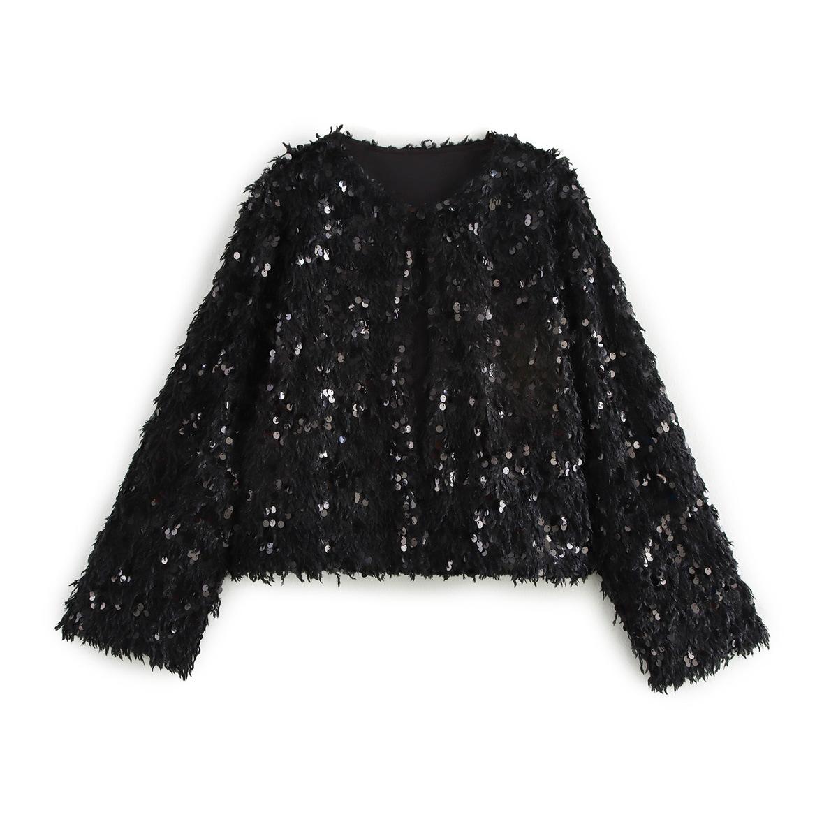 Abrigo elegante de manga larga con cuello redondo para mujer europea y americana de comercio exterior transfronterizo de Amazon, otoño e invierno de 2024