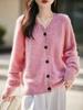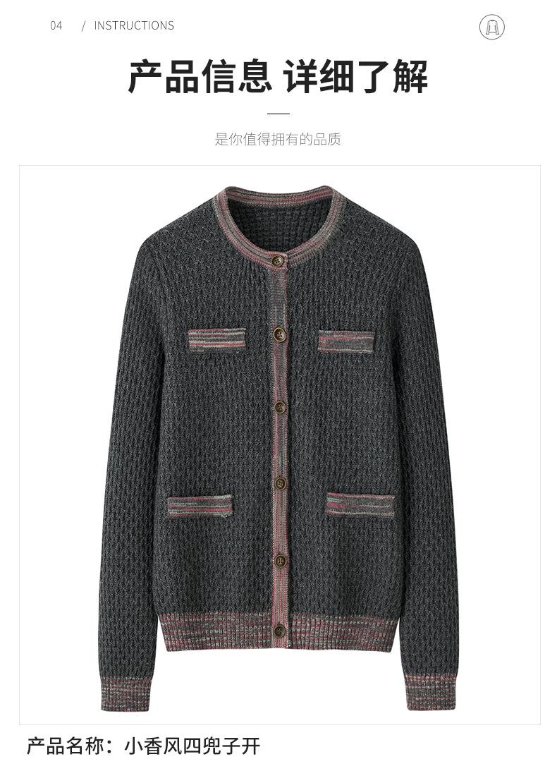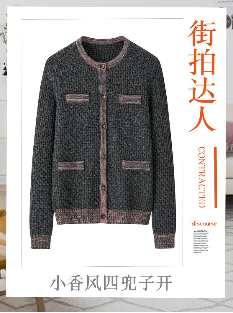 Suéter Invierno Mujer Cachemira Tejido de Punto Suelto Elegante Casual Tejido de Punto Estilo Pequeño Fragante Cárdigan de Cuatro Bolsillos Ropa Exterior Venta al por Mayor
