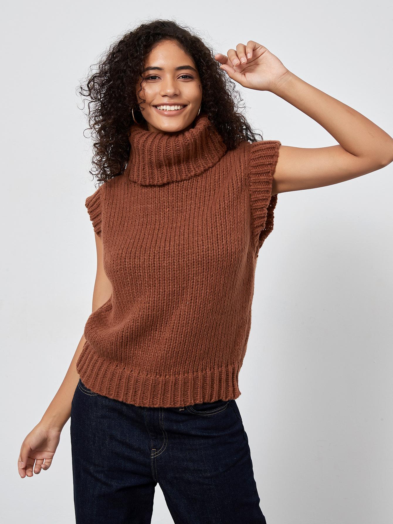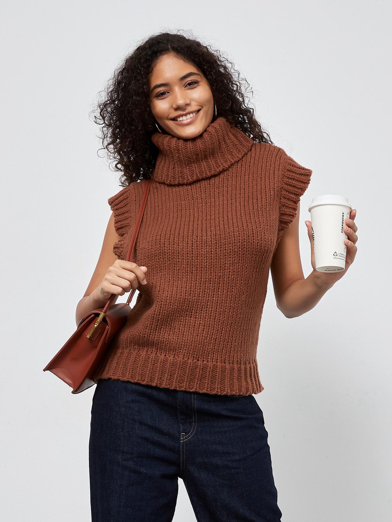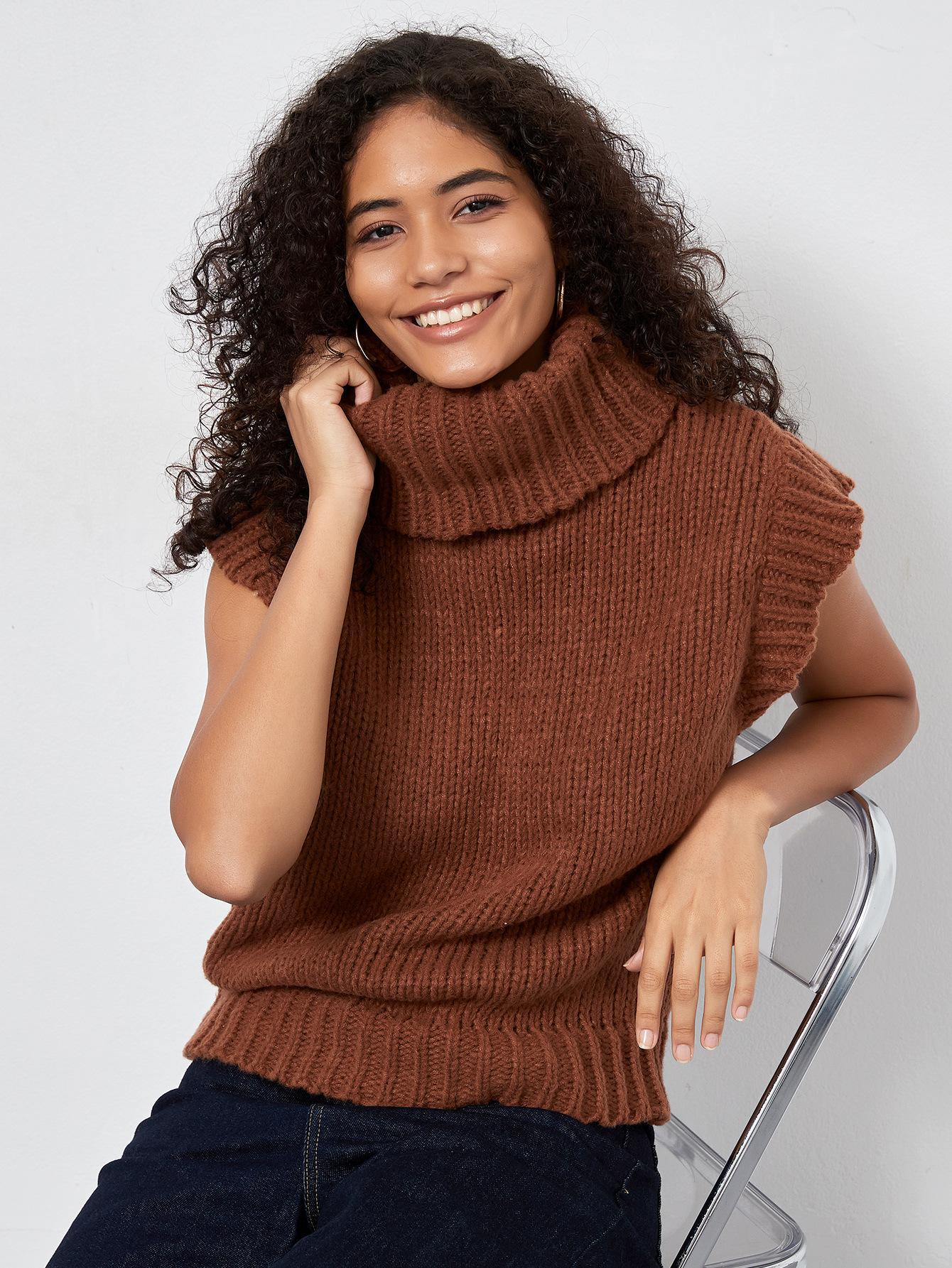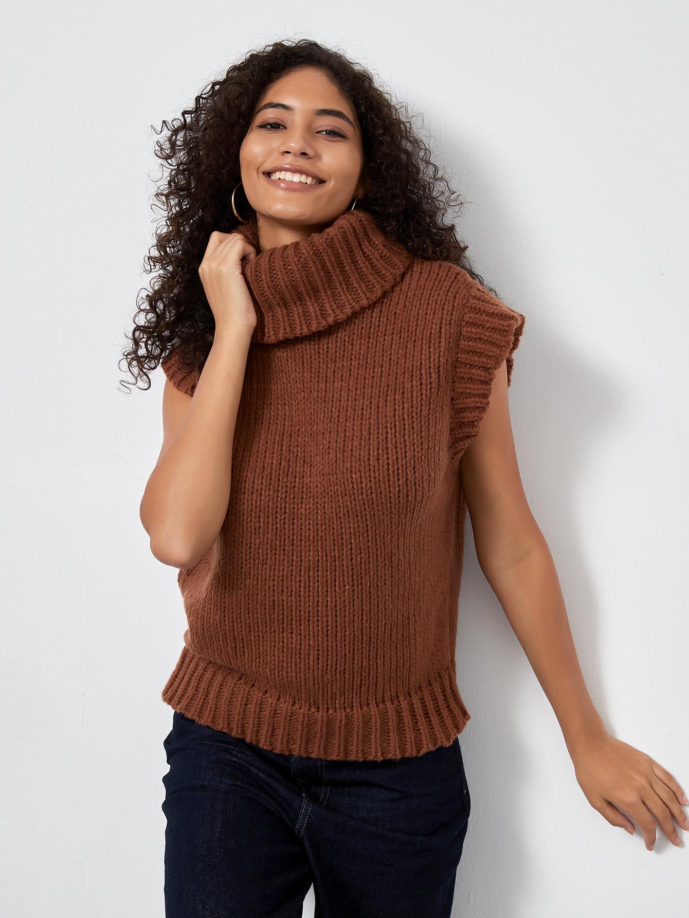 Ropa de mujer transfronteriza al por mayor Moda estilo europeo y americano Chaleco de punto de cuello alto Otoño e invierno nuevo Suéter sin mangas Top interior