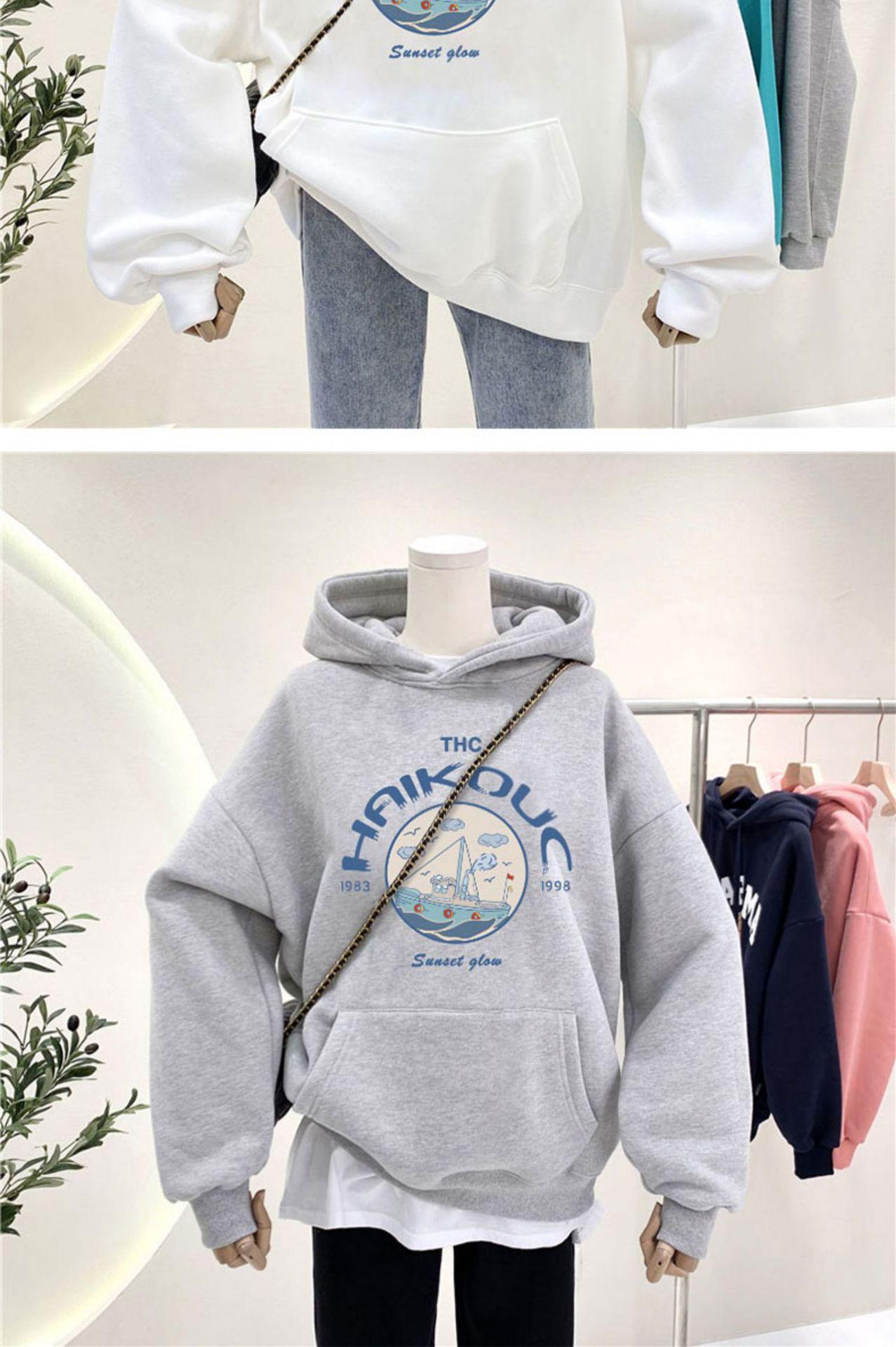 Otoño e Invierno Nuevo 2025 Sudadera de Algodón con Capucha Aterciopelada Engrosada para Mujer Holgada Estilo Coreano Largo Medio Casual para Pareja