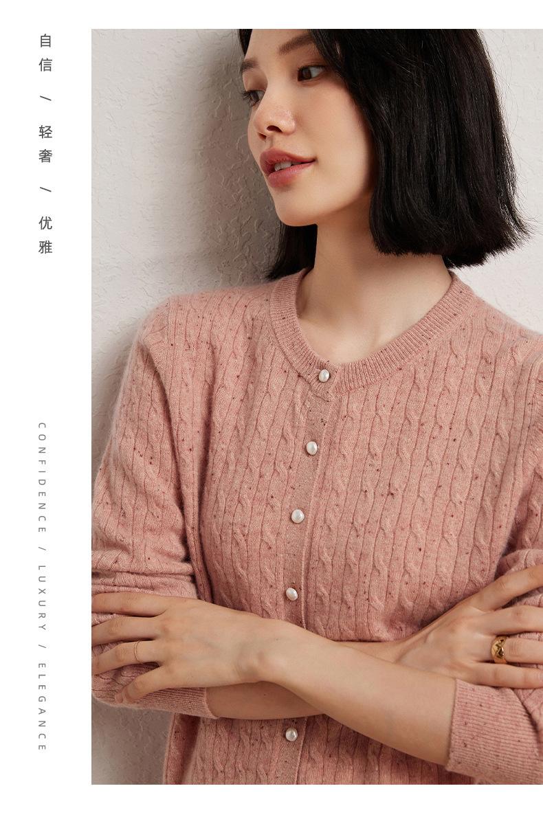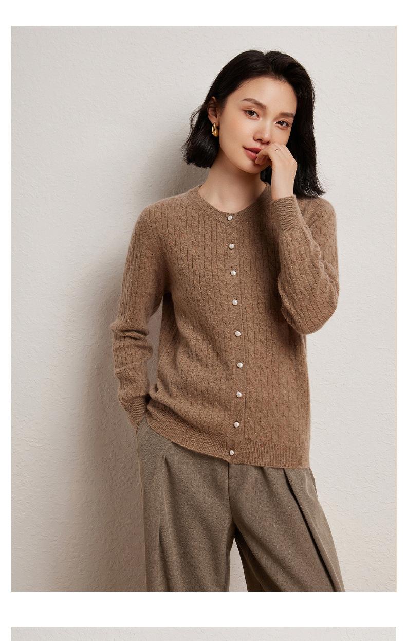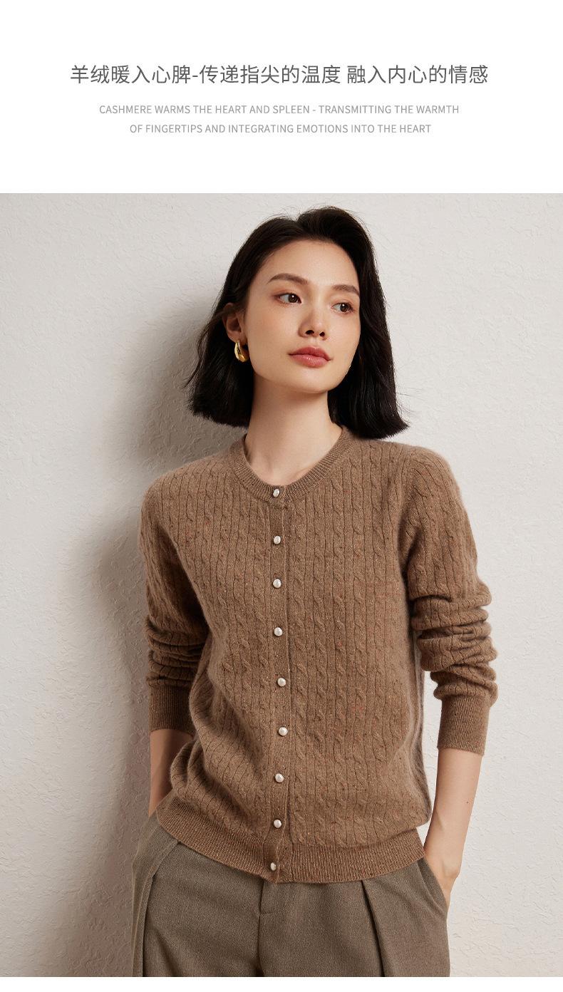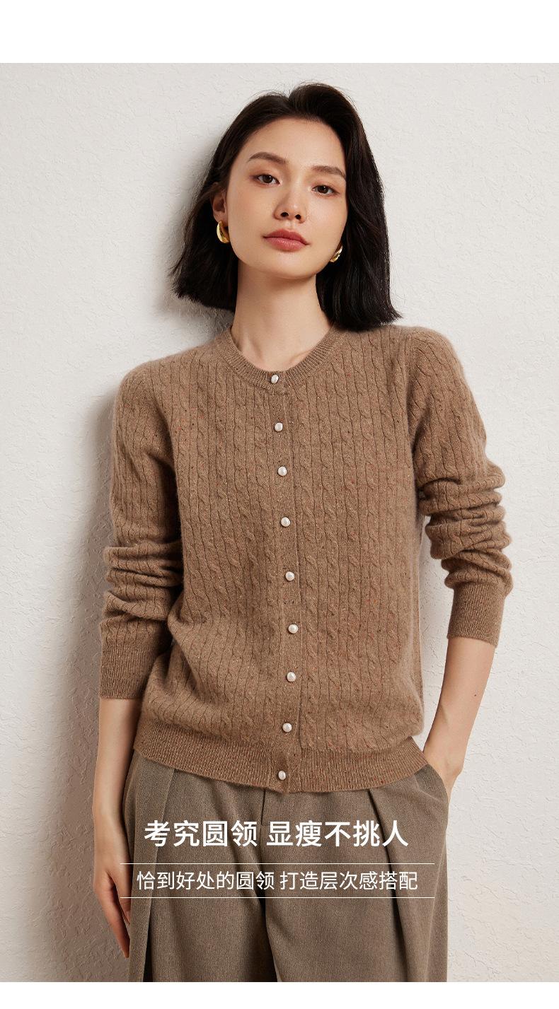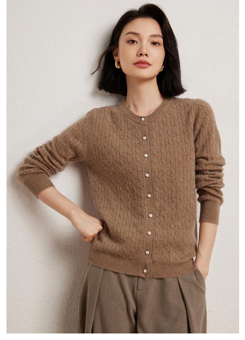 Sentido del Diseño Moda Cárdigan de Cachemira de Cuello Redondo para Mujer Abrigo Suave con Trenzas Top de Punto de Manga Larga Suéter con Punto de Color