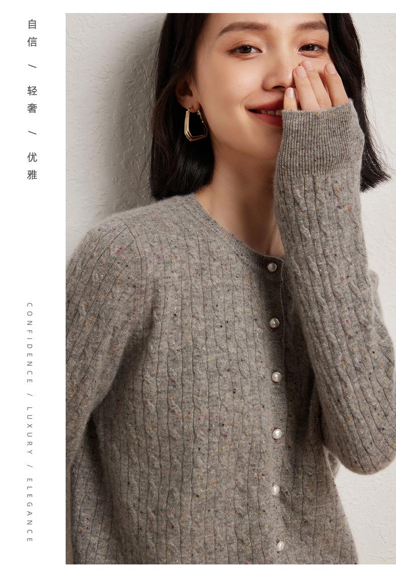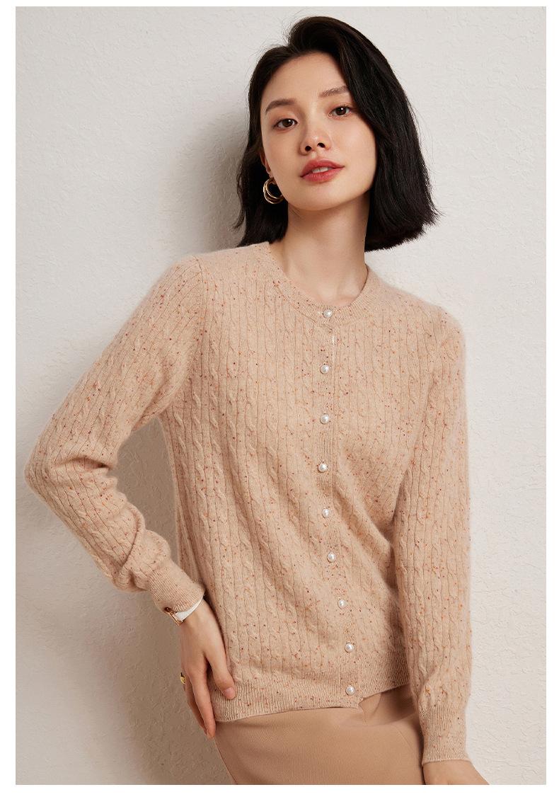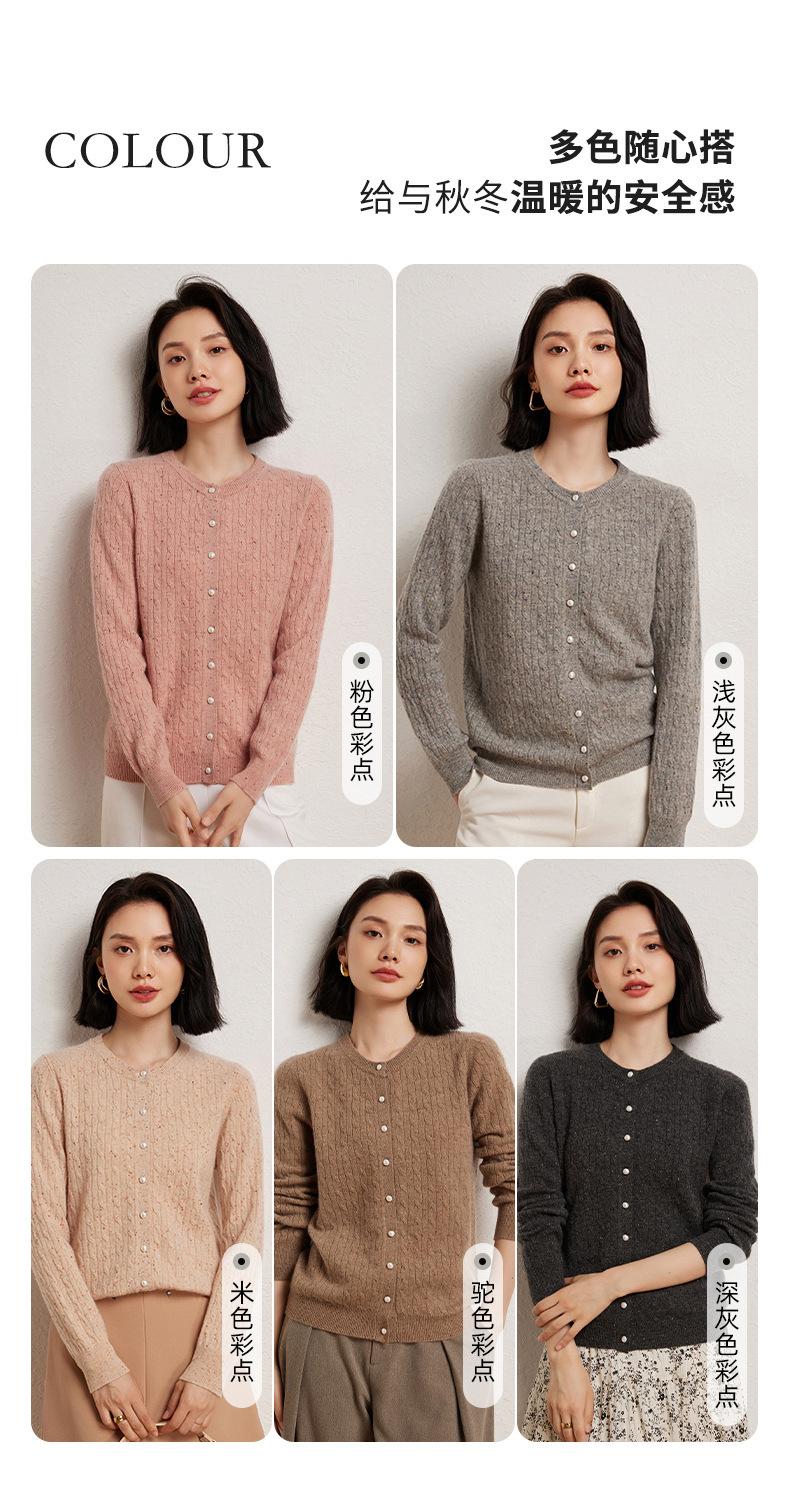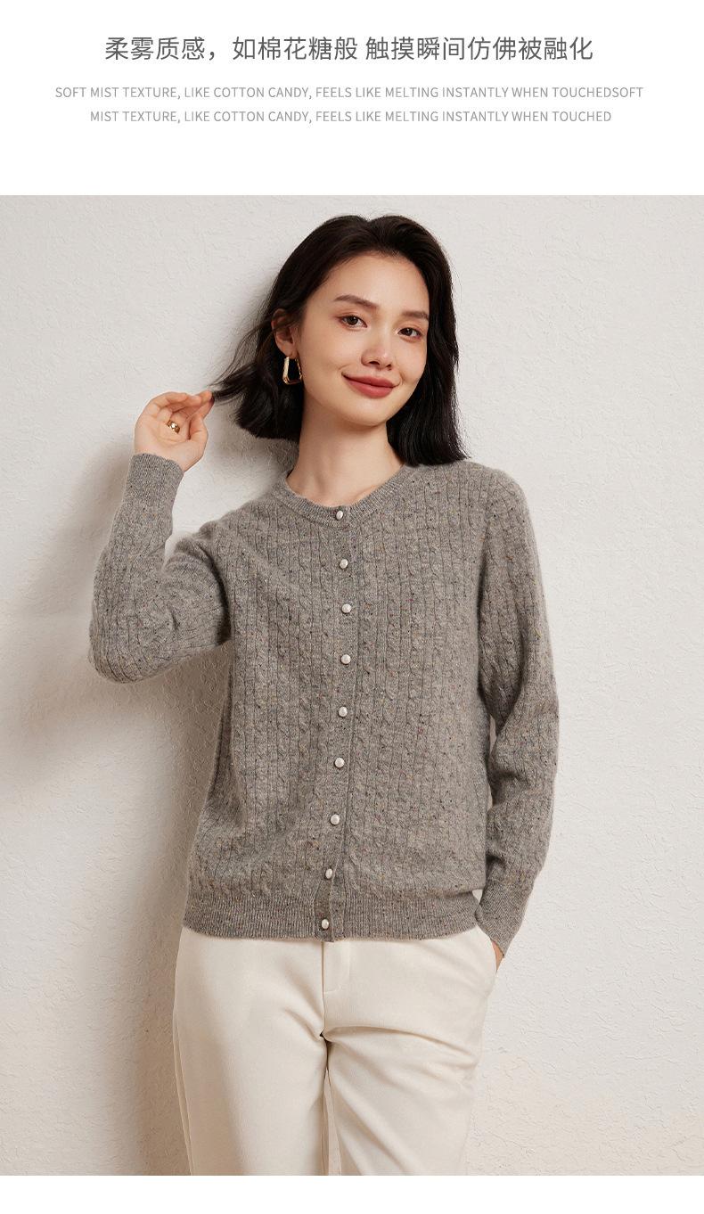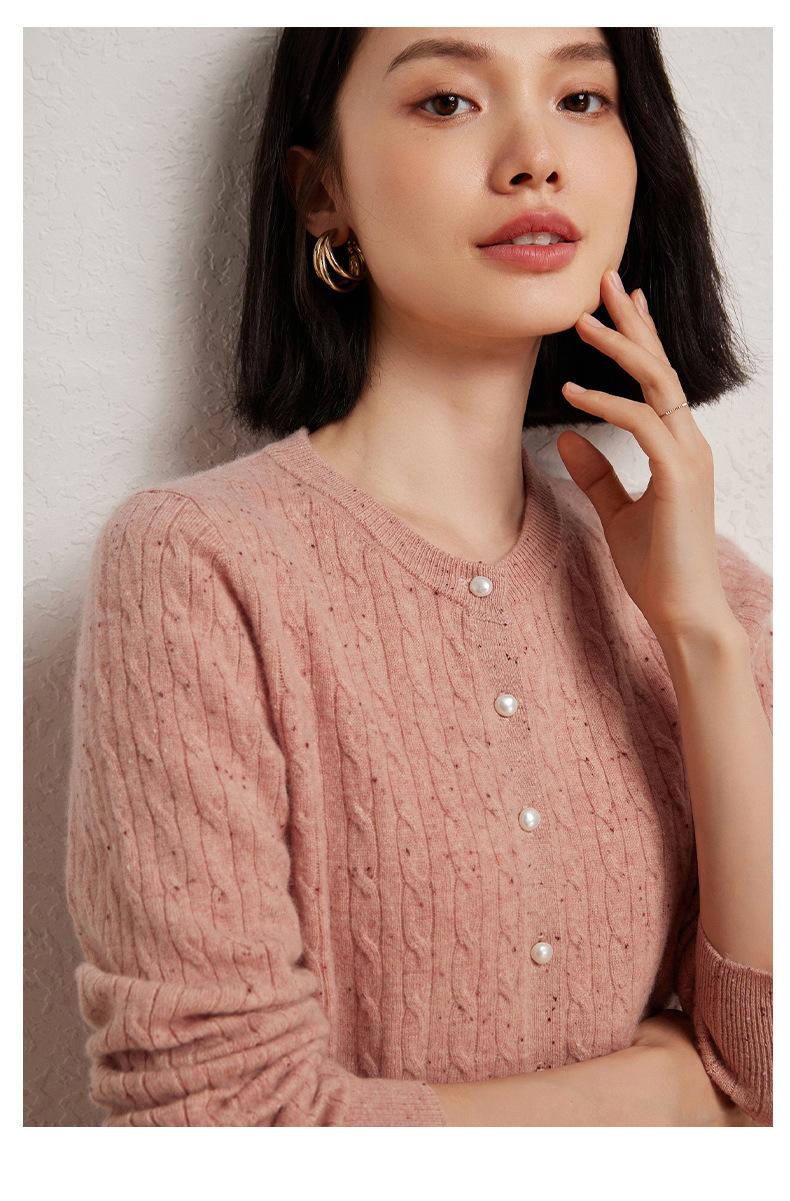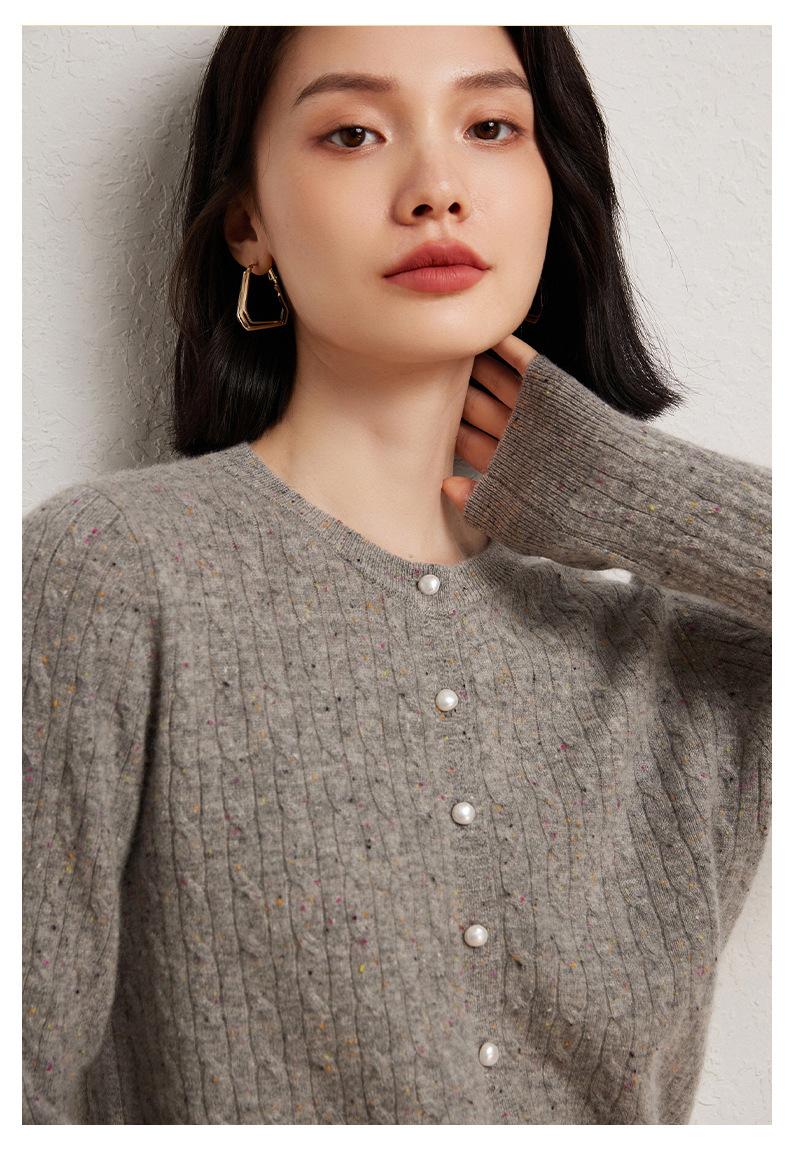 Sentido del Diseño Moda Cárdigan de Cachemira de Cuello Redondo para Mujer Abrigo Suave con Trenzas Top de Punto de Manga Larga Suéter con Punto de Color