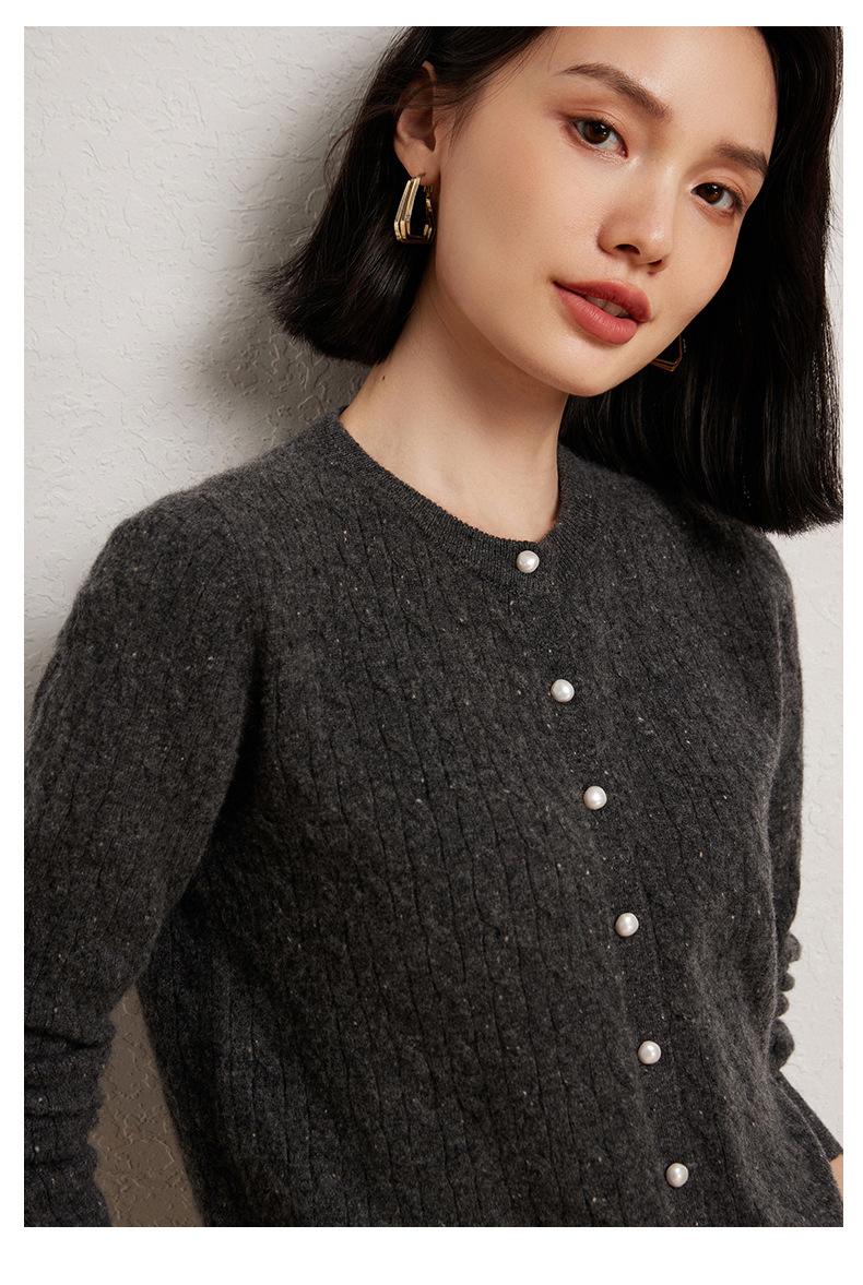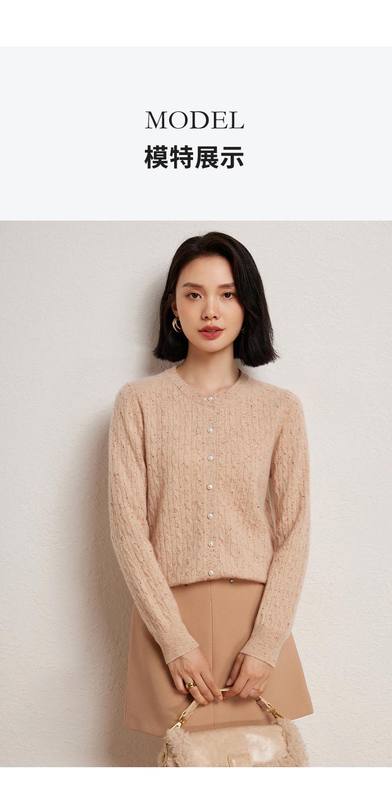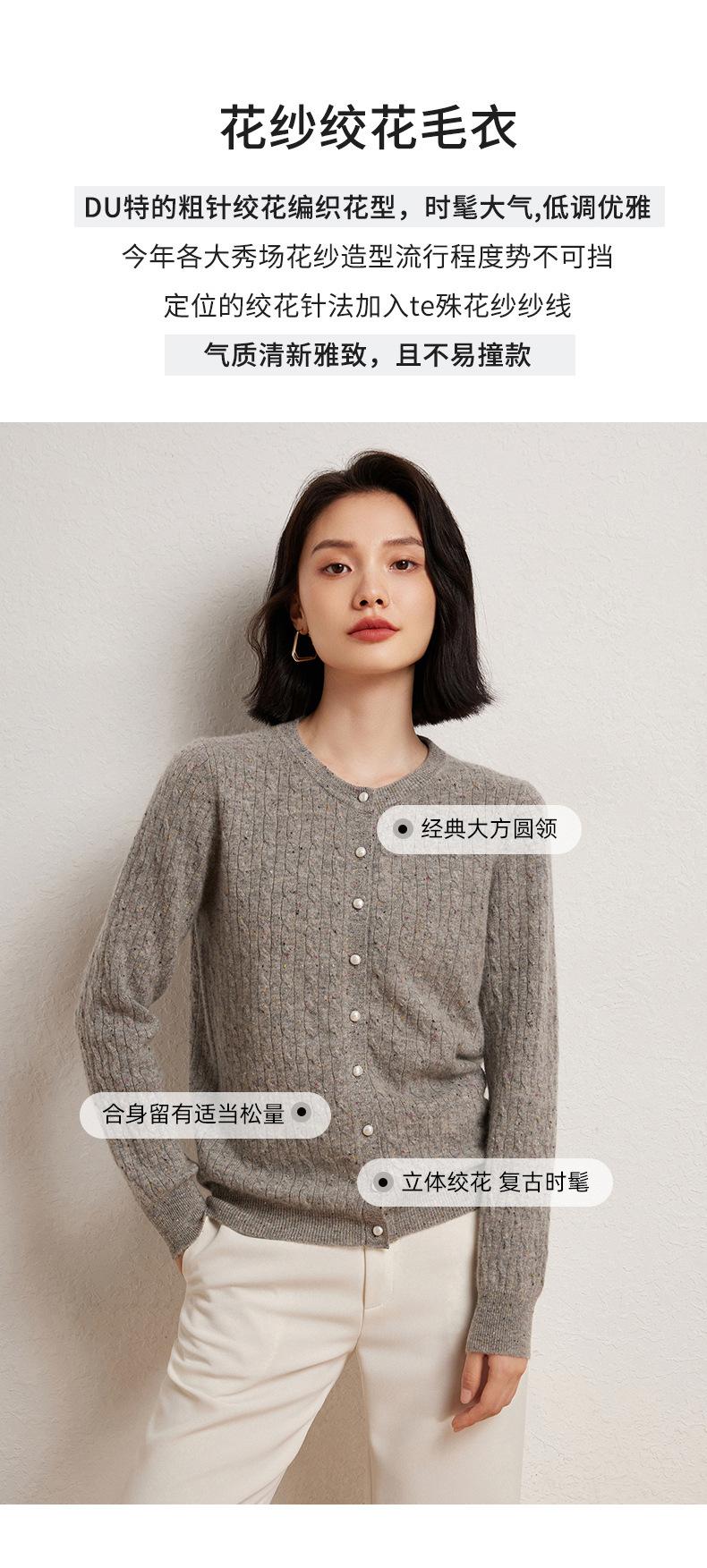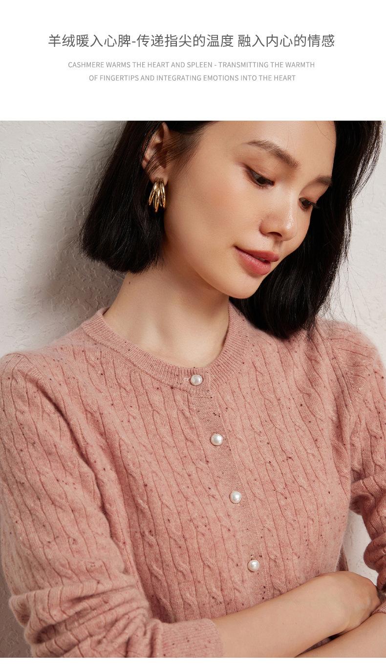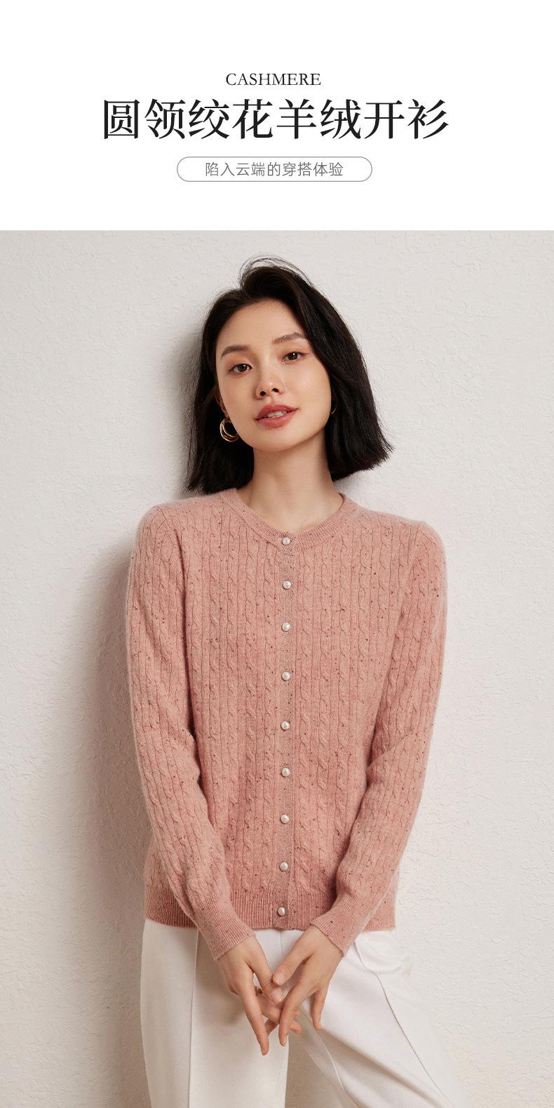 Sentido del Diseño Moda Cárdigan de Cachemira de Cuello Redondo para Mujer Abrigo Suave con Trenzas Top de Punto de Manga Larga Suéter con Punto de Color