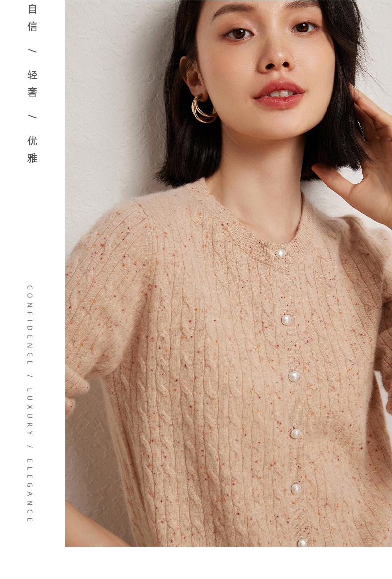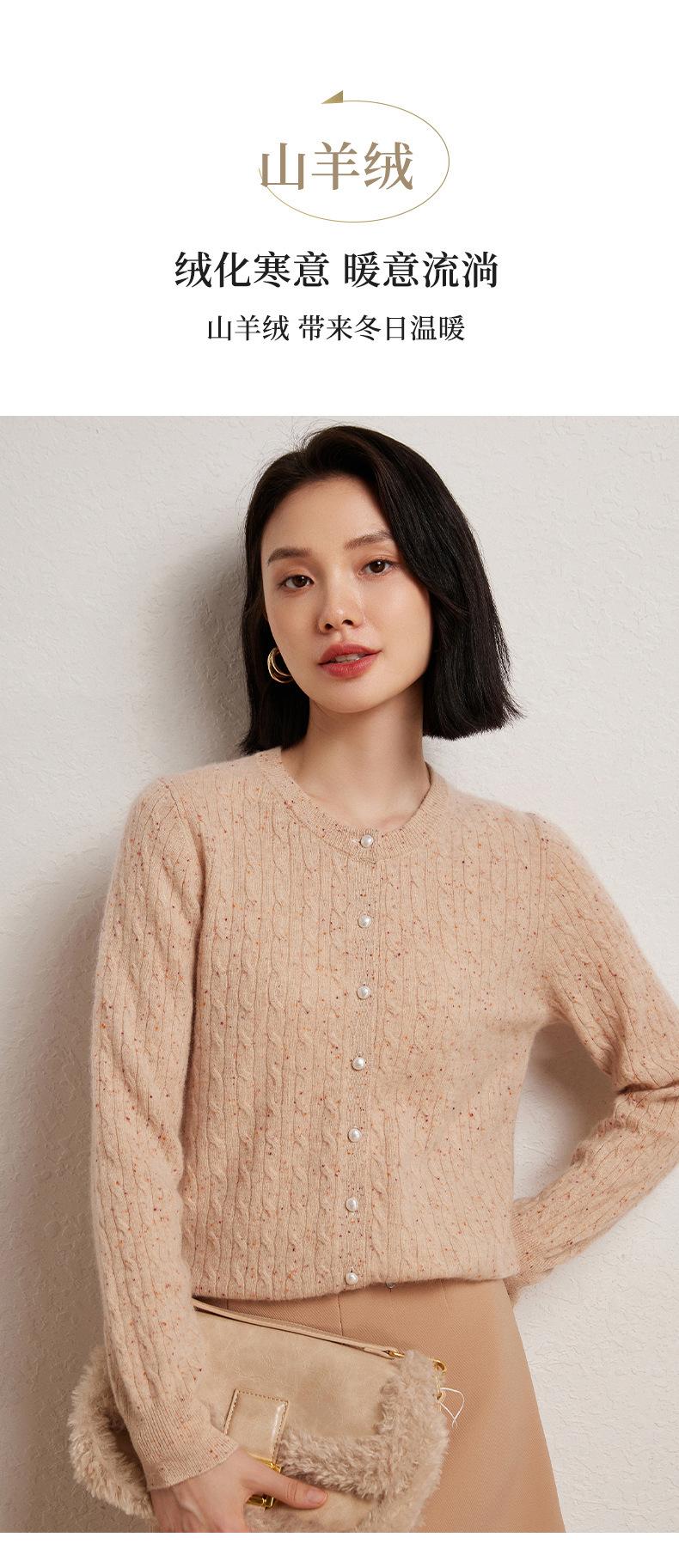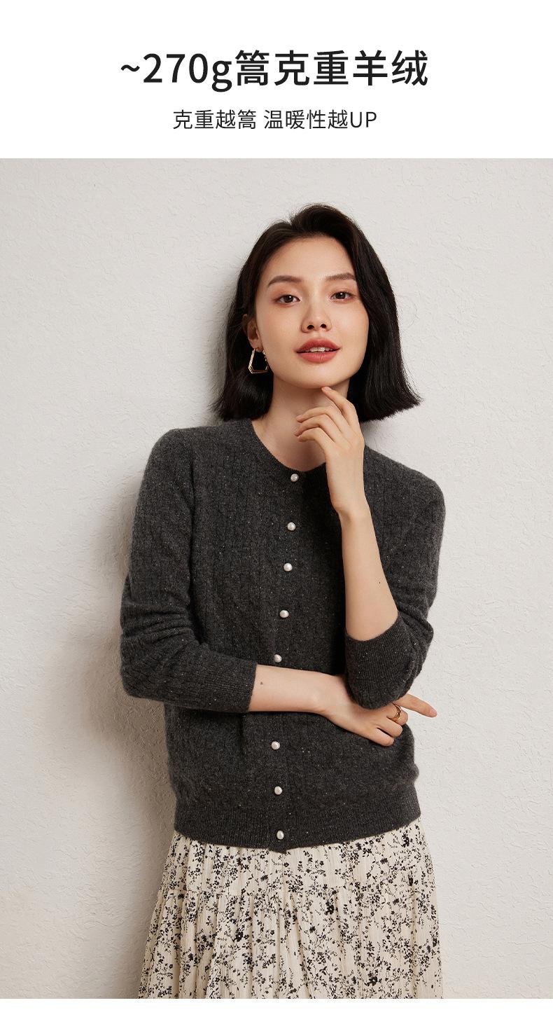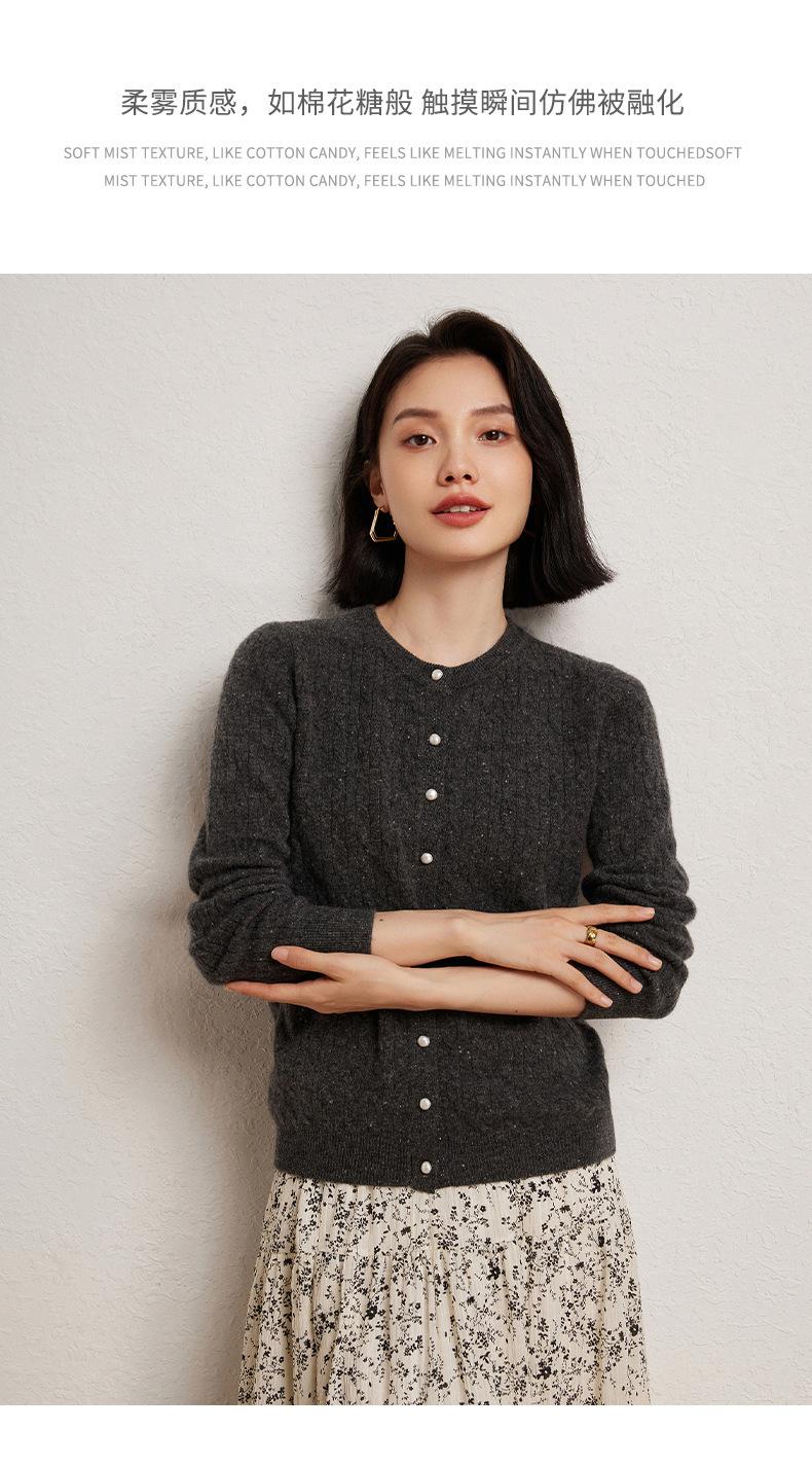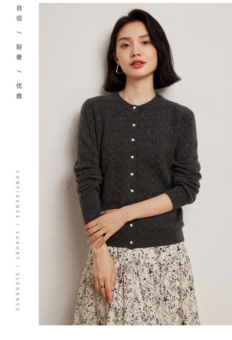 Sentido del Diseño Moda Cárdigan de Cachemira de Cuello Redondo para Mujer Abrigo Suave con Trenzas Top de Punto de Manga Larga Suéter con Punto de Color