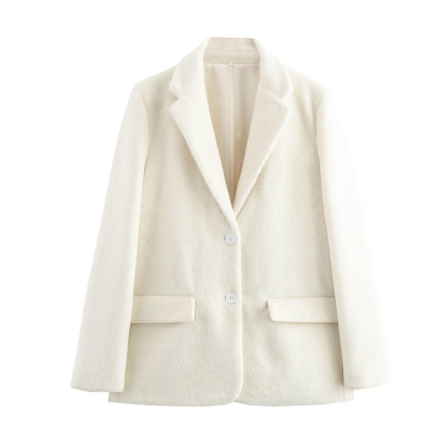Chaqueta de traje con efecto de piel artificial de nuevo temperamento para mujer europea y americana de comercio exterior transfronterizo de Amazon, otoño e invierno de 2024