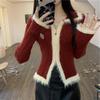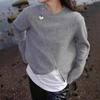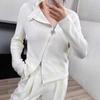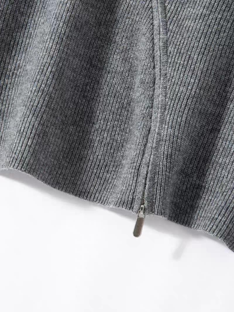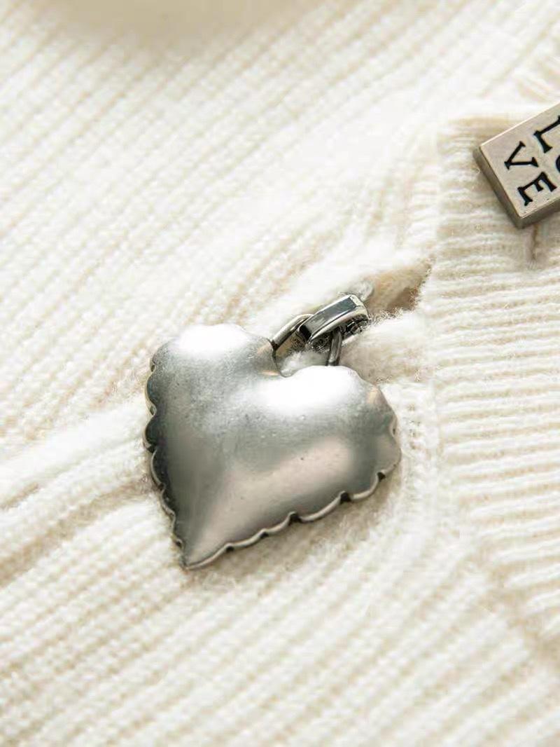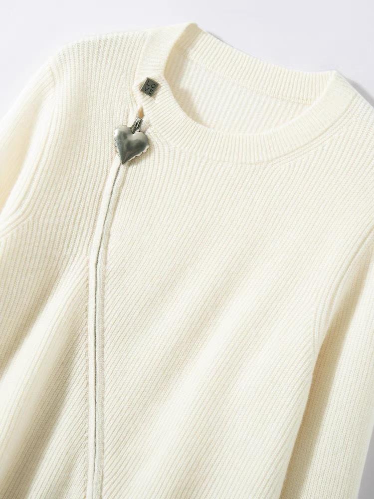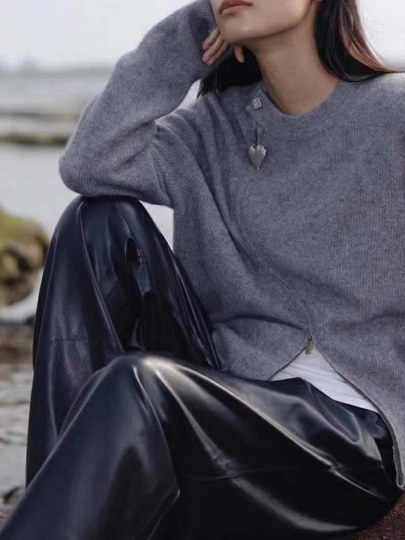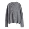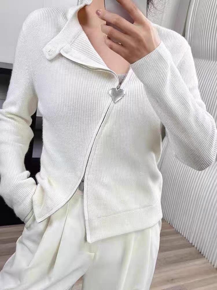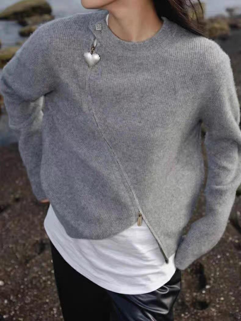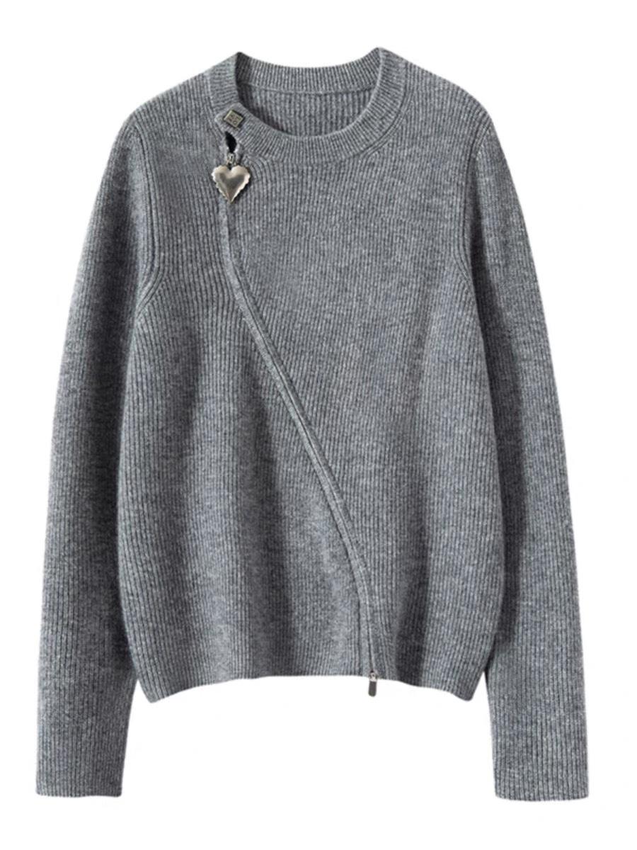 Otoño e Invierno Nuevo Cárdigan de Punto Grueso Holgado de Cuello Redondo para Mujer Amor Metálico Cremallera Oblicua Manga Larga Cárdigan Elegante para Mujer