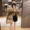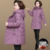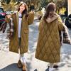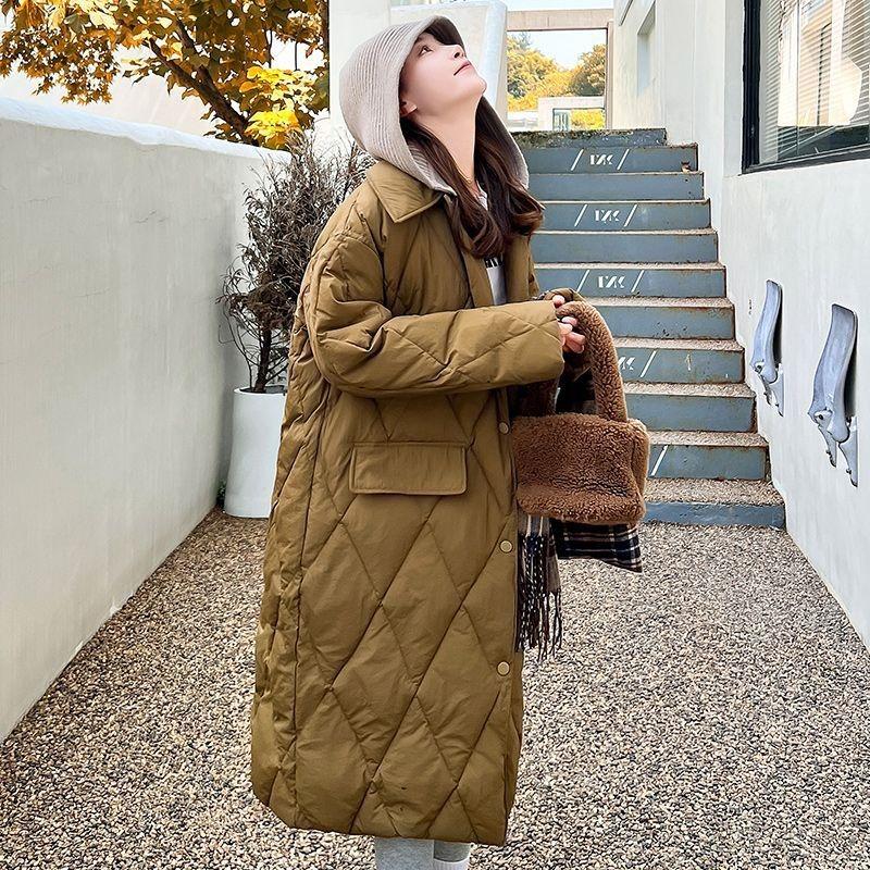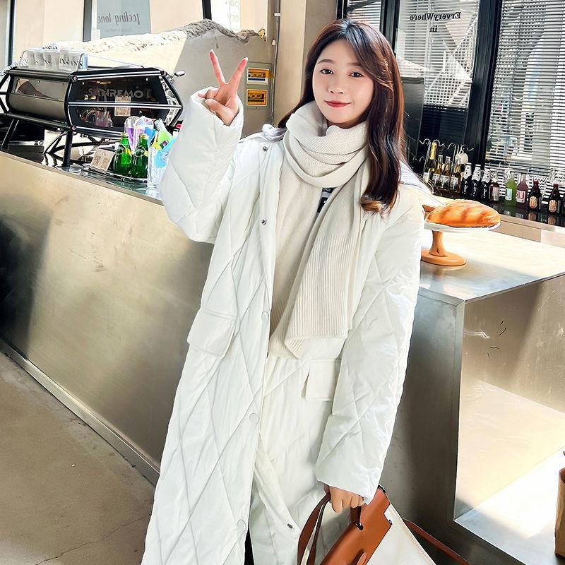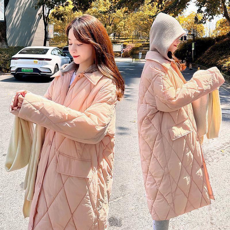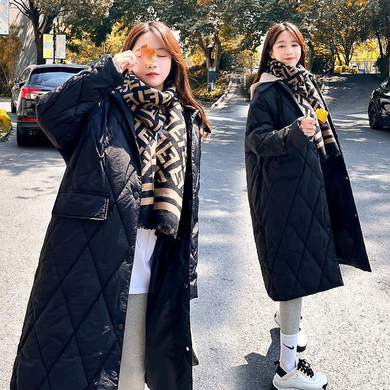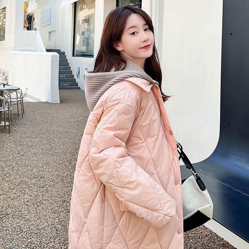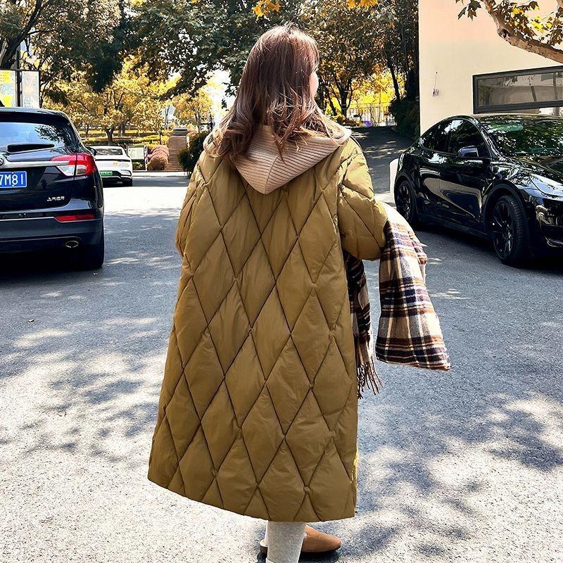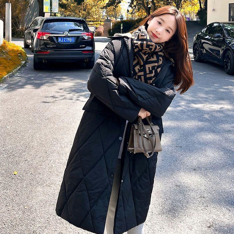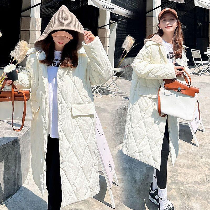 Chaqueta acolchada de algodón Lingge para mujer, de longitud media, invierno 2024, talla grande, estilo coreano, gorro de punto hasta la rodilla, abrigo largo acolchado de algodón