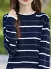 Camisa de punto de manga larga a rayas azules y blancas de comercio exterior para mujer de principios de otoño 2024, nueva moda elegante y cómoda parte superior interior