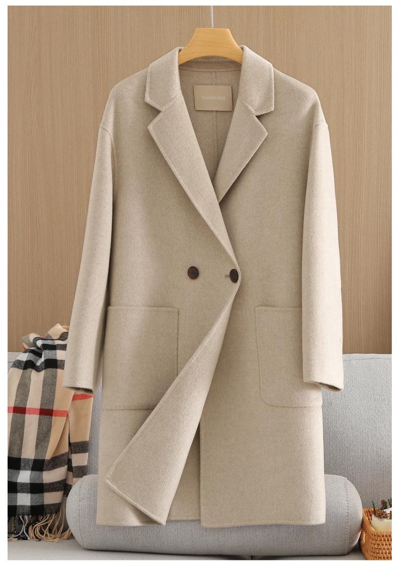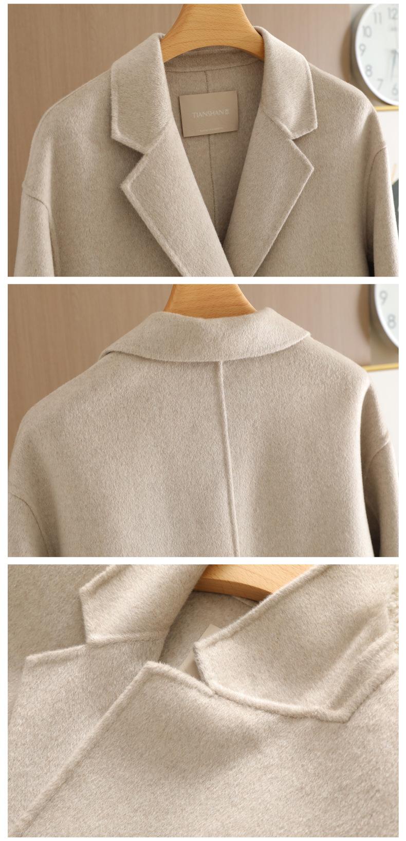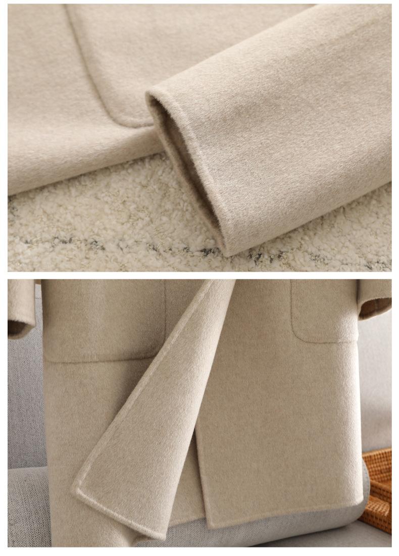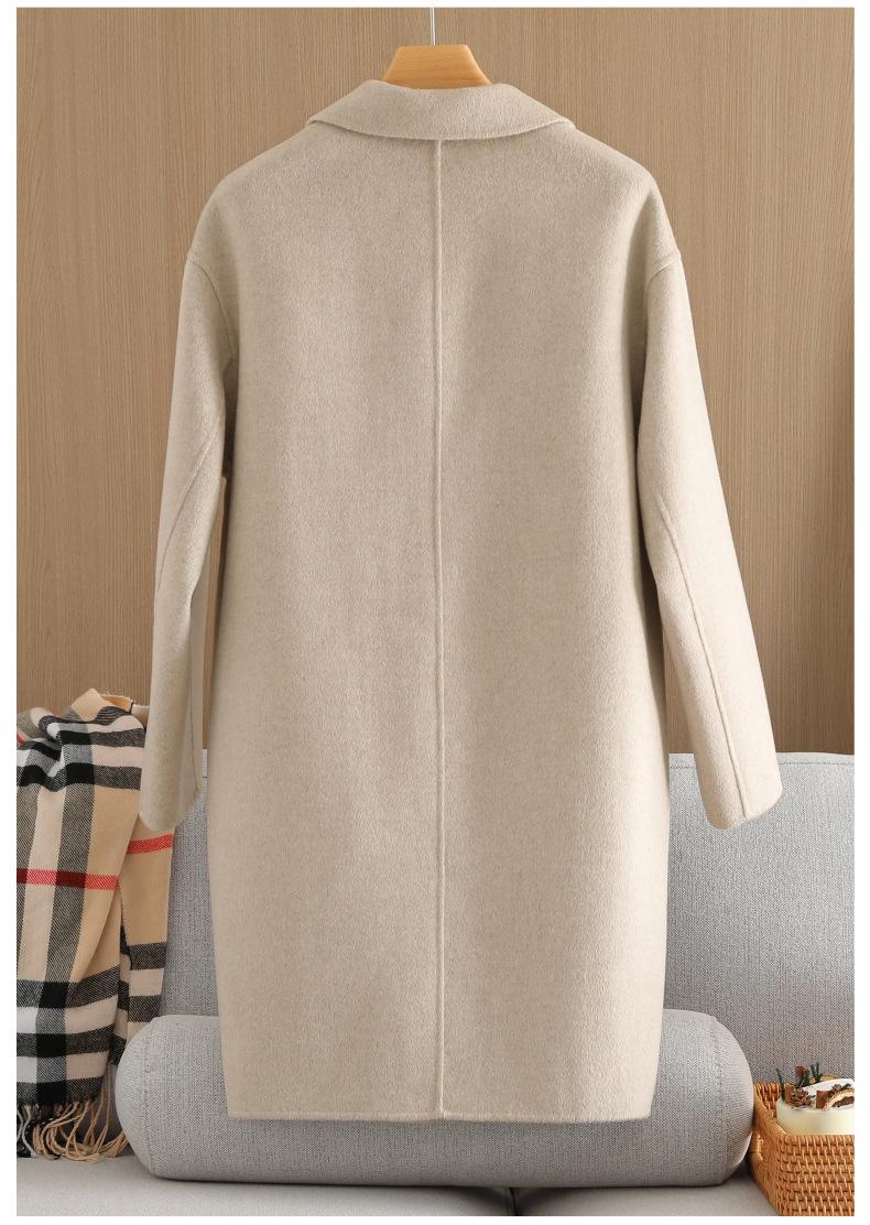 Abrigo de cachemira de otoño e invierno 2024, elegante abrigo de terciopelo puro para mujer, cuello de traje, largo medio, 100 % cachemira.