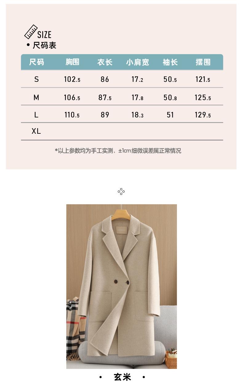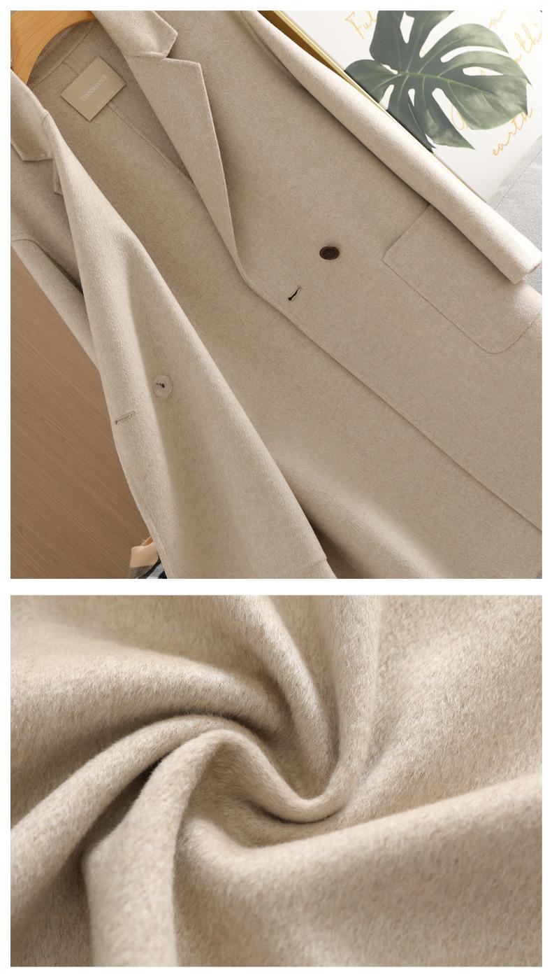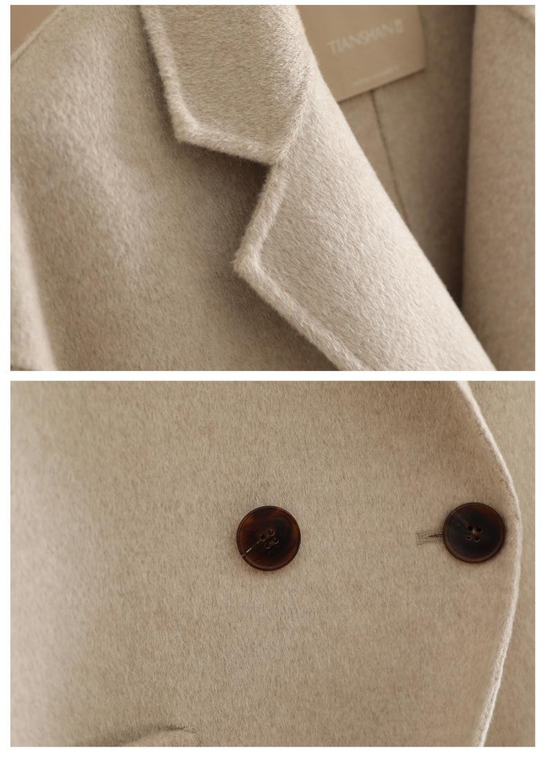 Abrigo de cachemira de otoño e invierno 2024, elegante abrigo de terciopelo puro para mujer, cuello de traje, largo medio, 100 % cachemira.