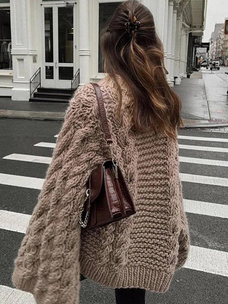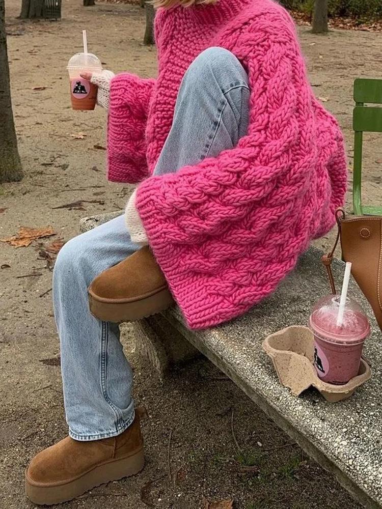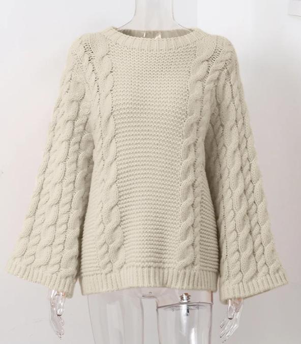 Suéter Holgado Casual Cómodo de Punto de Color Puro Nuevo Otoño e Invierno Transfronterizo Europeo y Americano