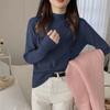 Camiseta básica de punto de cuello alto medio engrosada para mujer otoño e invierno suave color sólido top de cachemira cálido suave suéter de lana cerosa