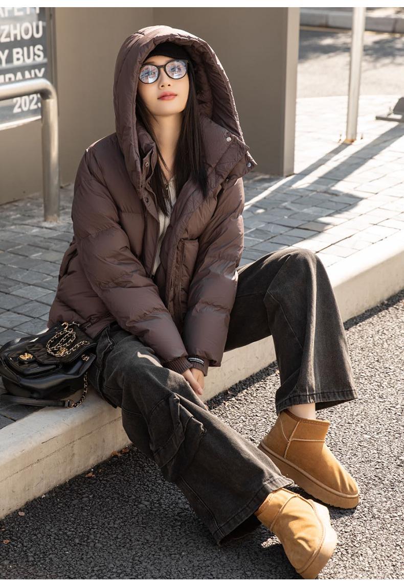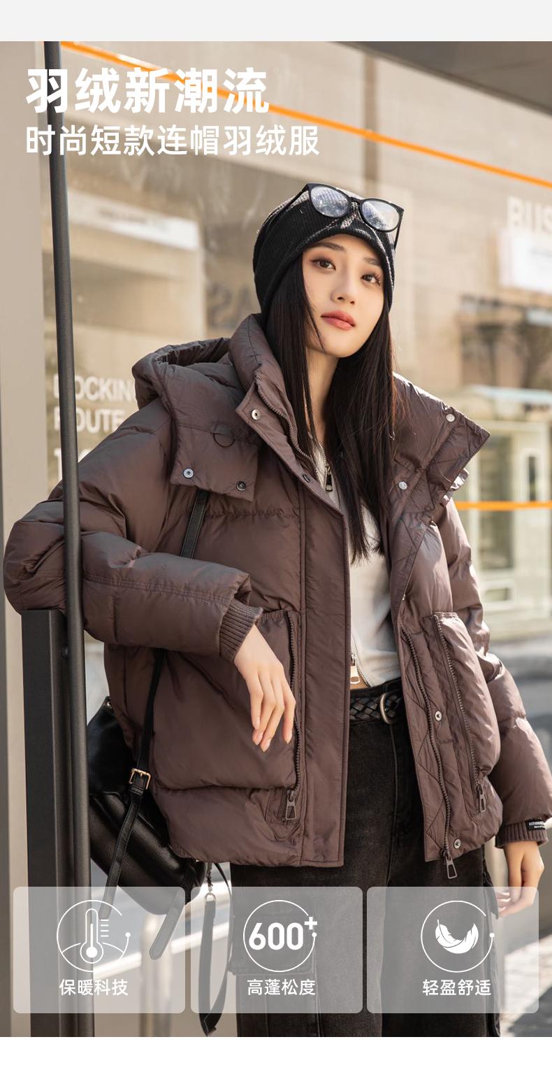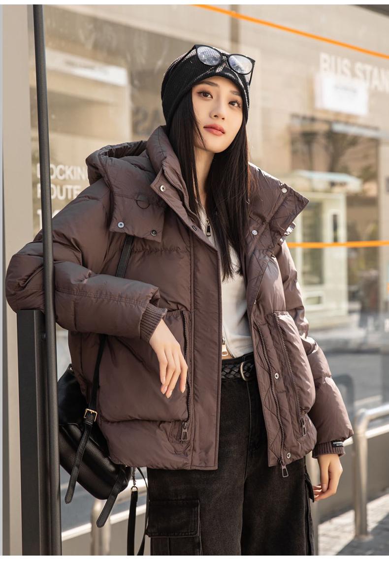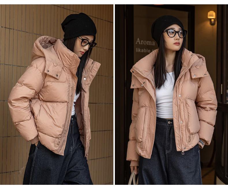 Chaqueta de plumón de pato para mujer, invierno 2024, nueva, corta, gruesa, a la moda, con gorro para todo tipo de combinaciones, abrigo cálido y cómodo.
