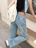 Pantalones vaqueros rectos de cintura alta para mujer, primavera y verano 2024, nuevos, holgados, cortos, estrechos, de pierna ancha.