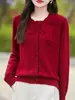 Cárdigan de lana pura con flores hecho a mano para mujer, estilo industrial pesado, combina con todo, abrigo de otoño e invierno, cuello redondo, prenda exterior de punto antiedad.